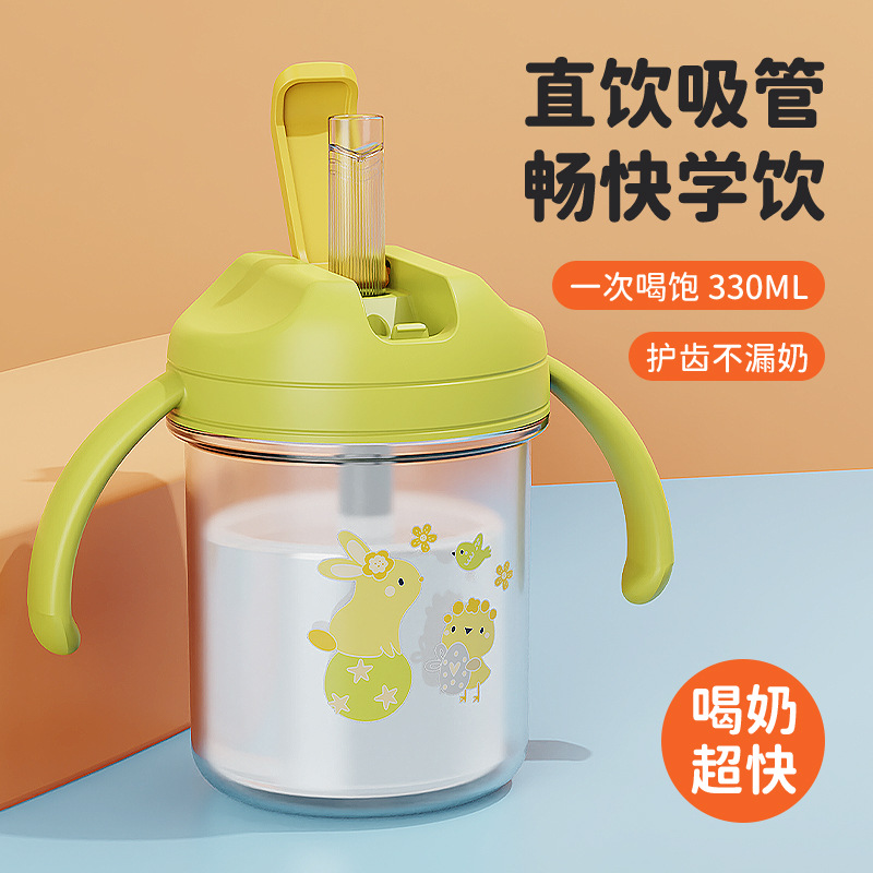 儿童水杯宝宝吸管杯婴儿学饮杯家用带手柄儿童牛奶杯带刻度杯子