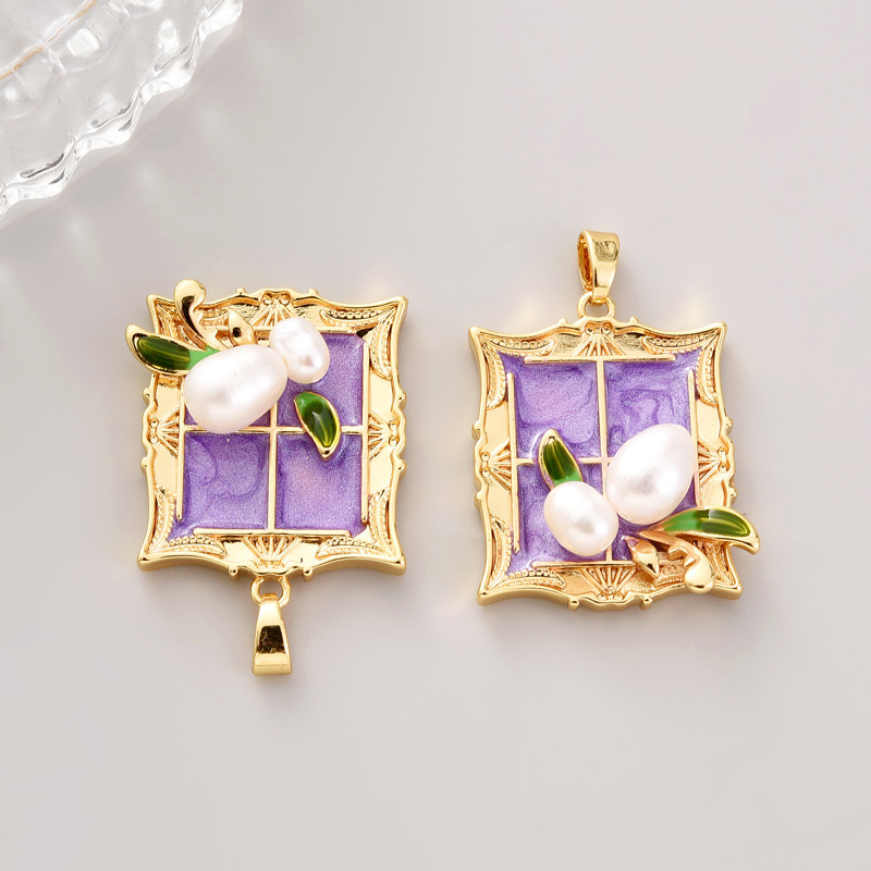 莫奈花园项链吊坠天然巴洛克滴油复古油画风天然珍珠diy饰品配件