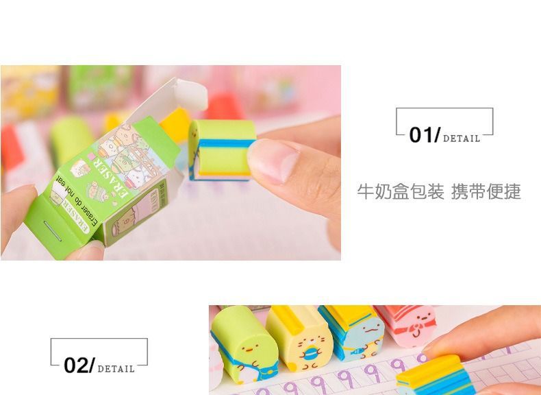 可爱橡皮檫卡通牛奶盒幼儿园奖品批发学生文具用品儿童生日小礼物