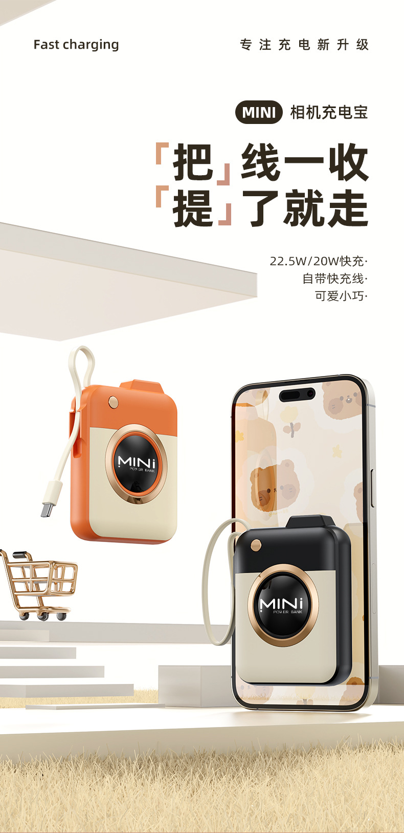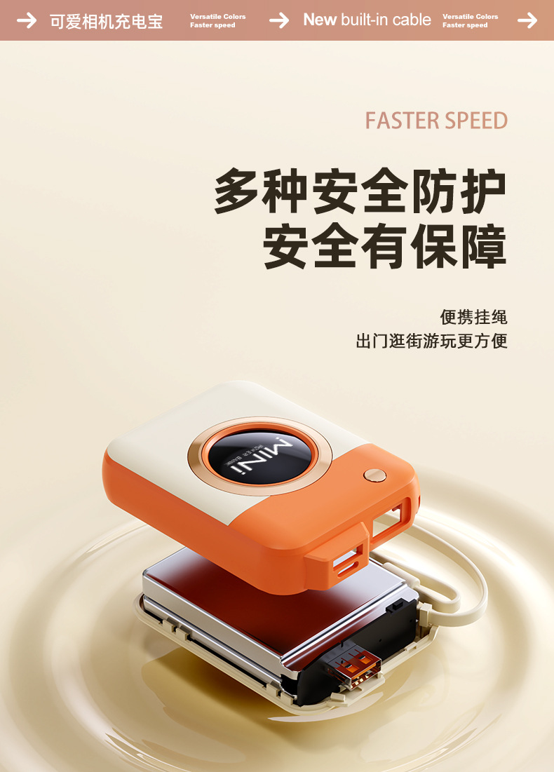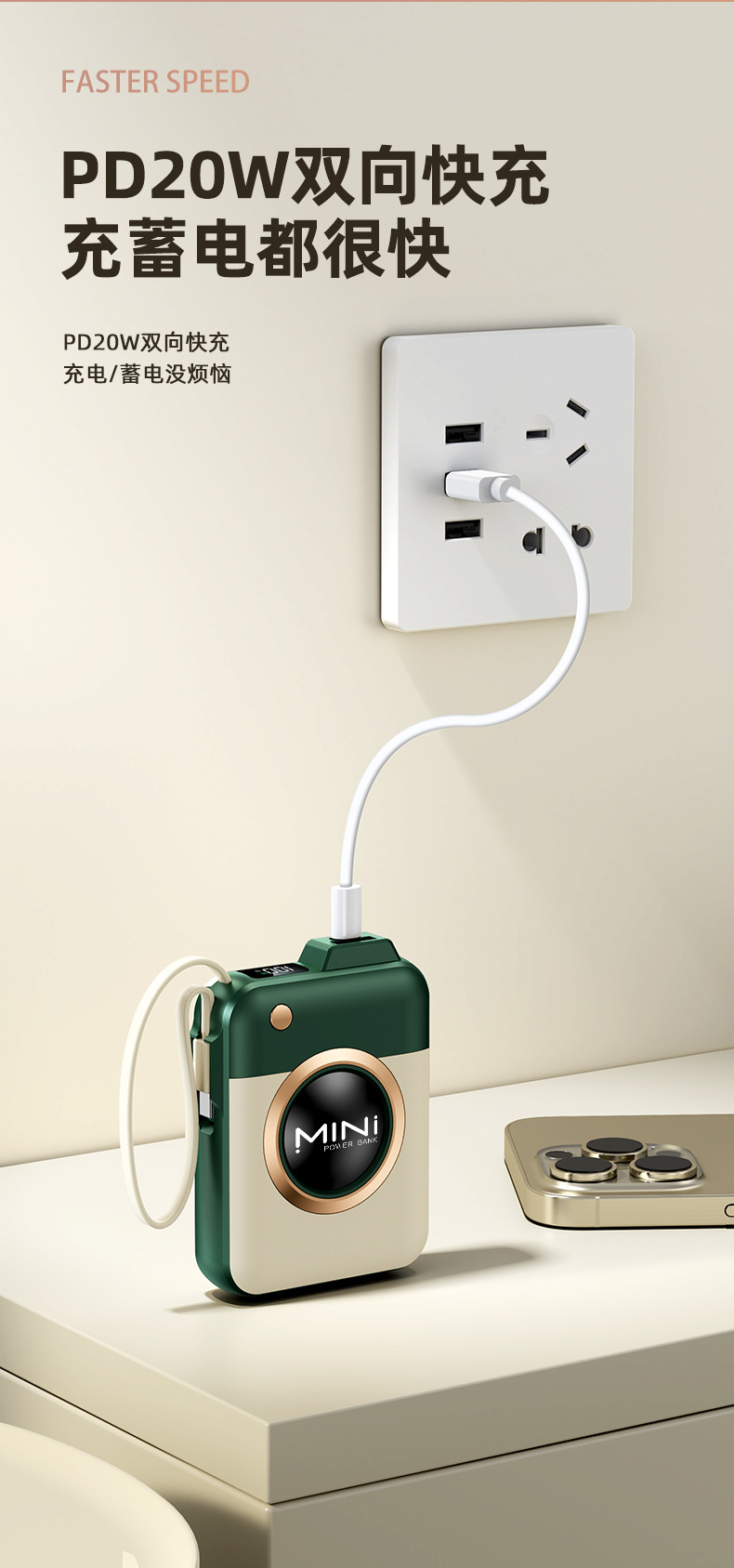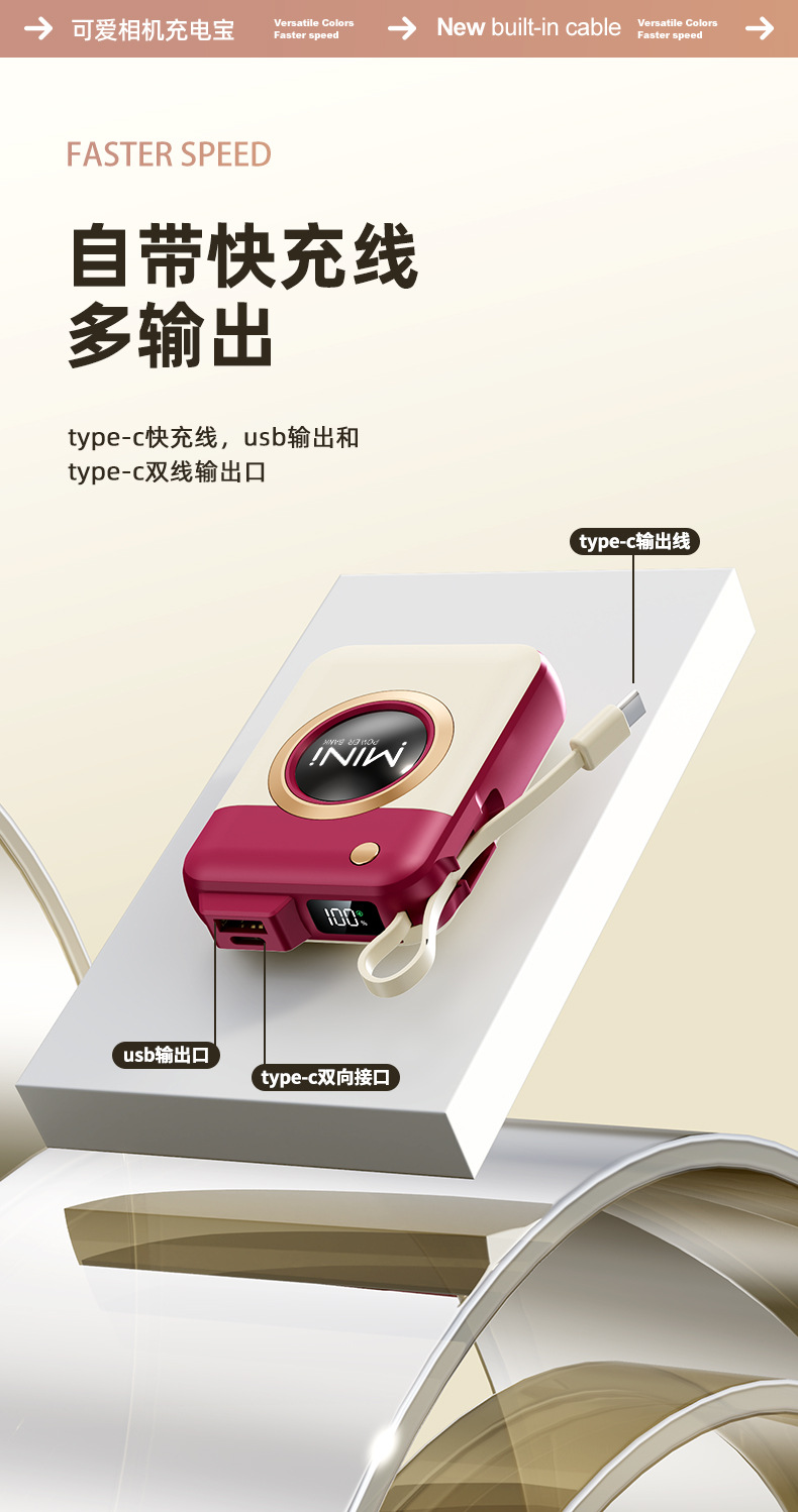 充电宝20000毫安迷你卡通自带线大容量移动电源power bank定 制