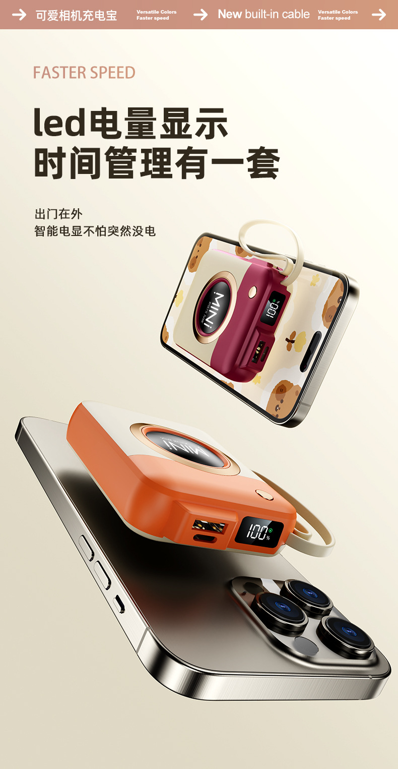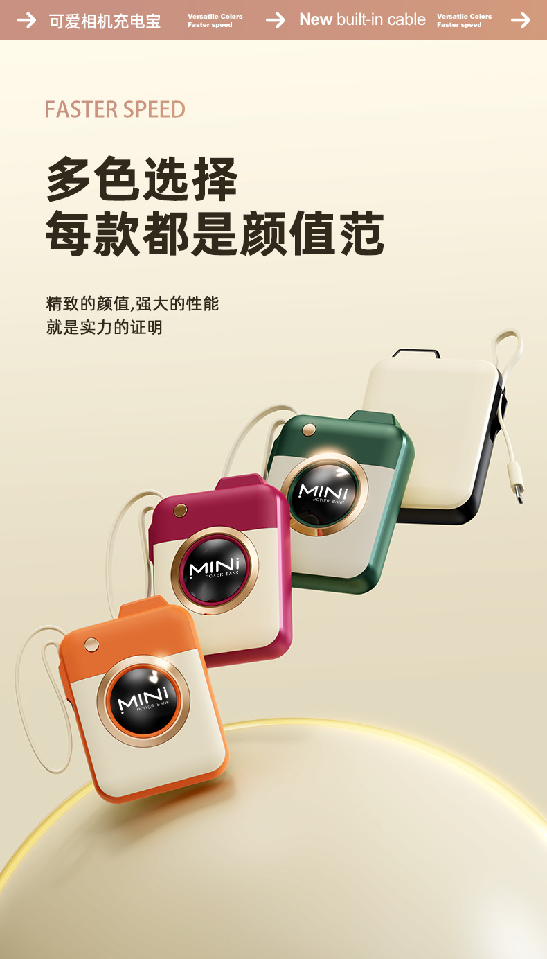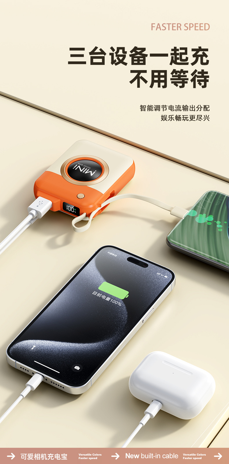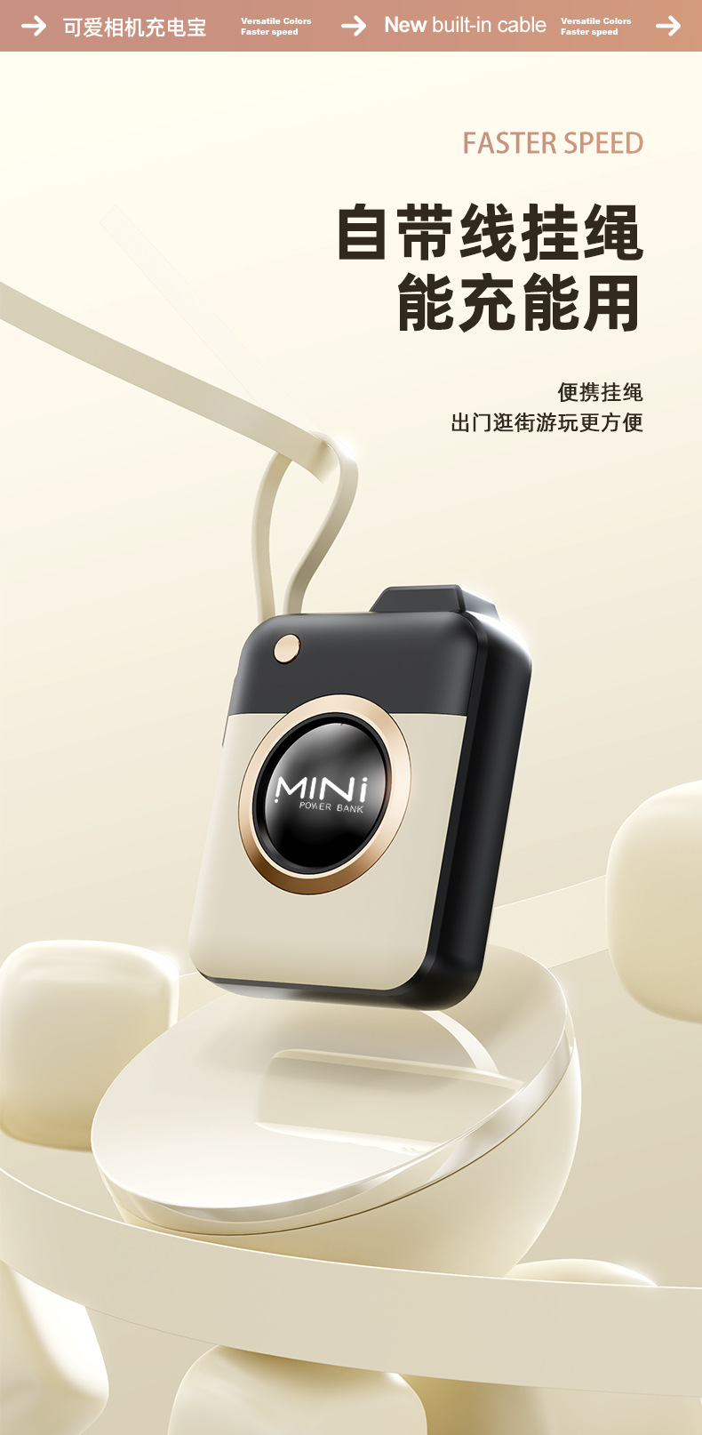 充电宝20000毫安迷你卡通自带线大容量移动电源power bank定 制