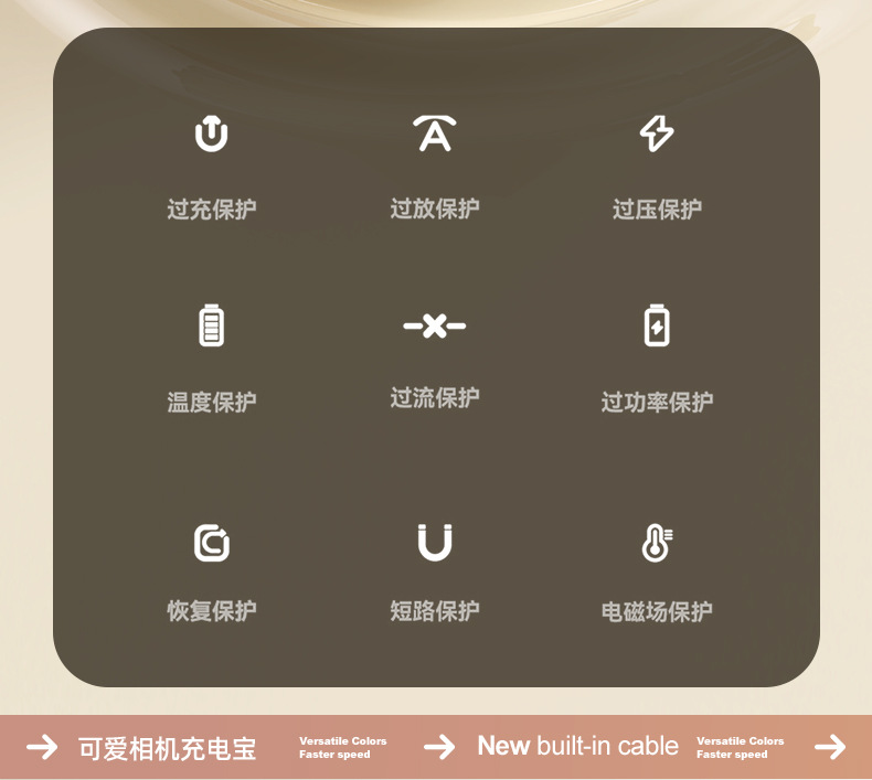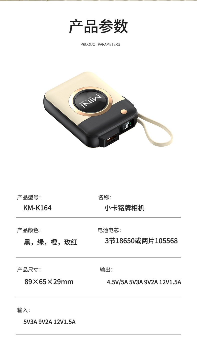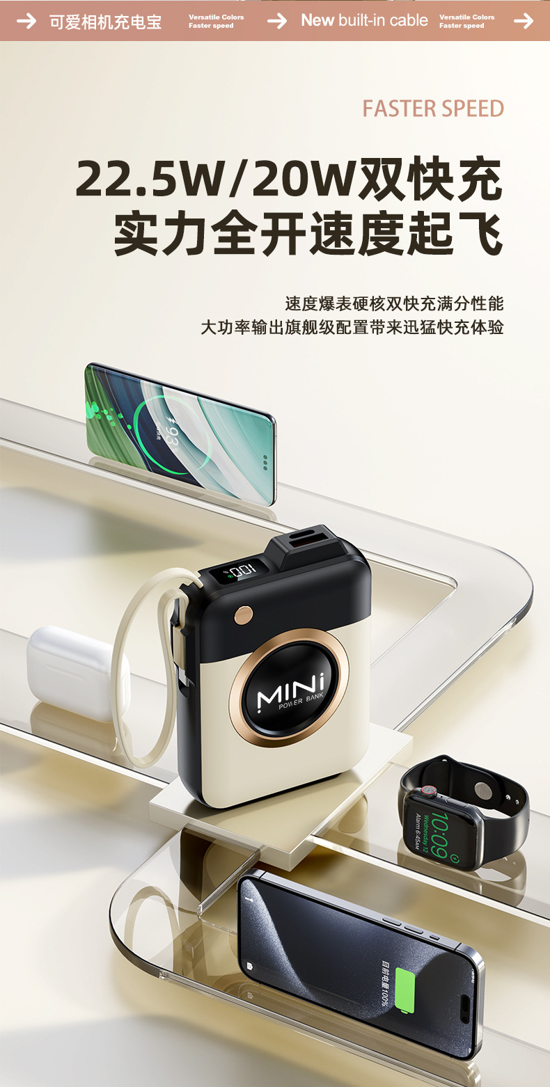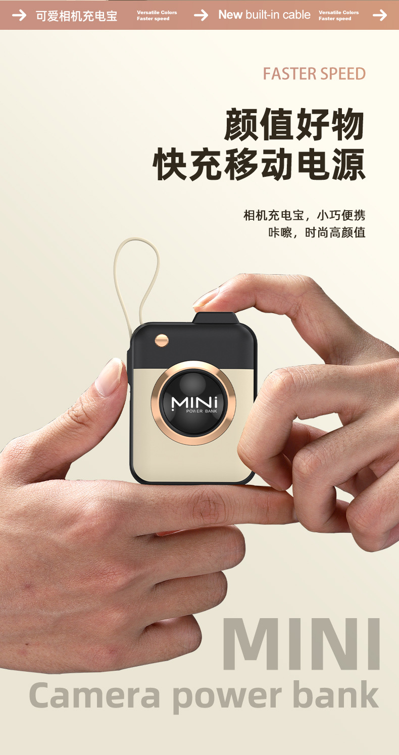 充电宝20000毫安迷你卡通自带线大容量移动电源power bank定 制