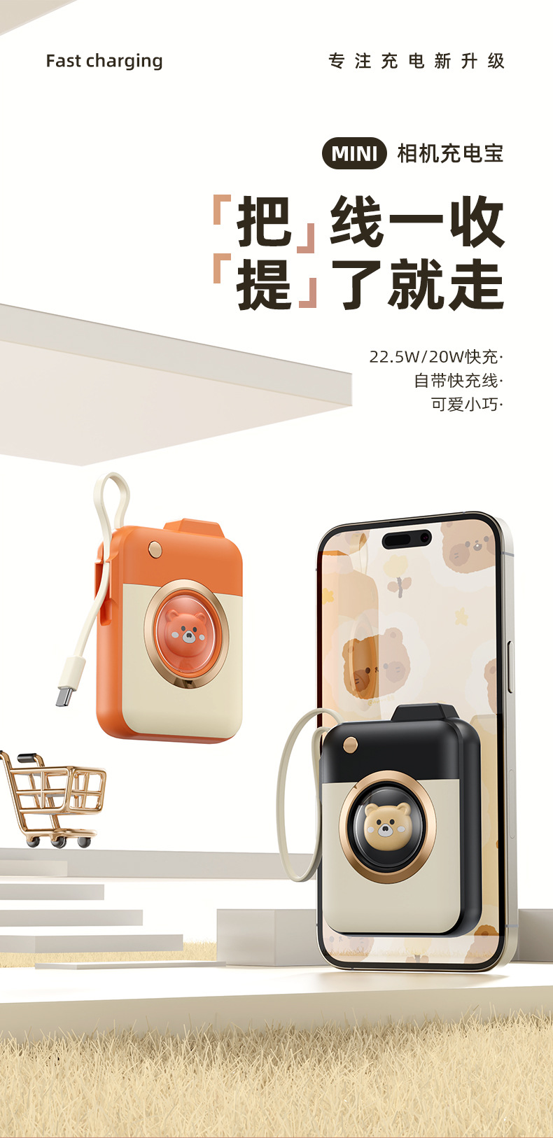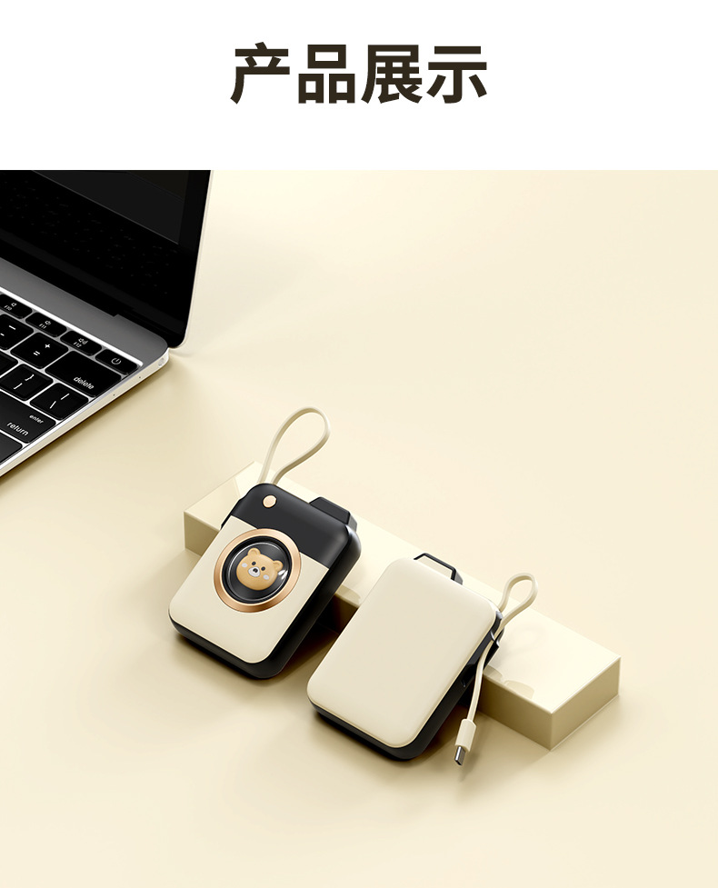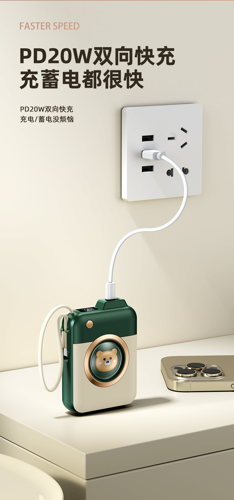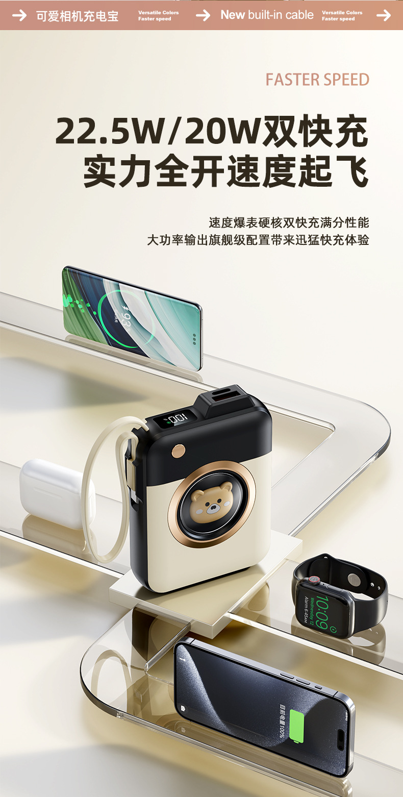 充电宝20000毫安22.5W卡通自带线大容量移动电源power bank定 制