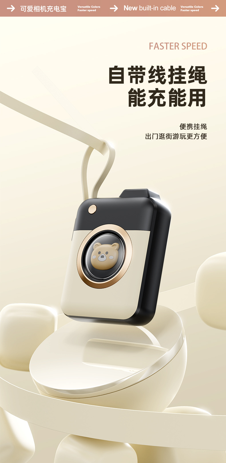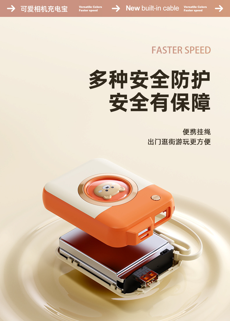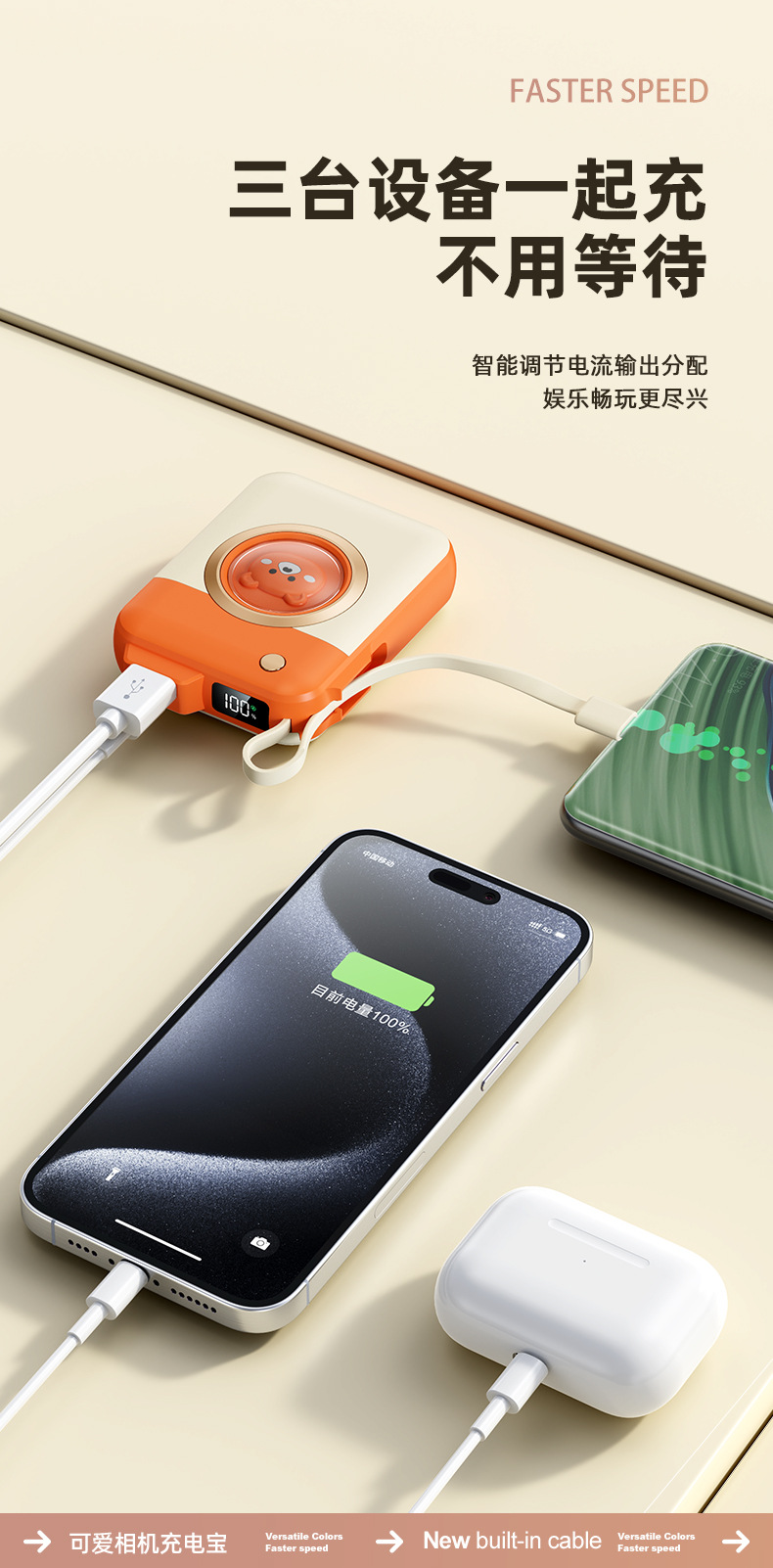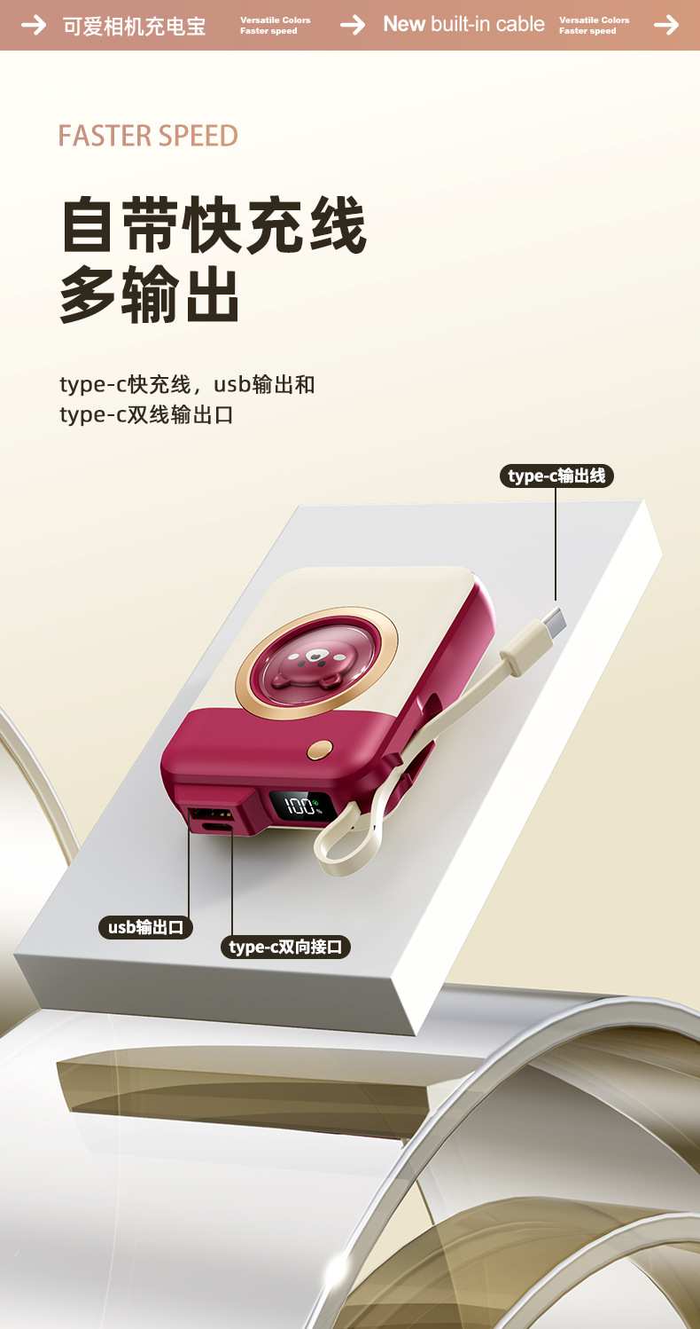 充电宝20000毫安22.5W卡通自带线大容量移动电源power bank定 制