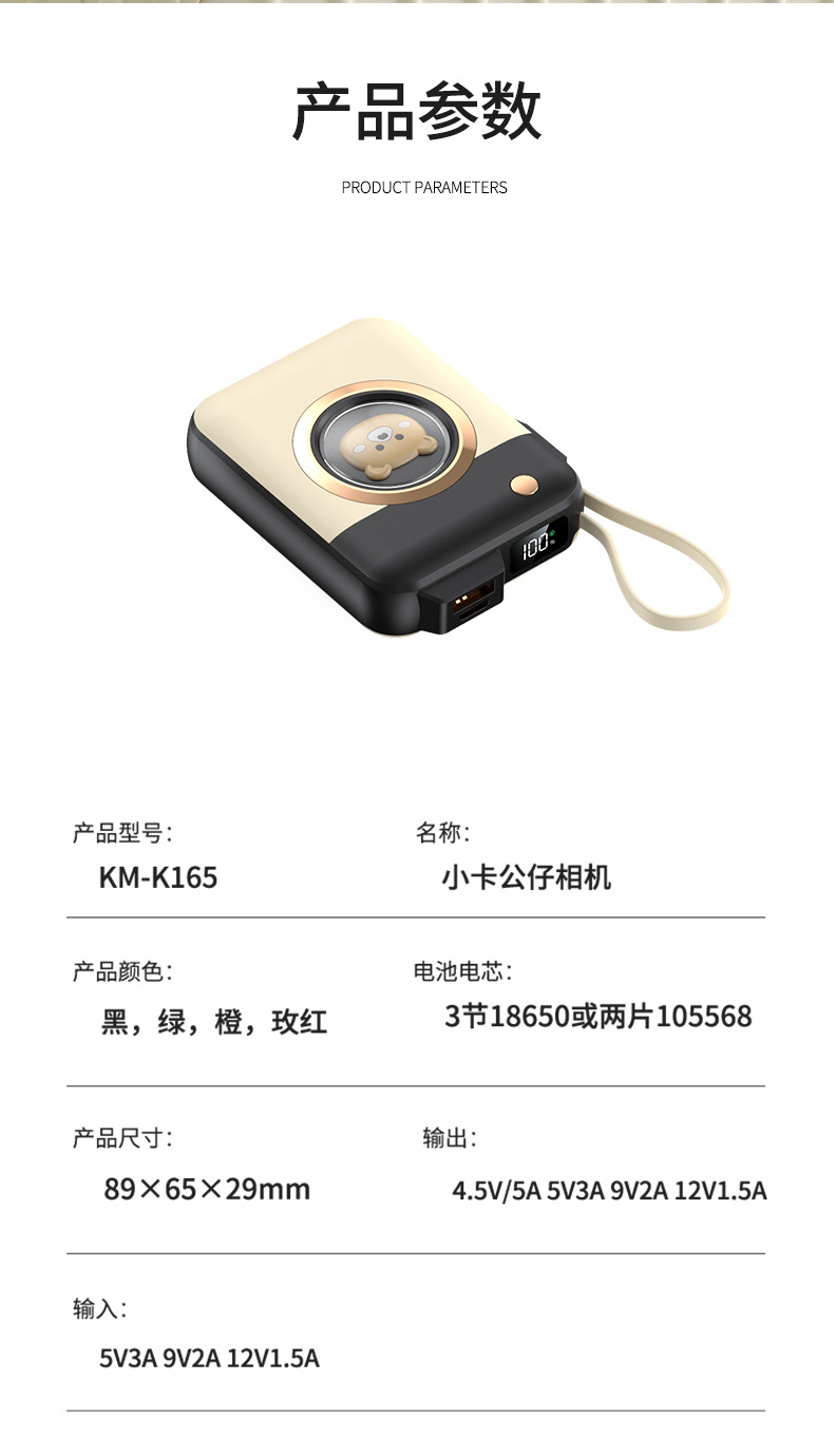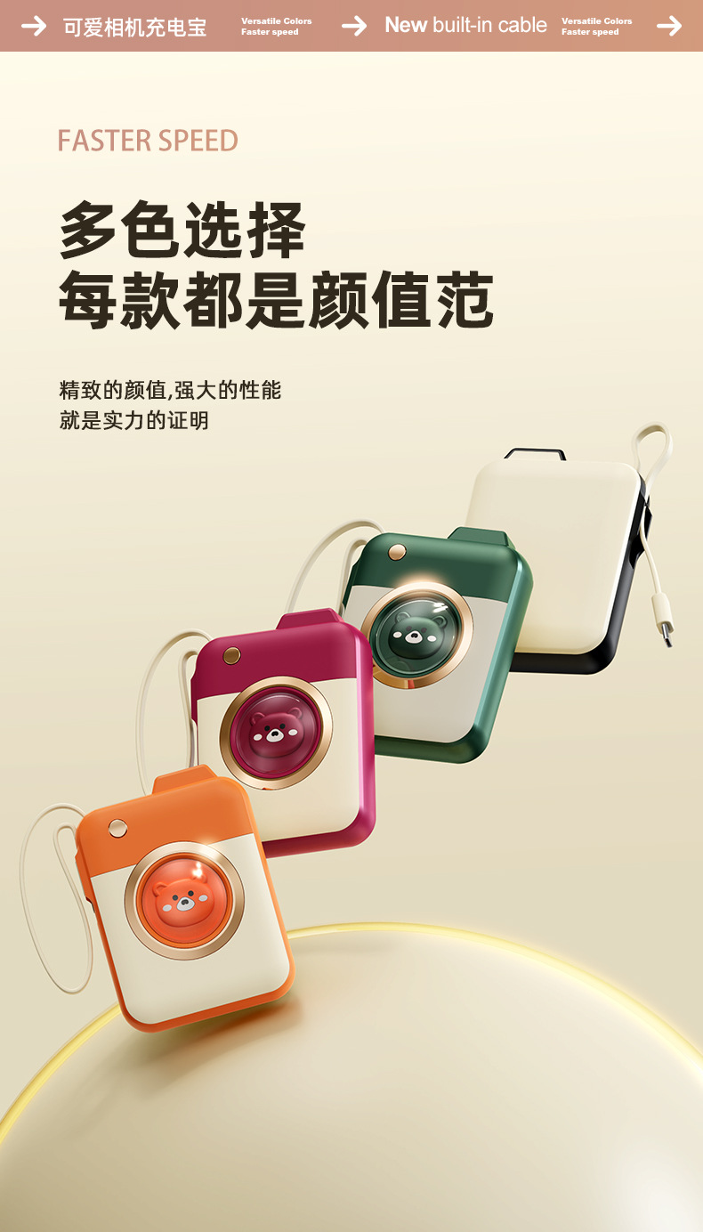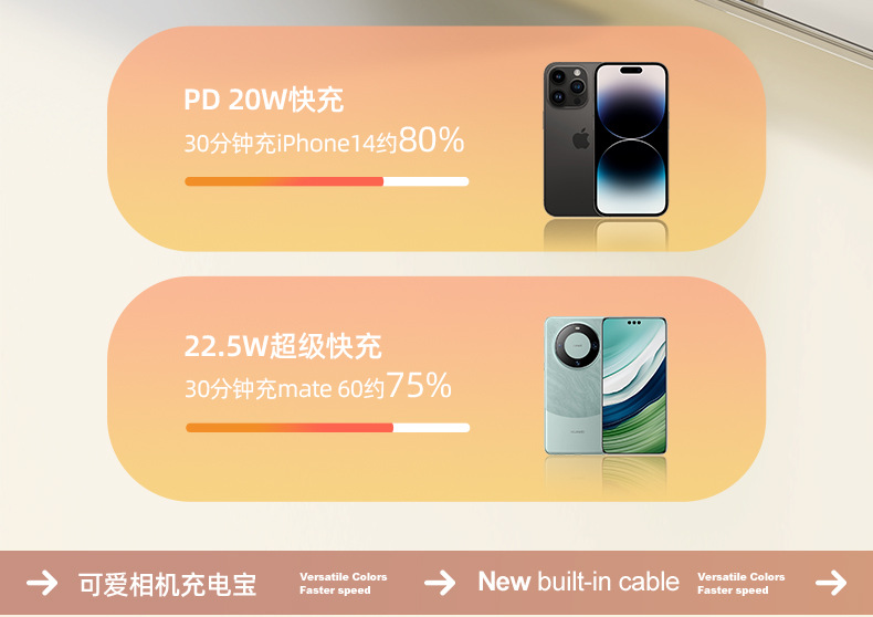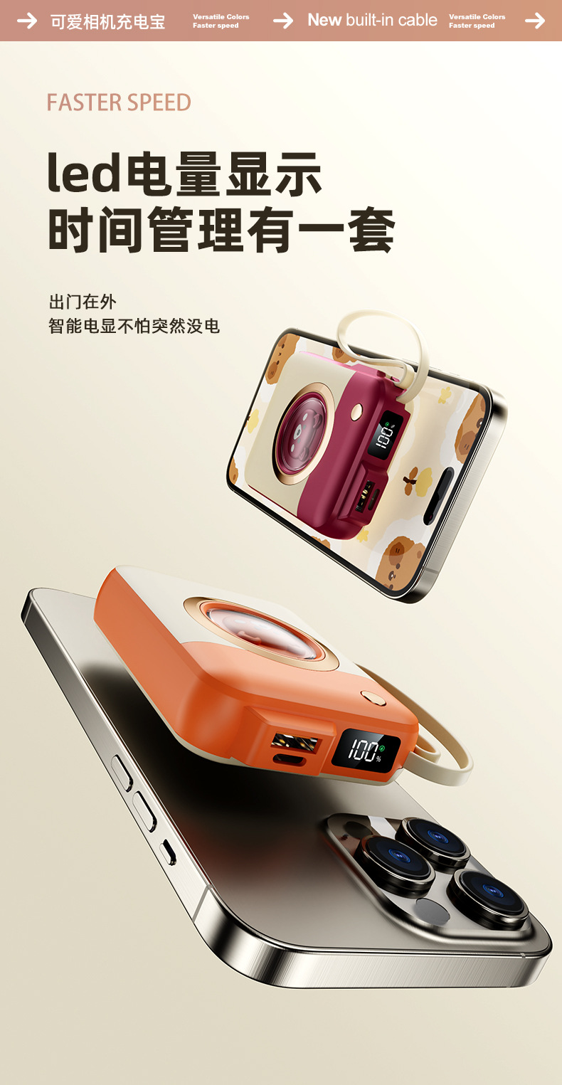 充电宝20000毫安22.5W卡通自带线大容量移动电源power bank定 制