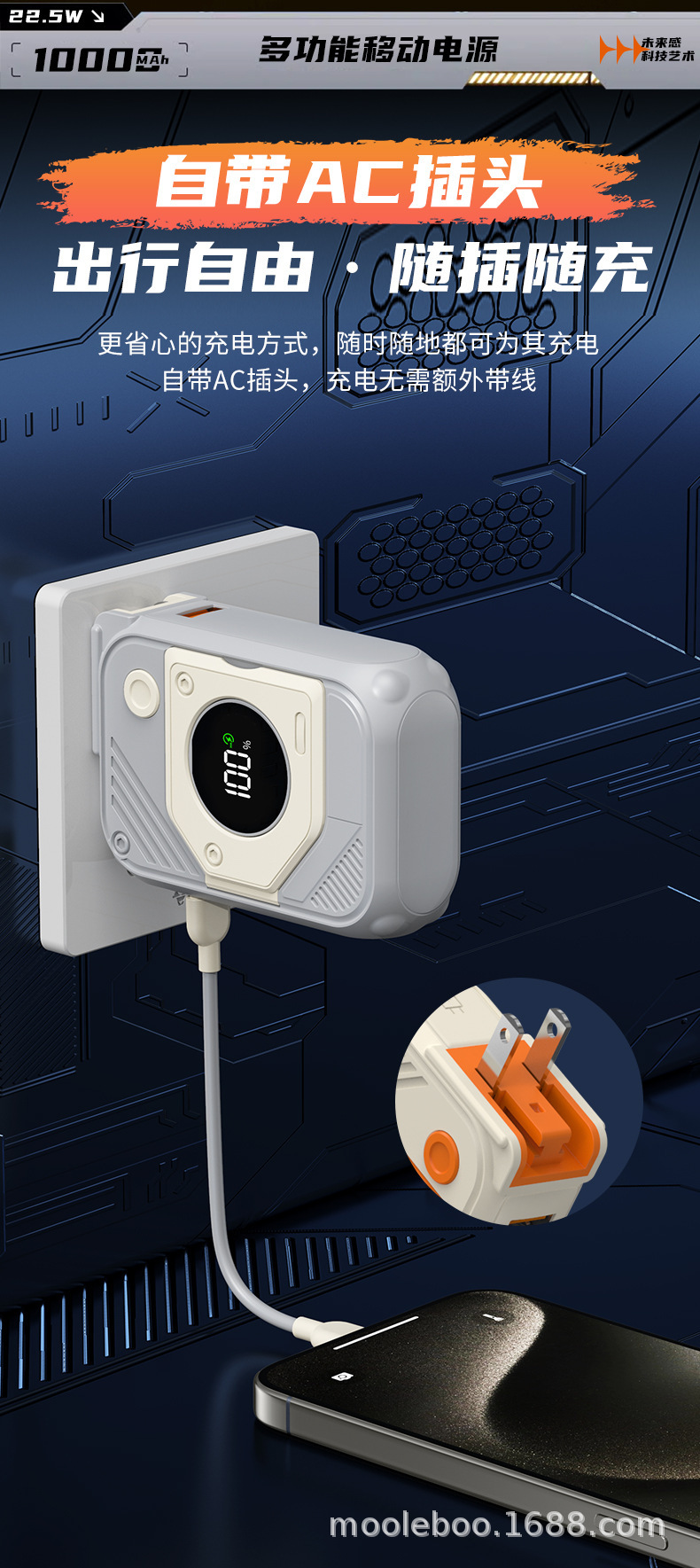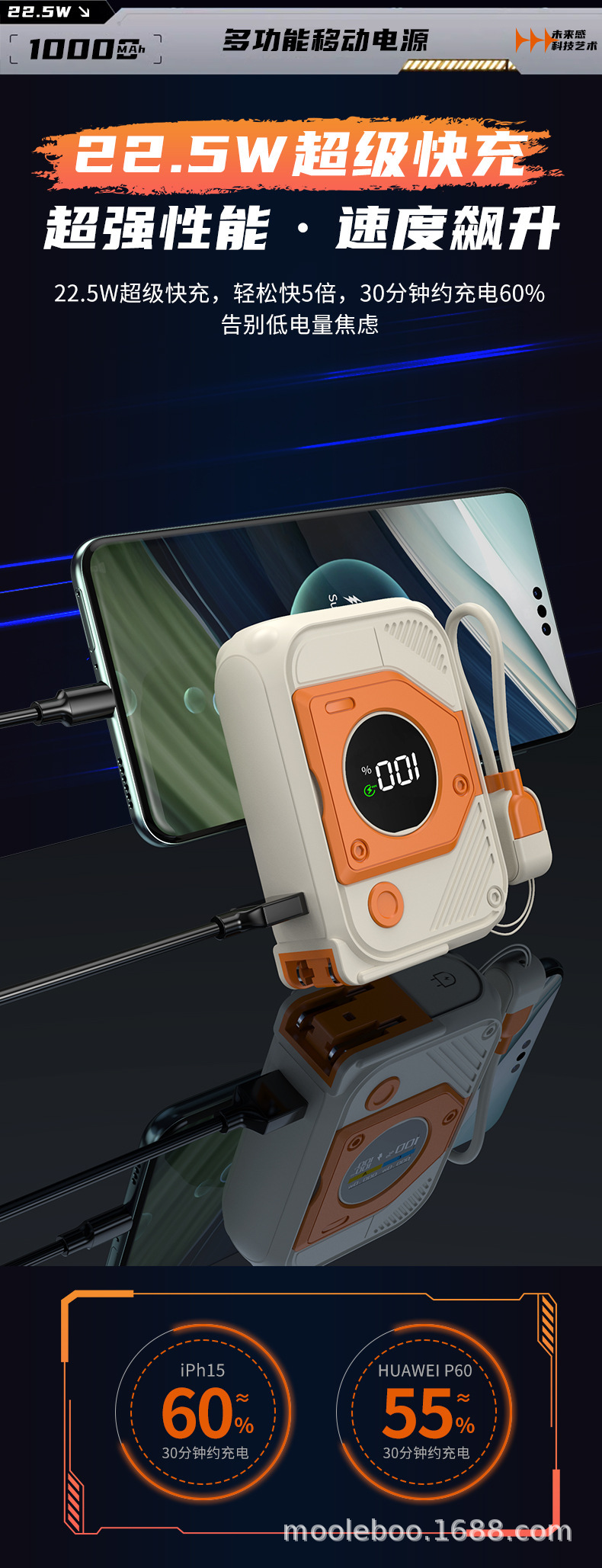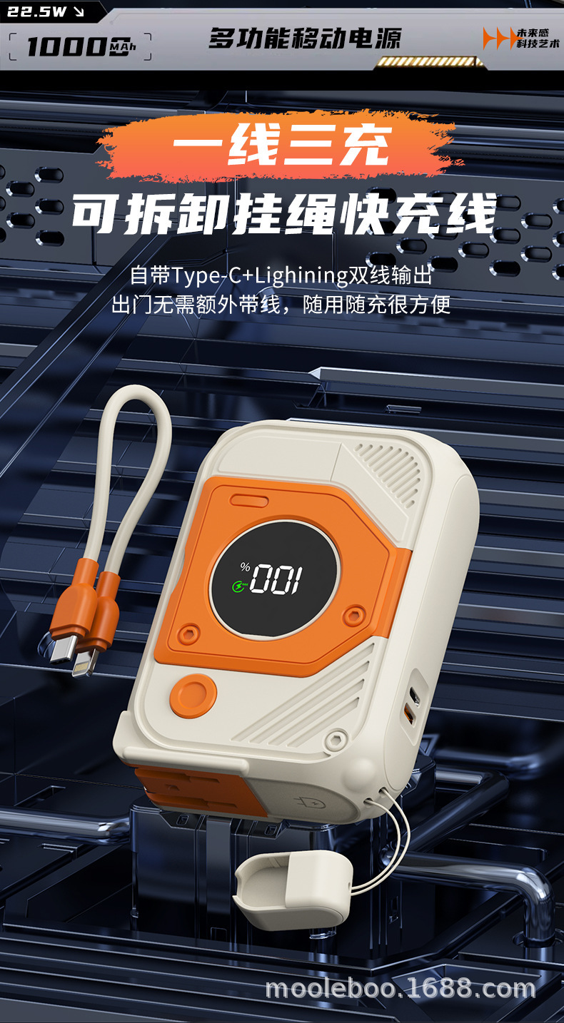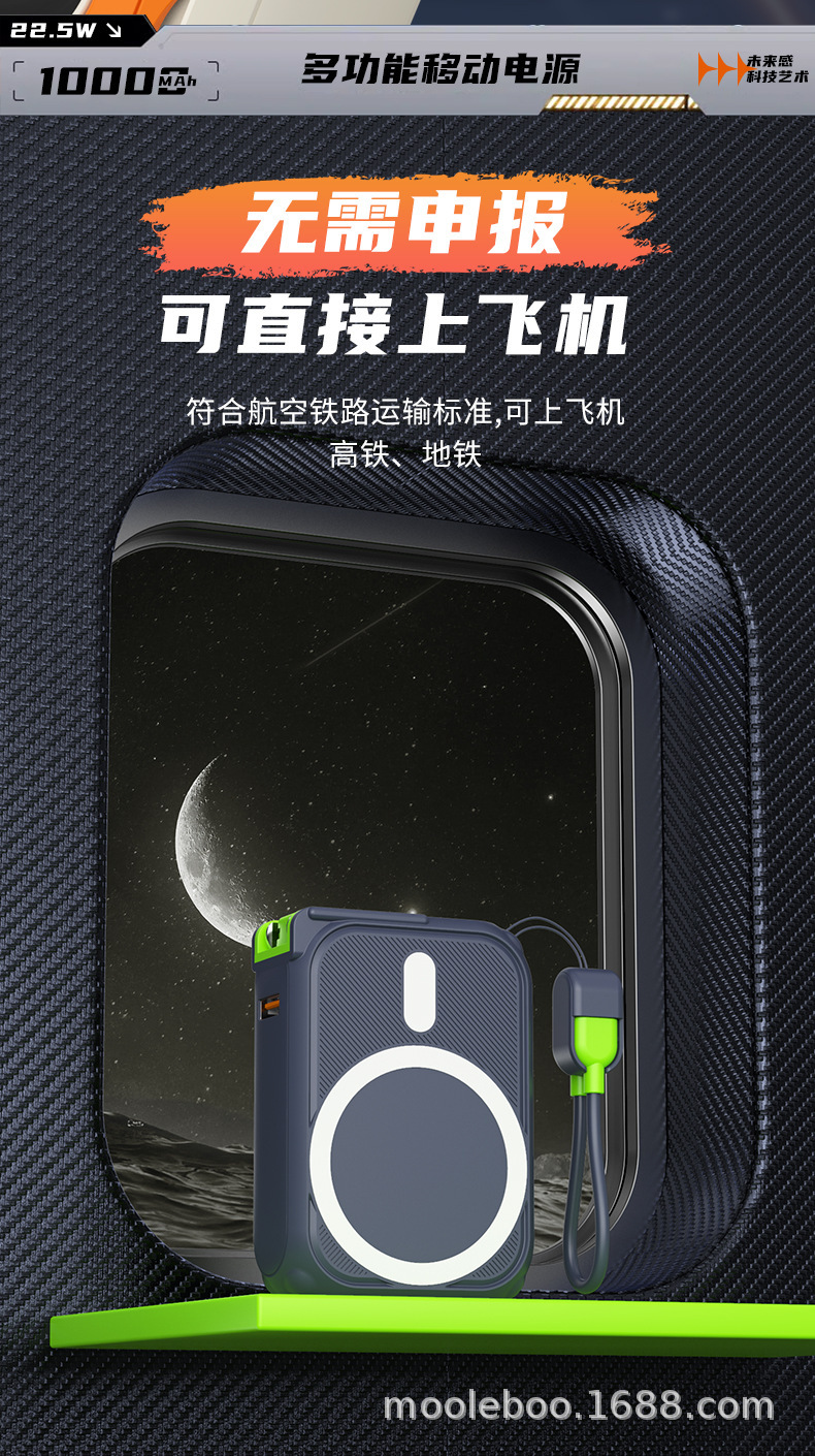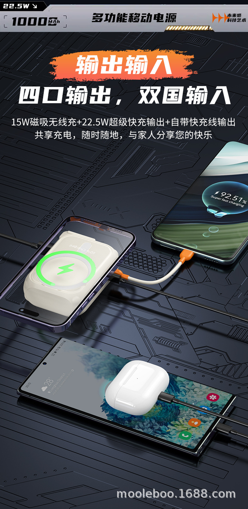 新款充电宝自带线大容量22.5W无线超级快充3C 便携插头power bank