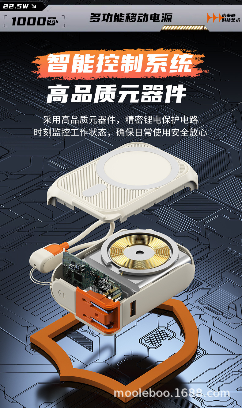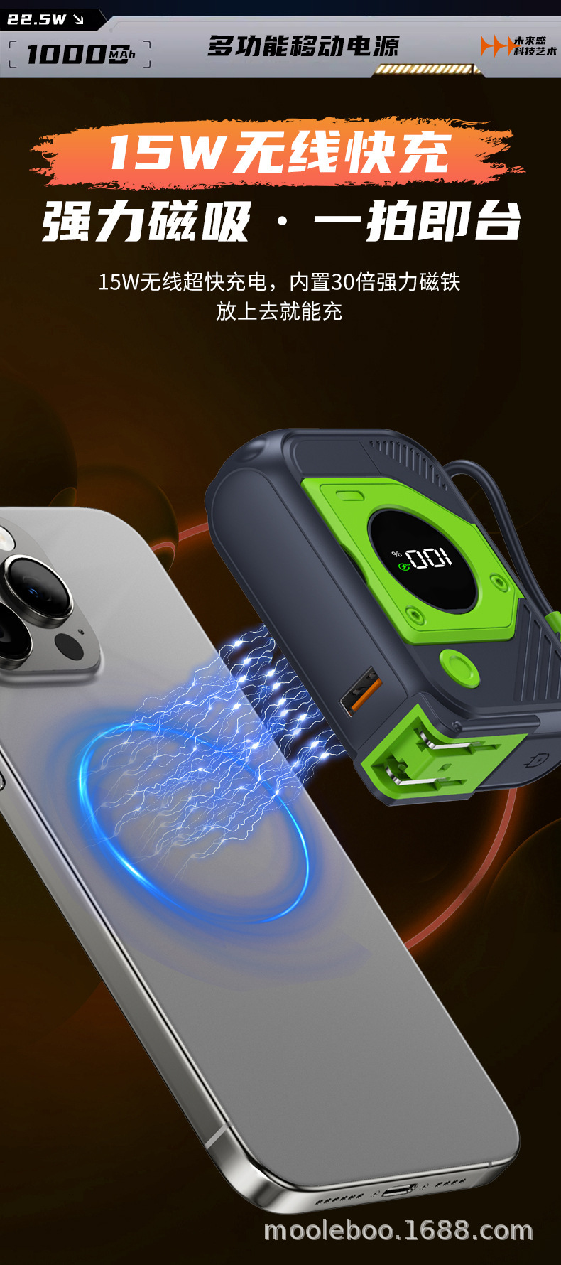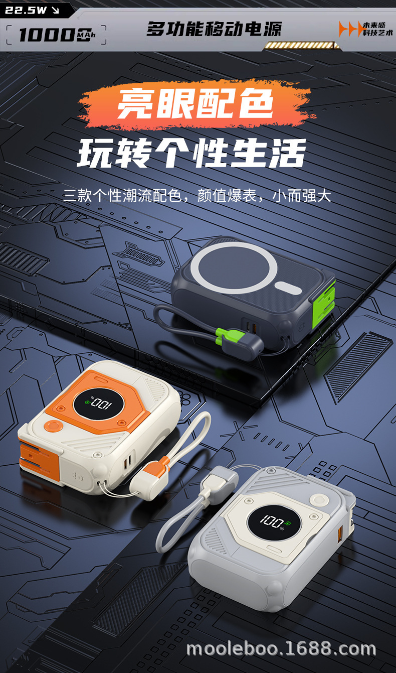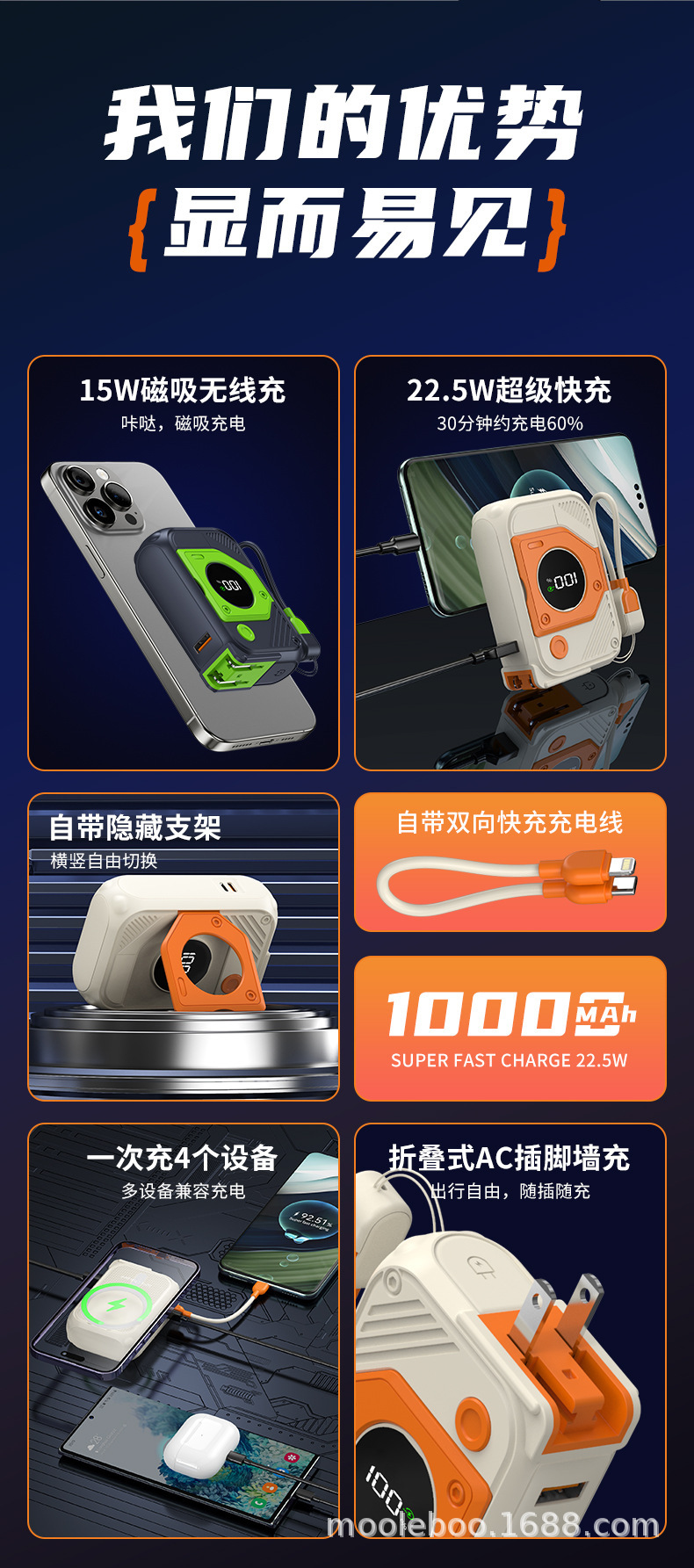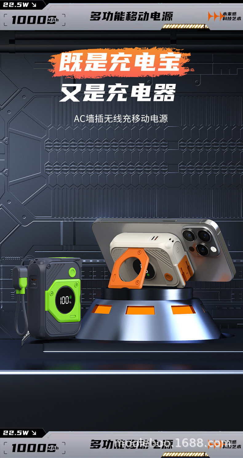 新款充电宝自带线大容量22.5W无线超级快充3C 便携插头power bank