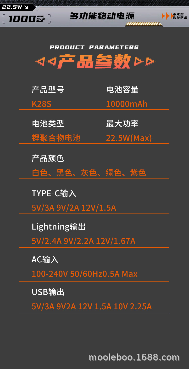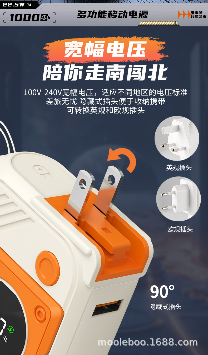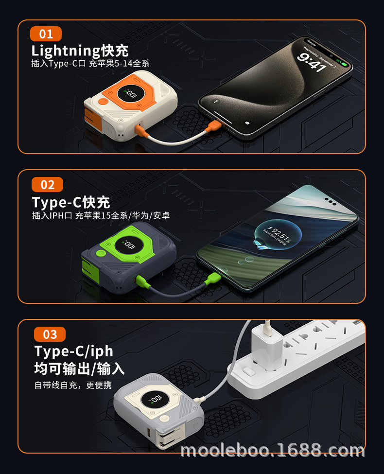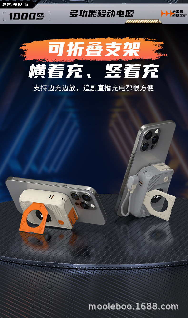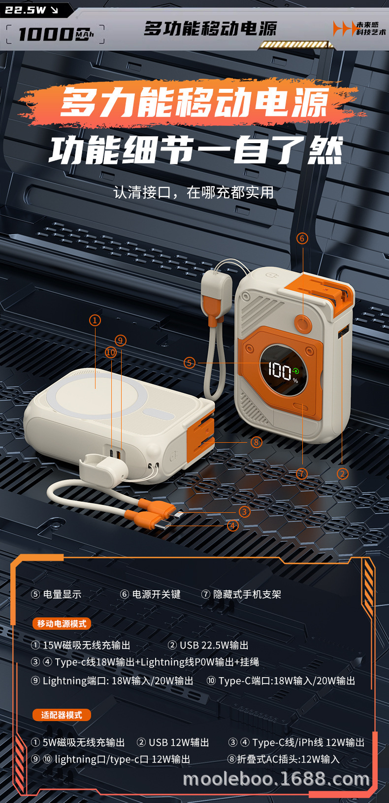 新款充电宝自带线大容量22.5W无线超级快充3C 便携插头power bank