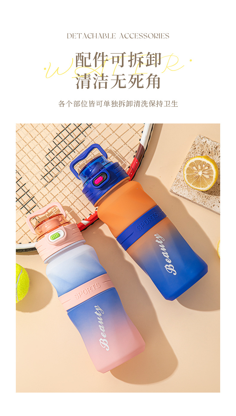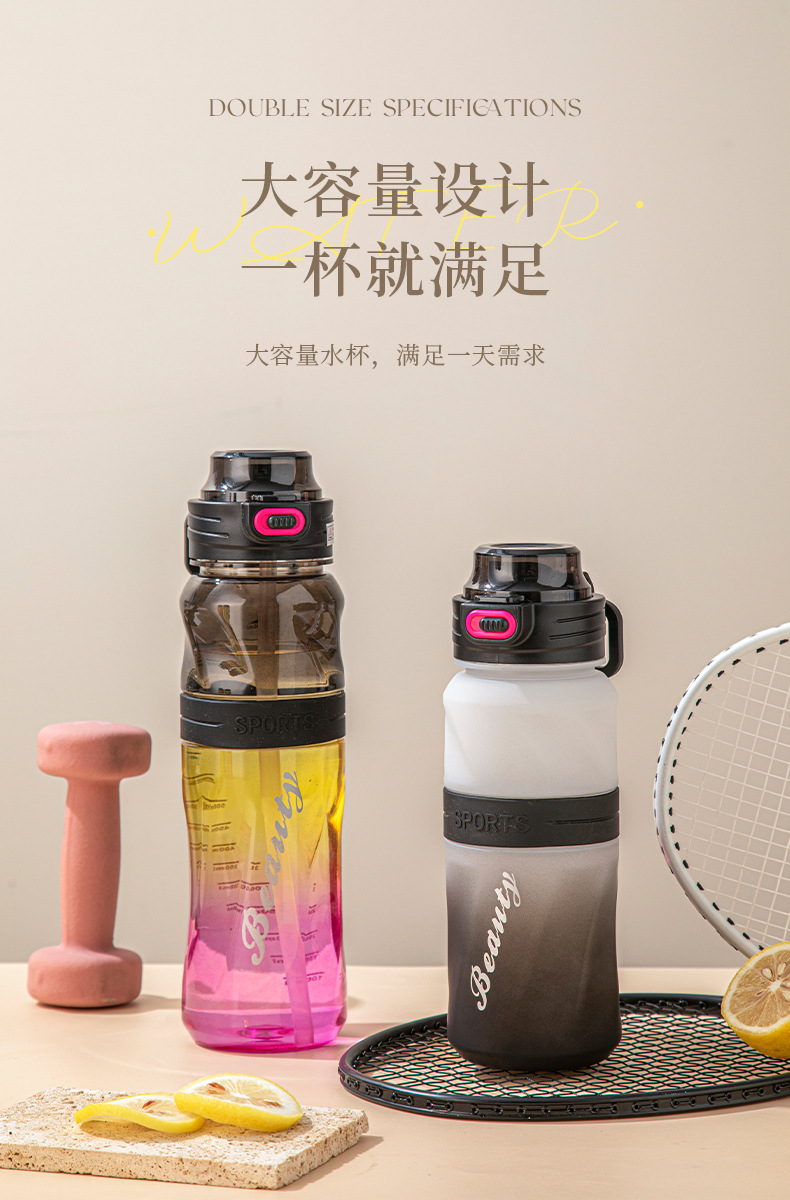 便携背带塑料吸管水壶户外健身新款渐变色太空杯运动水杯