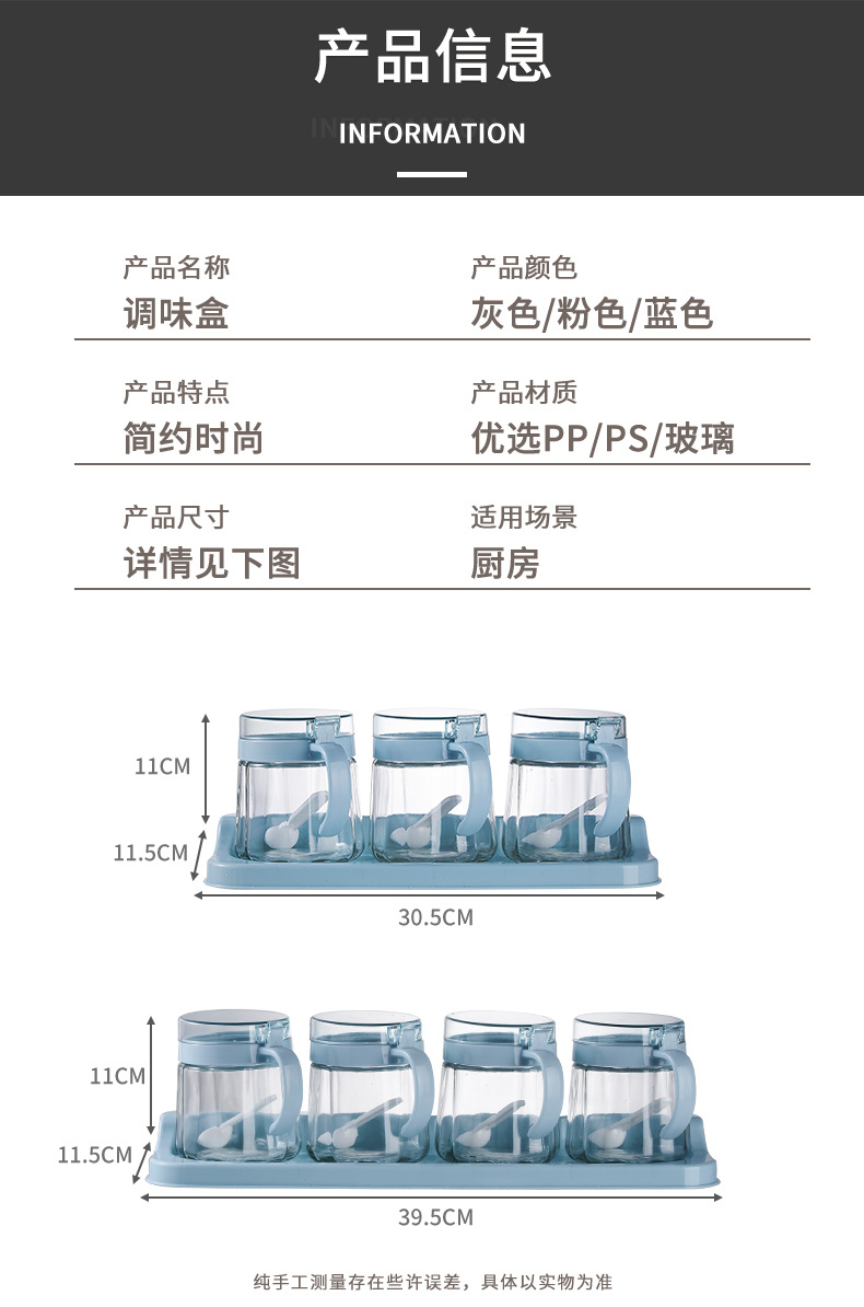 厨房用品盐罐糖罐调味盒三件套装玻璃调味罐创意