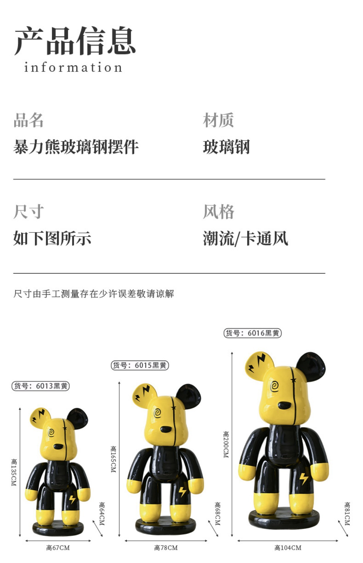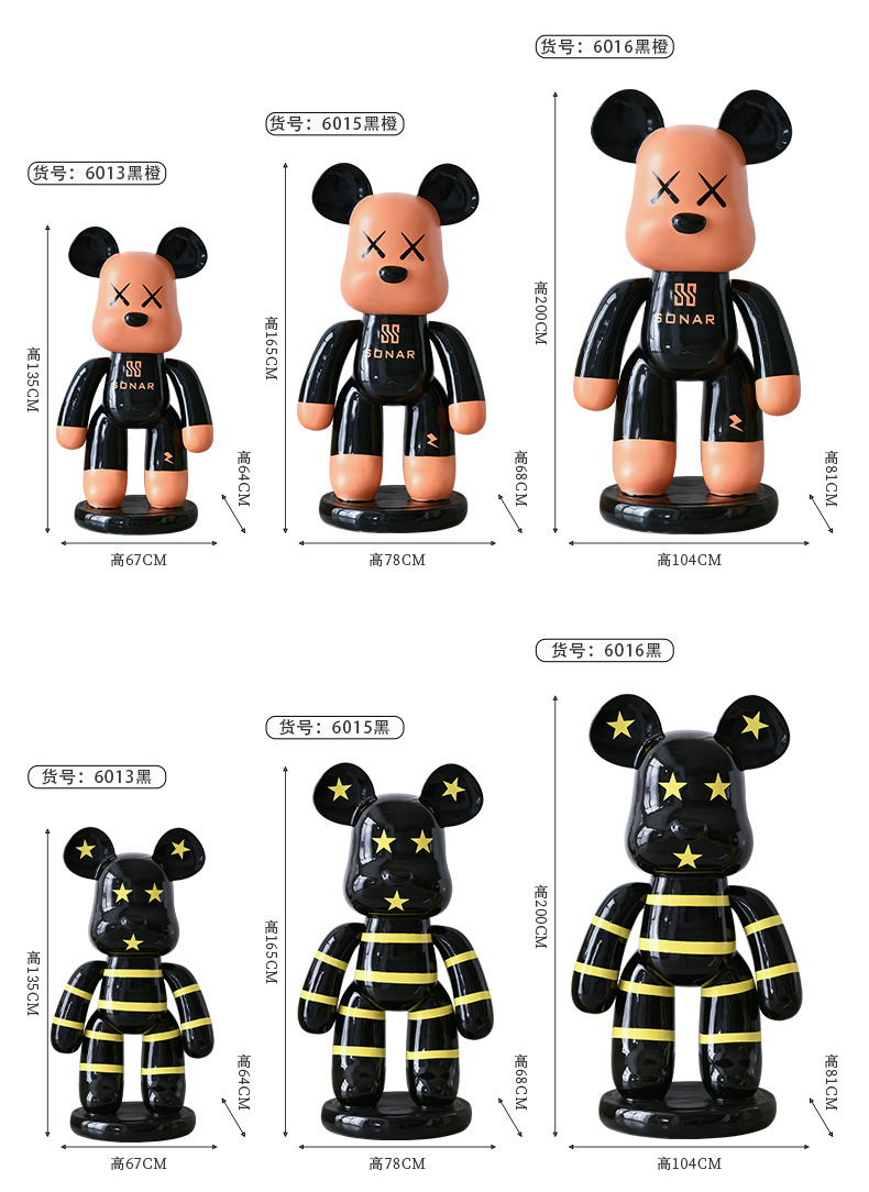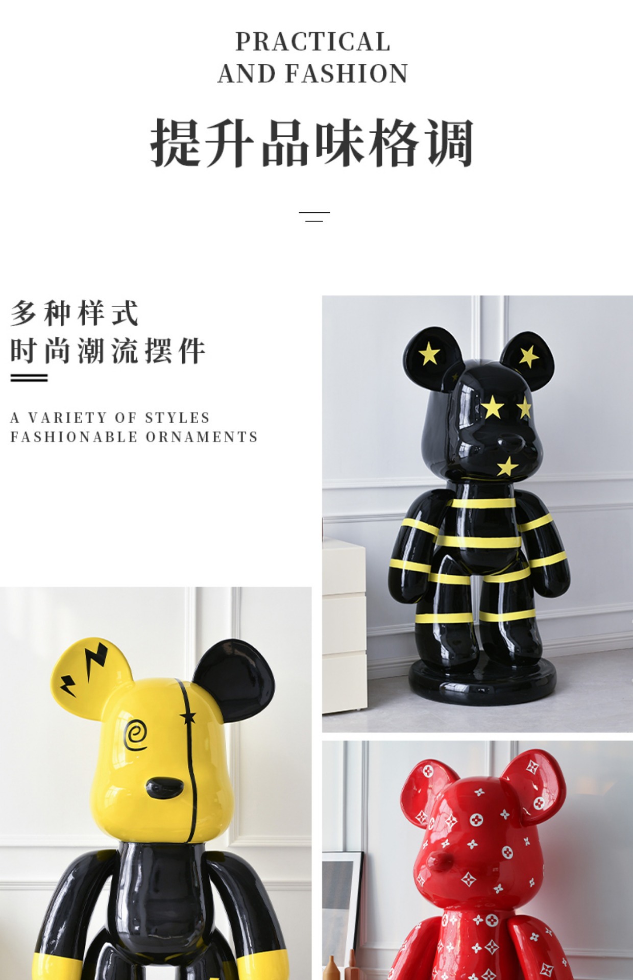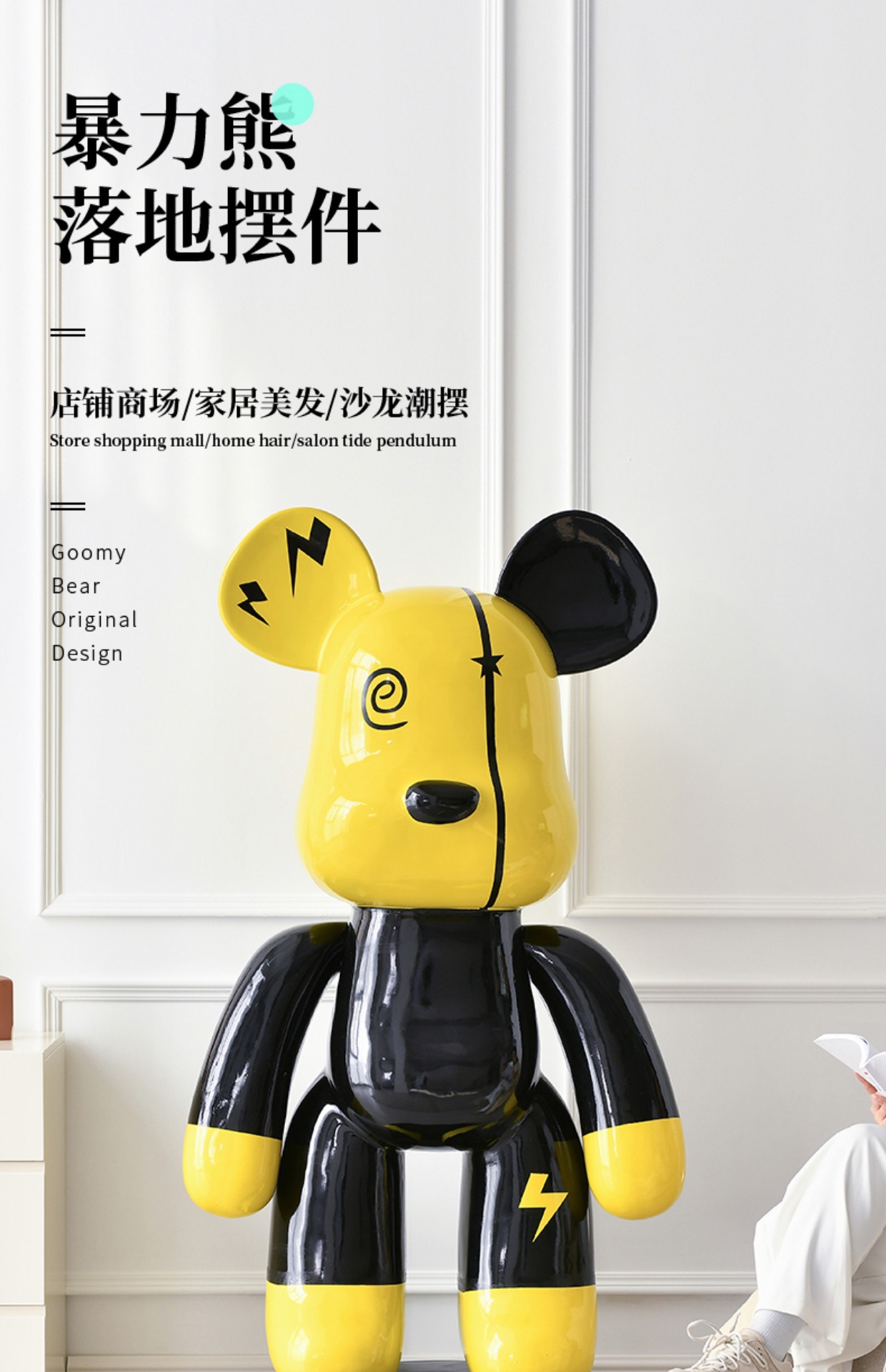 网红暴力熊卡通创意玻璃钢雕塑客厅商场店铺户外落地装饰大型摆件