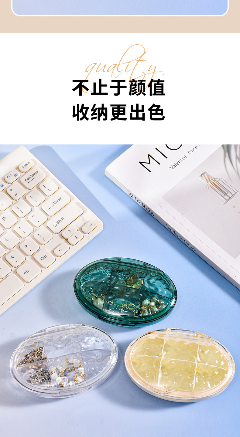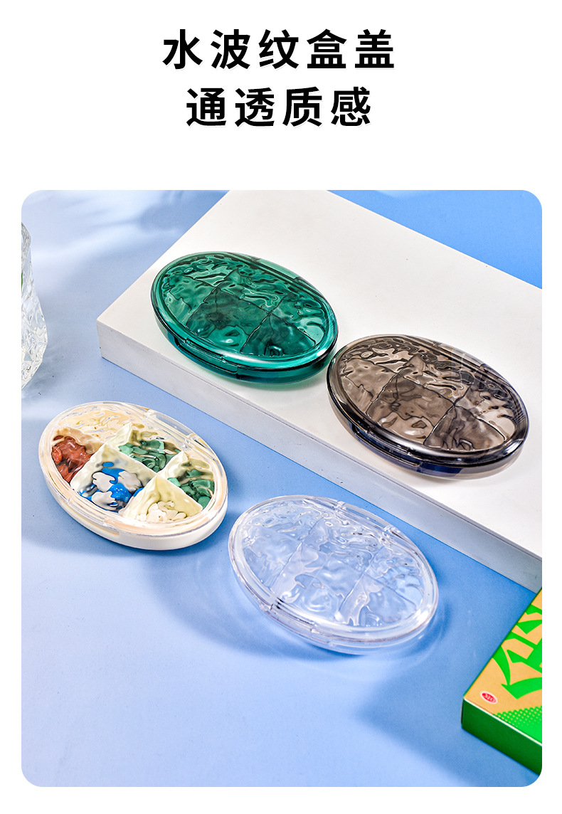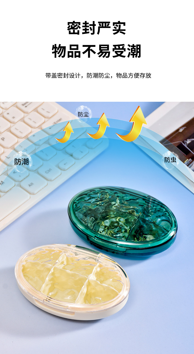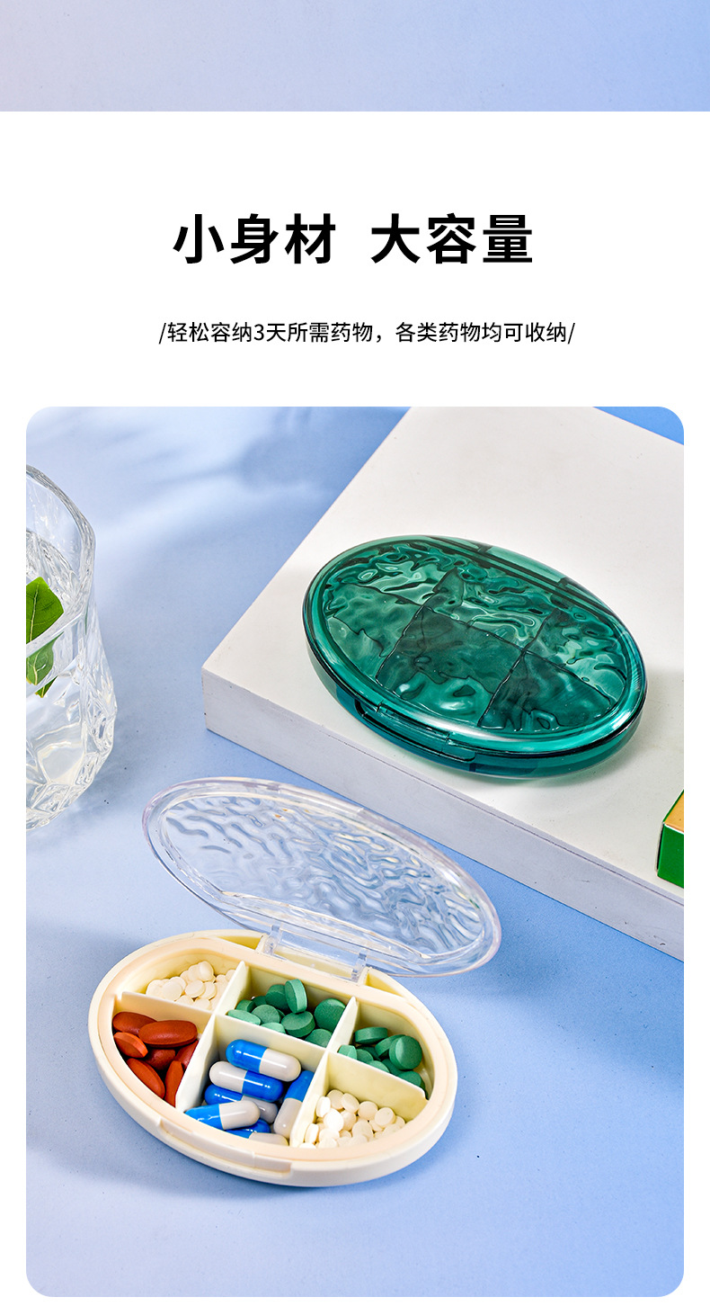 家用多色药盒分装盒一周7天便携药盒分类6格收纳盒多格PP盒首饰盒