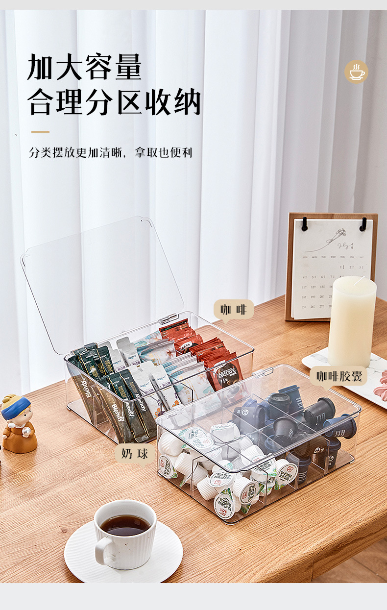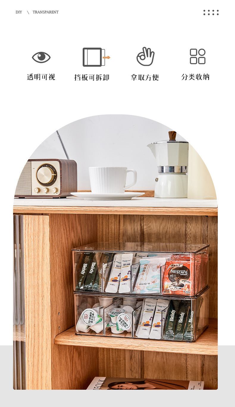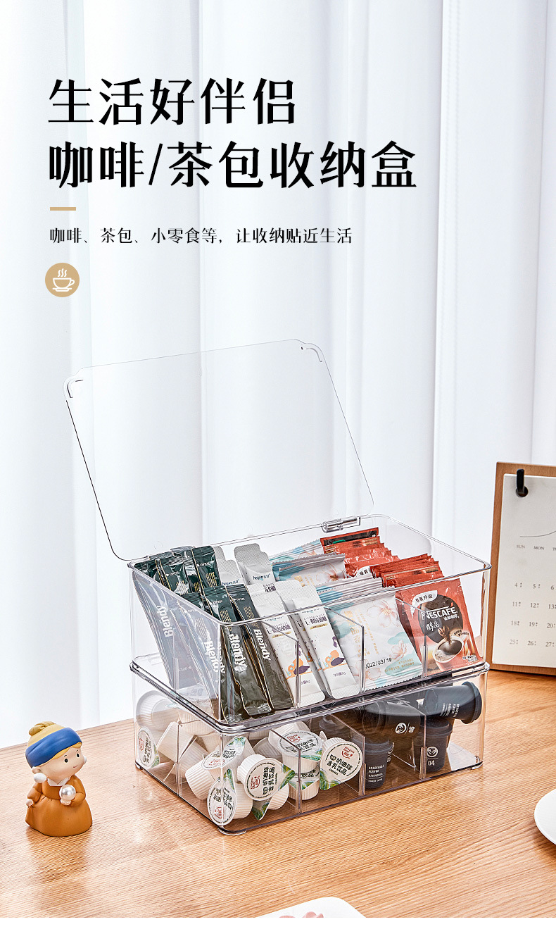可拆卸拿取方便分类收纳盒 咖啡茶包收纳盒 透明可视挡板现货批发