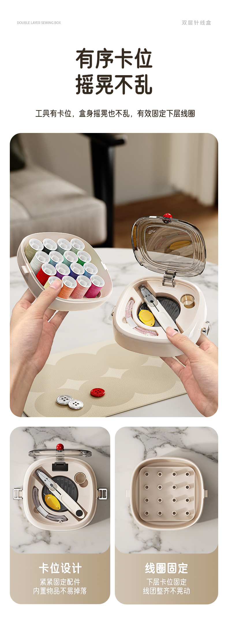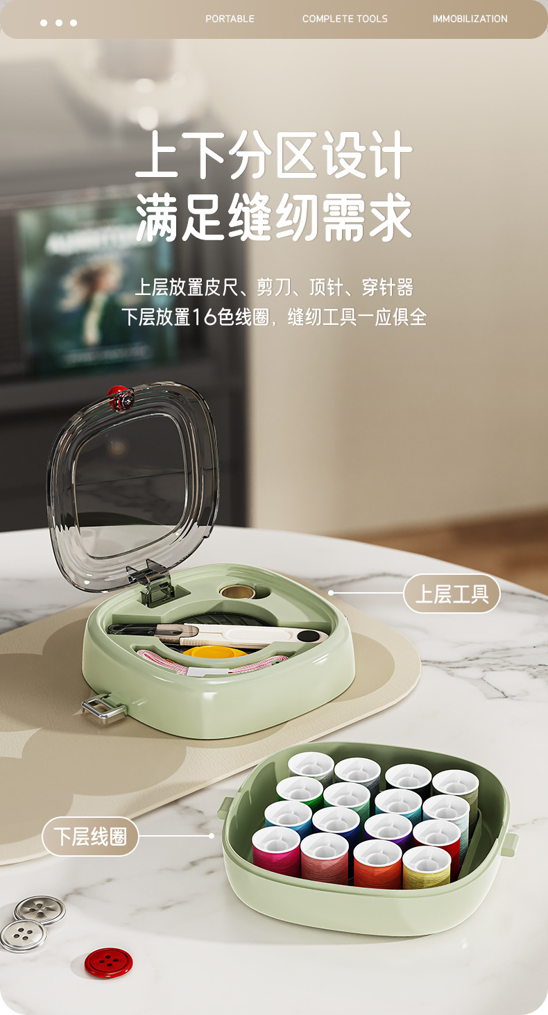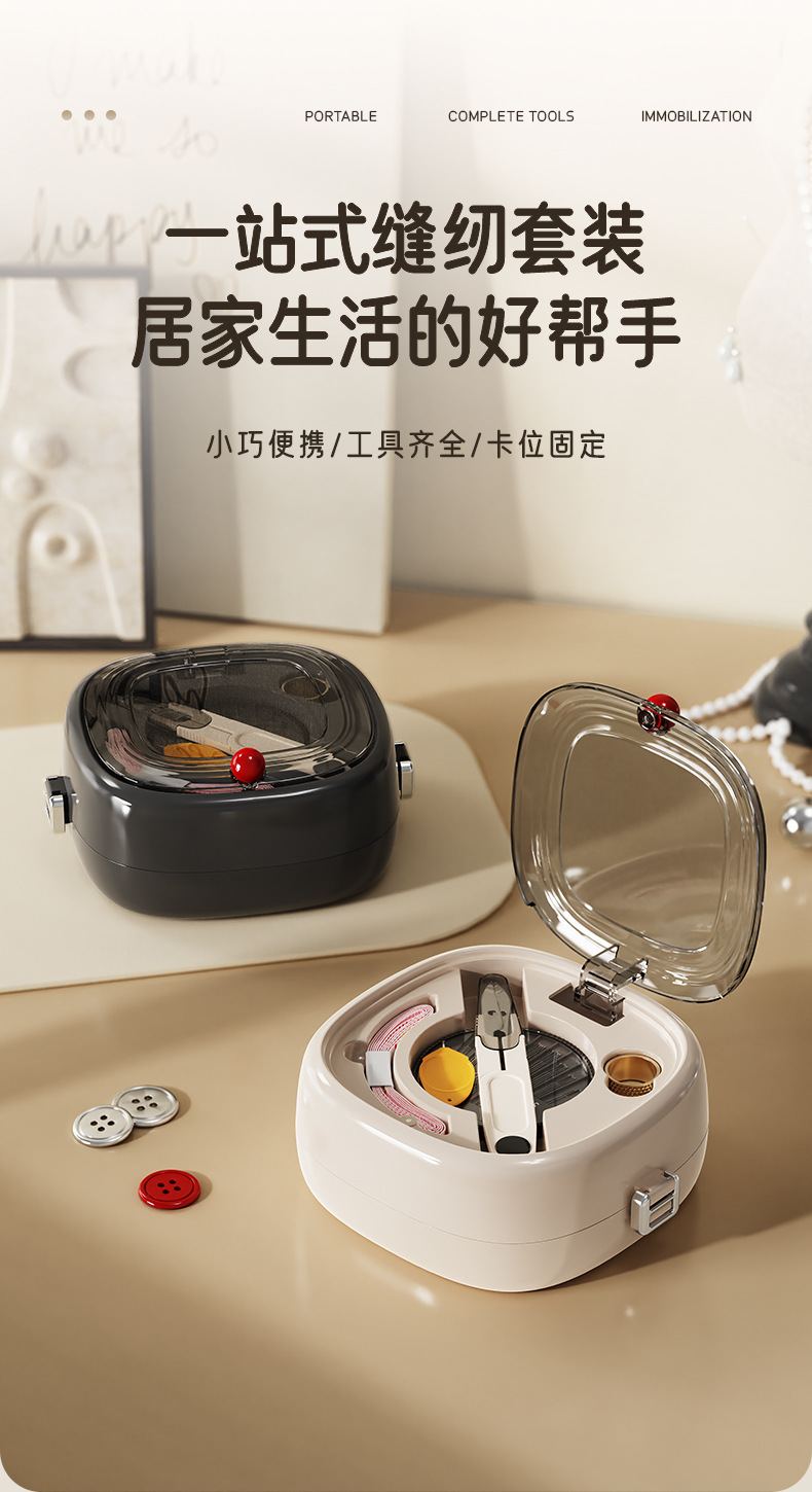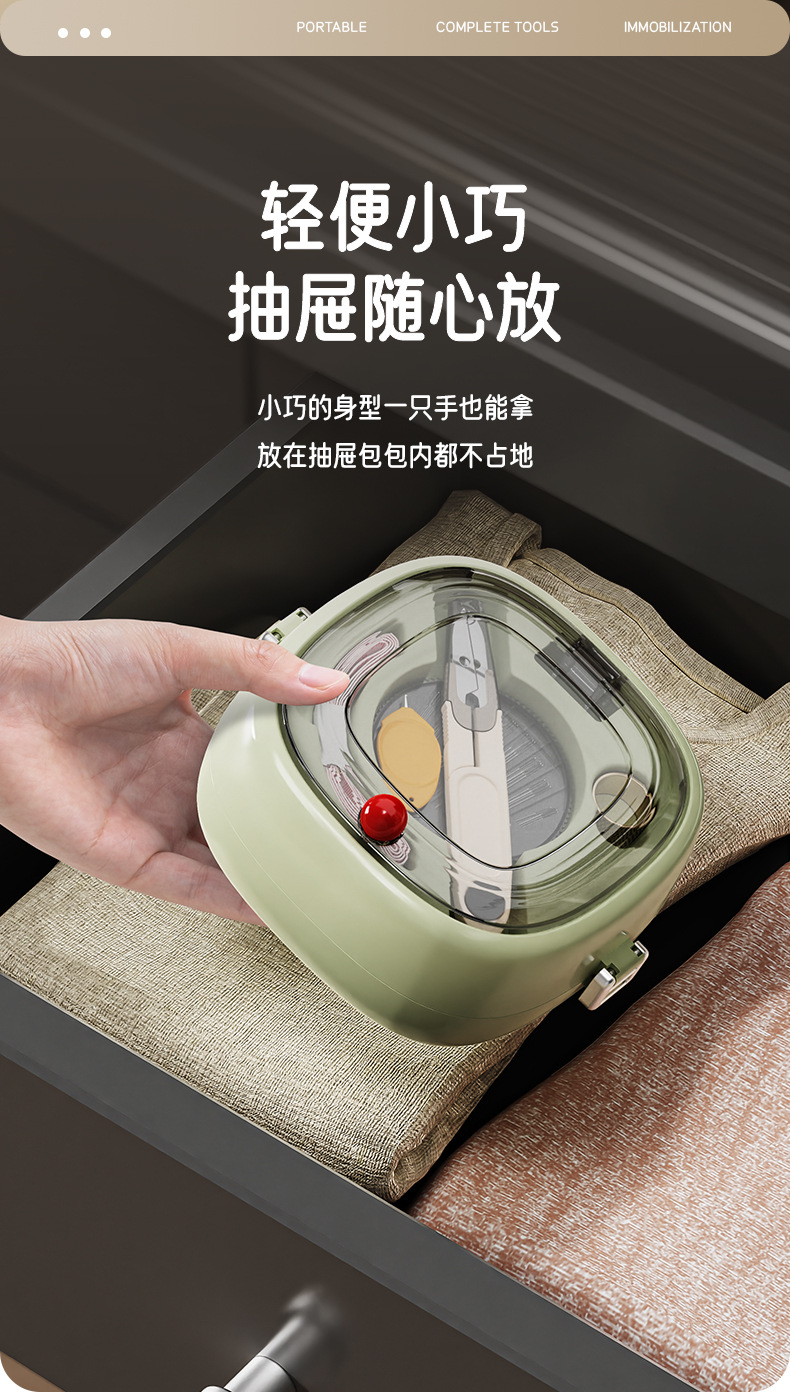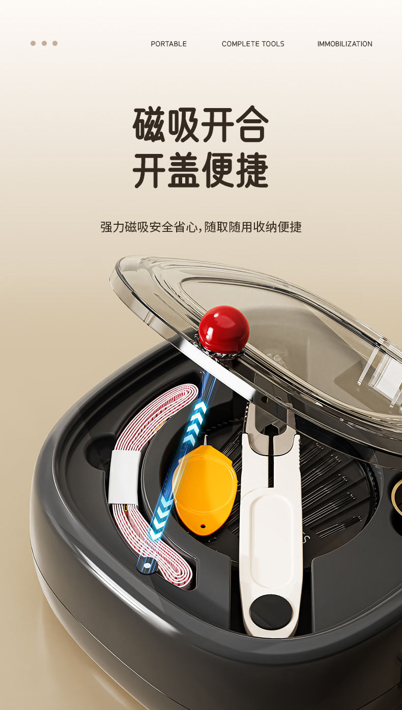 新款方园磁吸针线盒方便可携带缝纫工具套装家用手缝针线盒套装