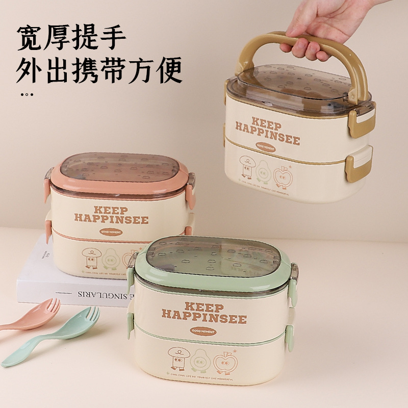 批发方形两层手提便当盒2445双层饭盒大容量餐盒