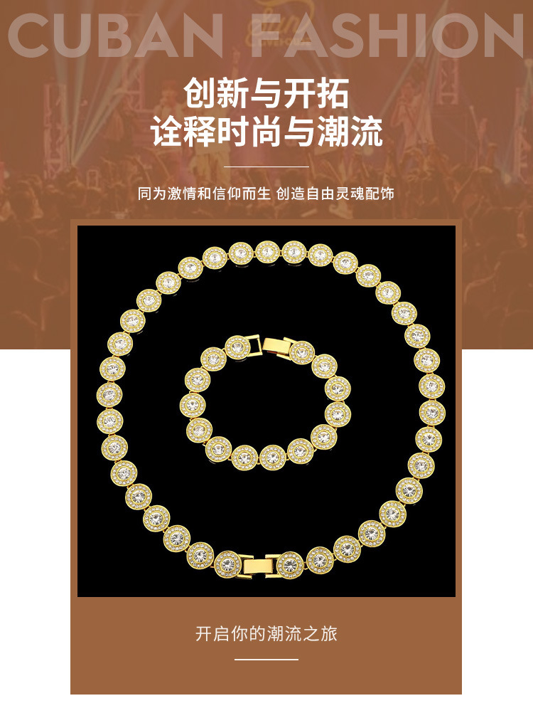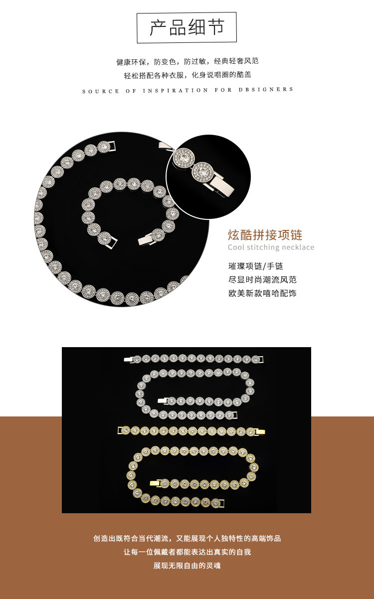 热销圆形钻项链配饰水钻炫酷嘻哈项饰卡扣潮流跨境爆款镶时尚街舞