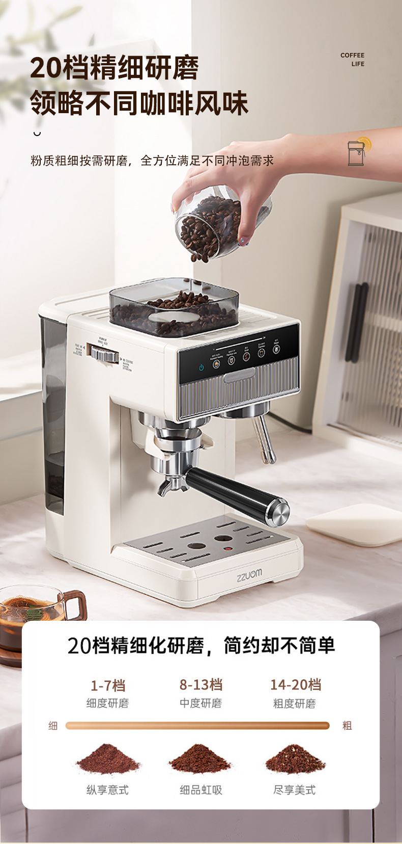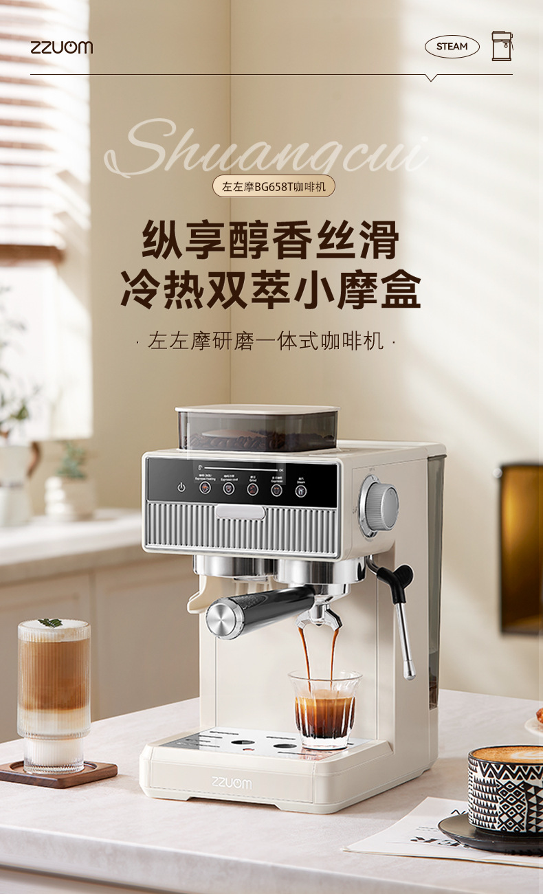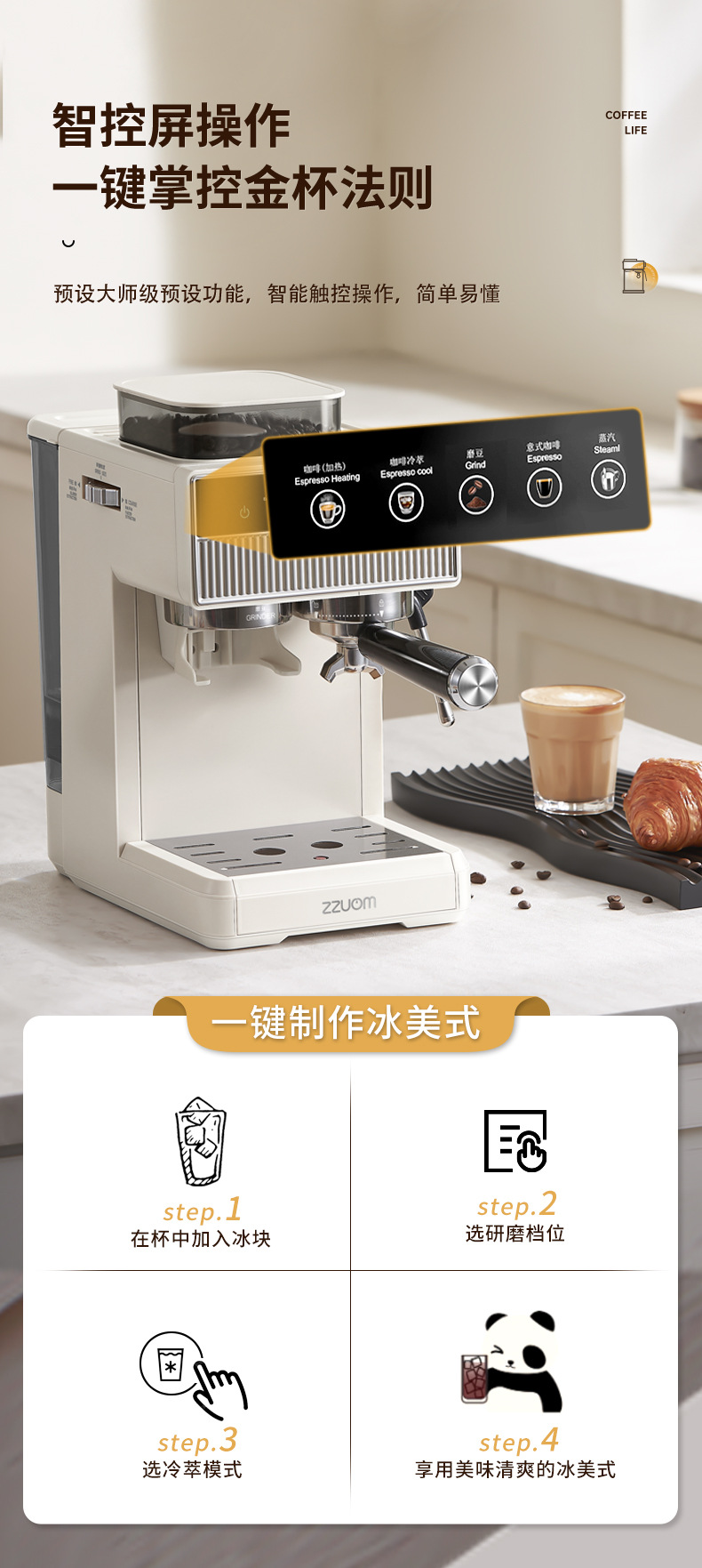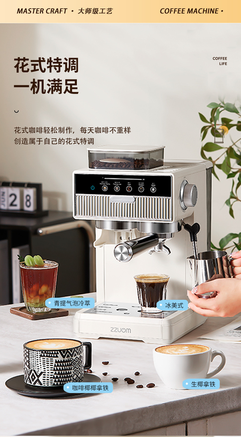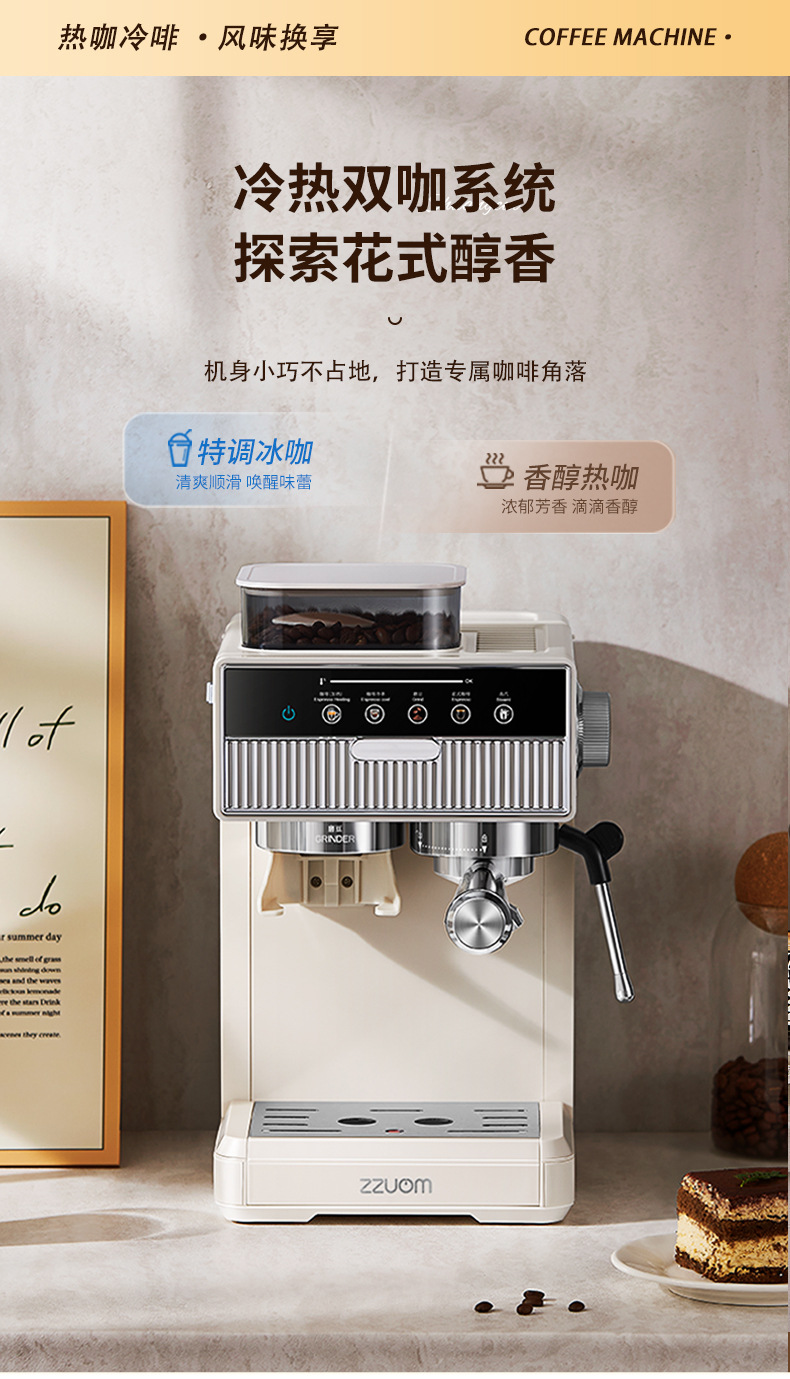 跨境货源 咖啡机全自动家用小型冷热双萃研磨一体意式浓缩咖啡机