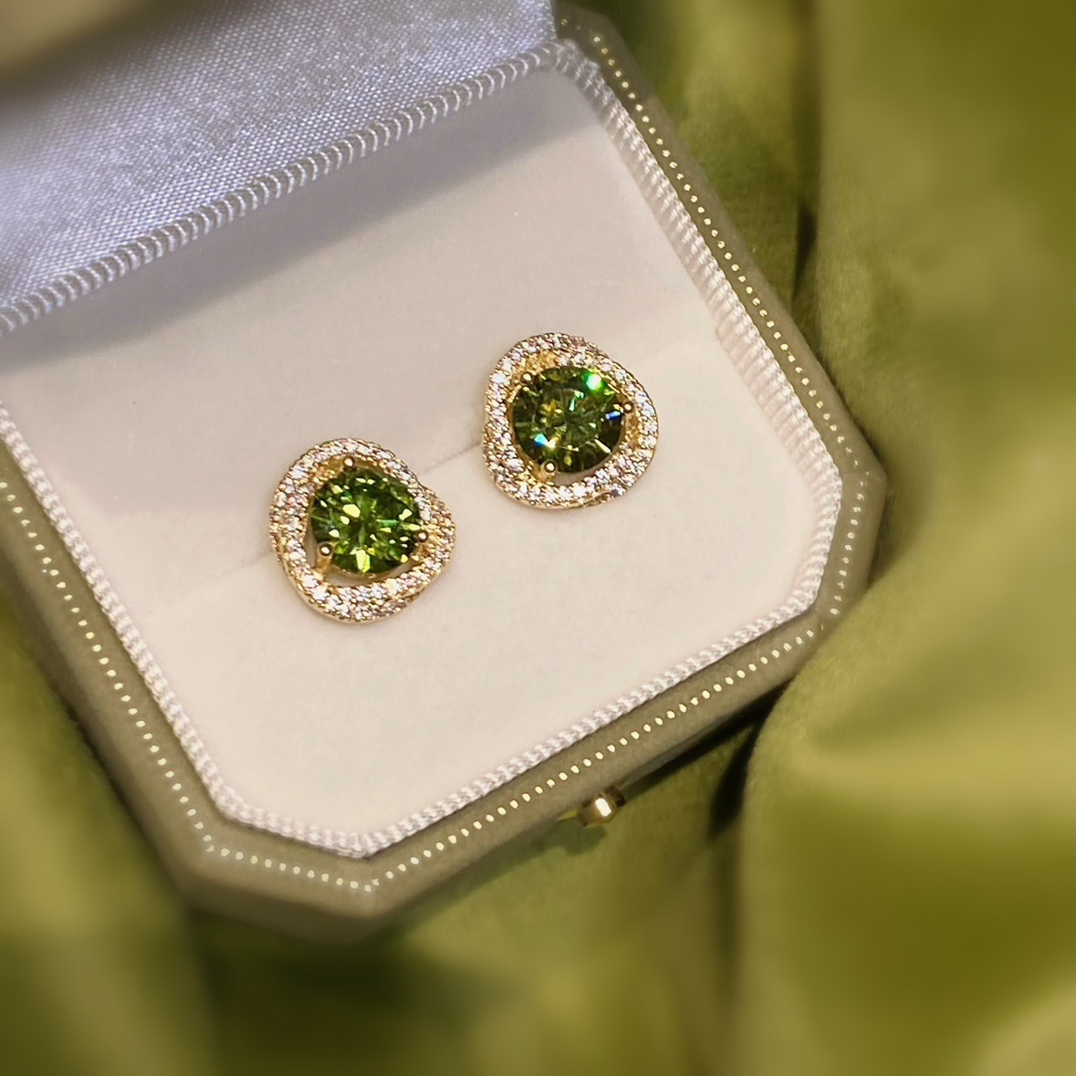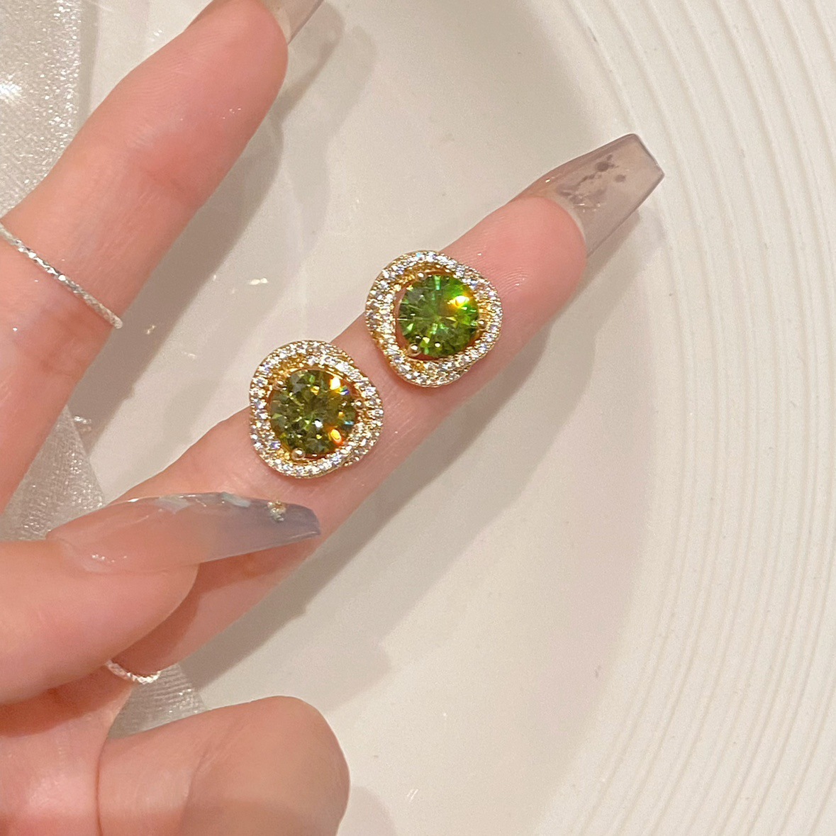 耳环气质爆闪几何形耳环耳饰真金电镀法式高级感橄榄绿锆石耳钉女
