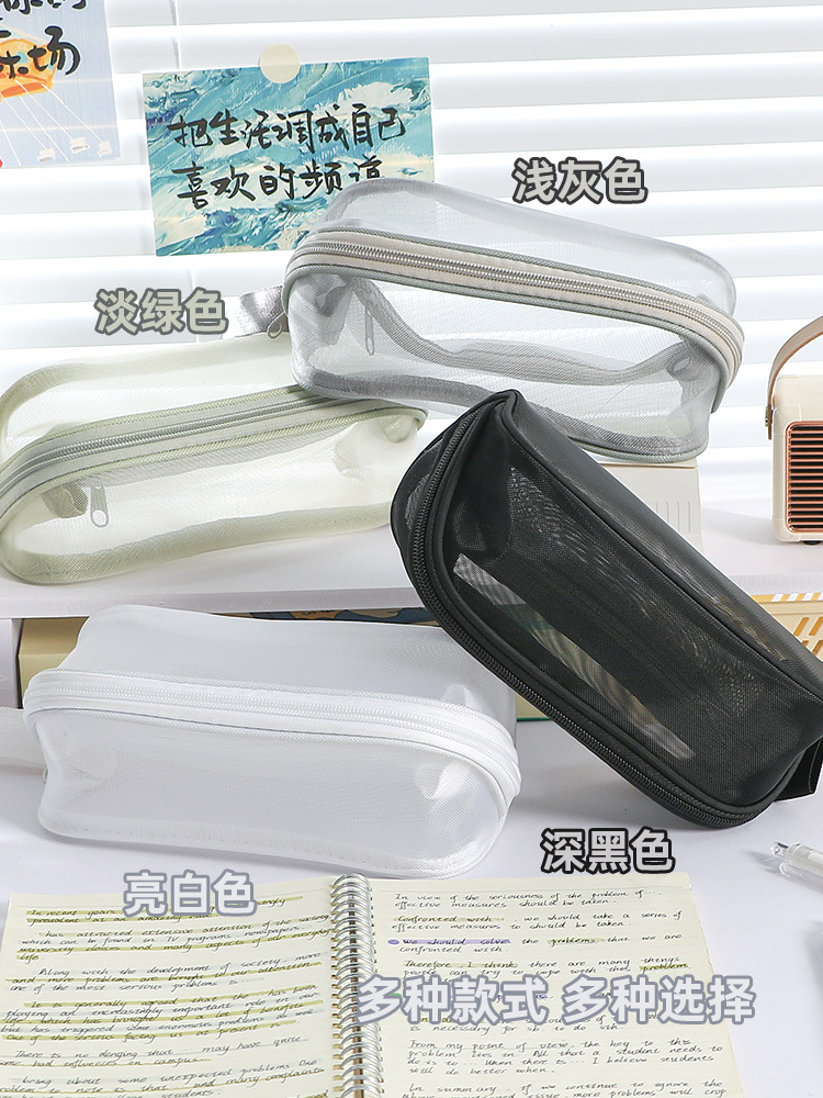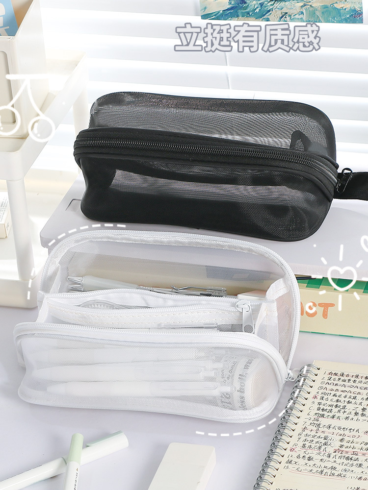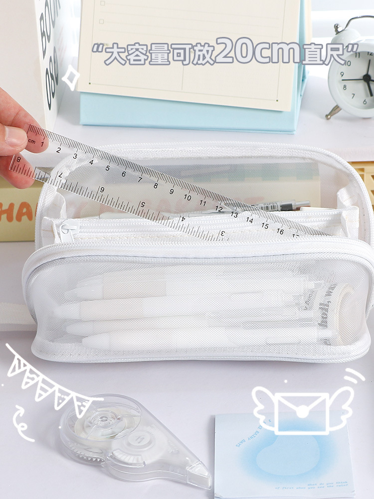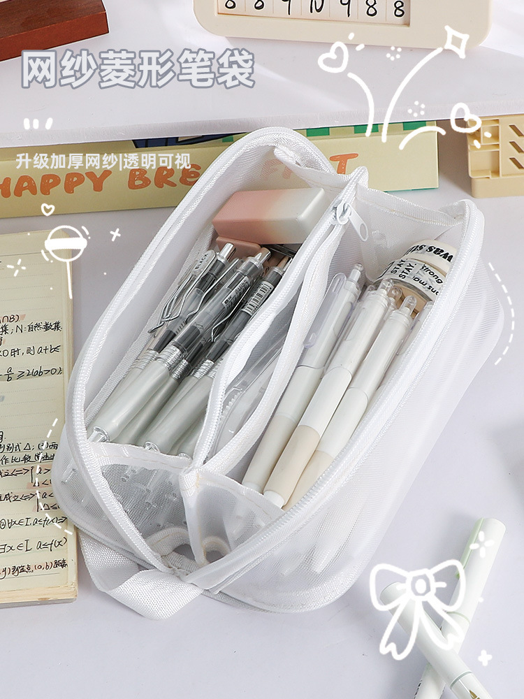简约新款大容量棱镜网纱笔袋耐脏小众不撞款中小学生文具袋