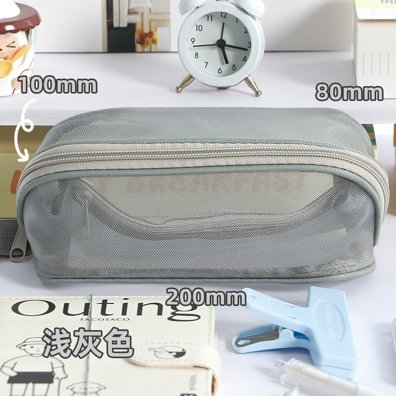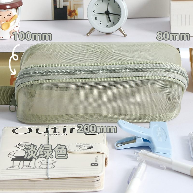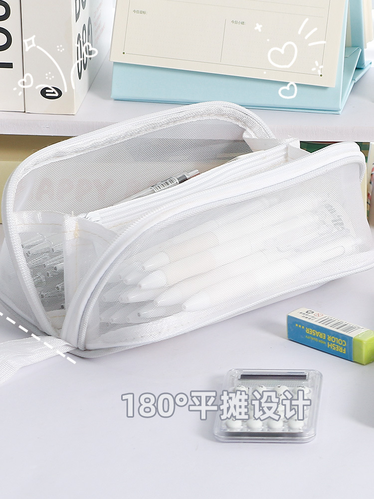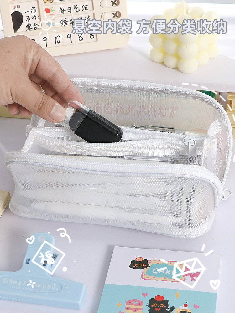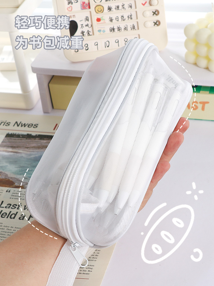 简约新款大容量棱镜网纱笔袋耐脏小众不撞款中小学生文具袋