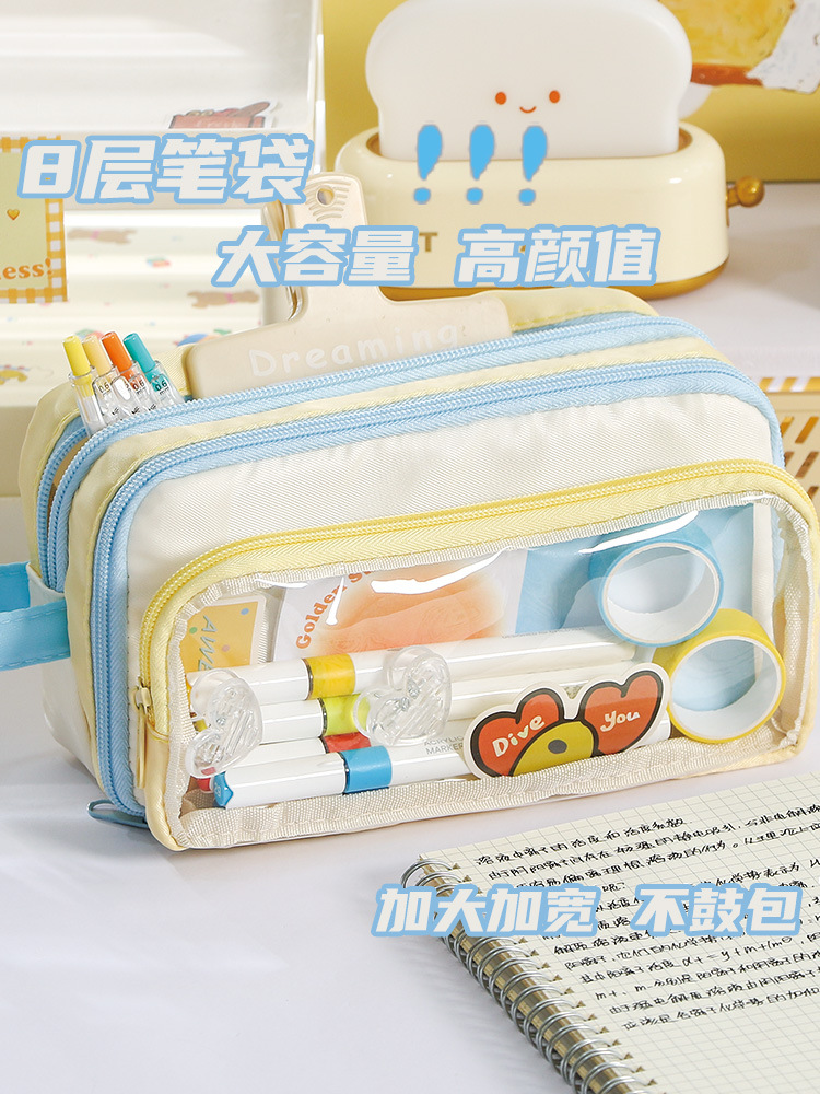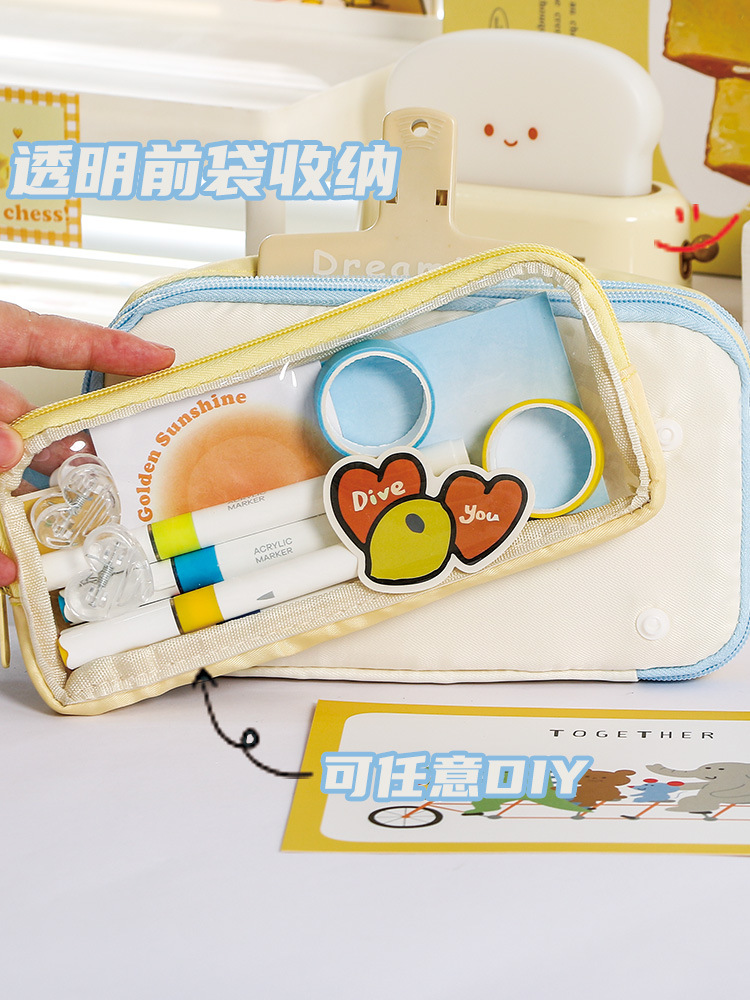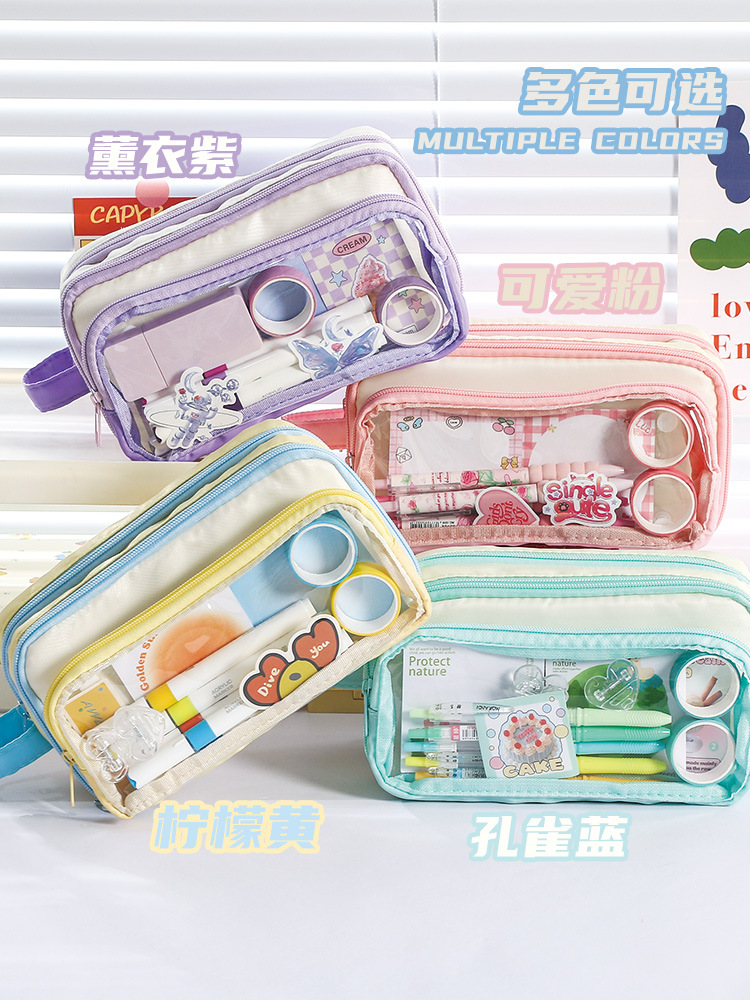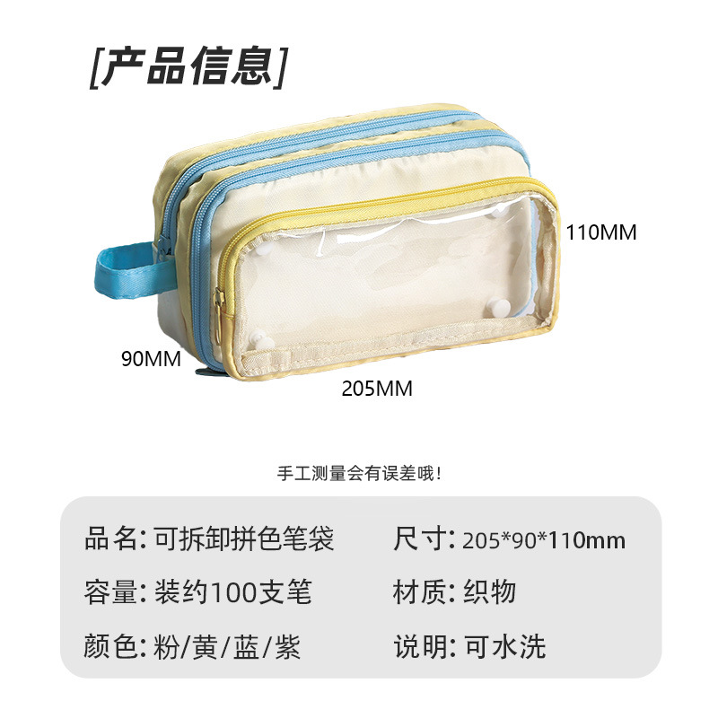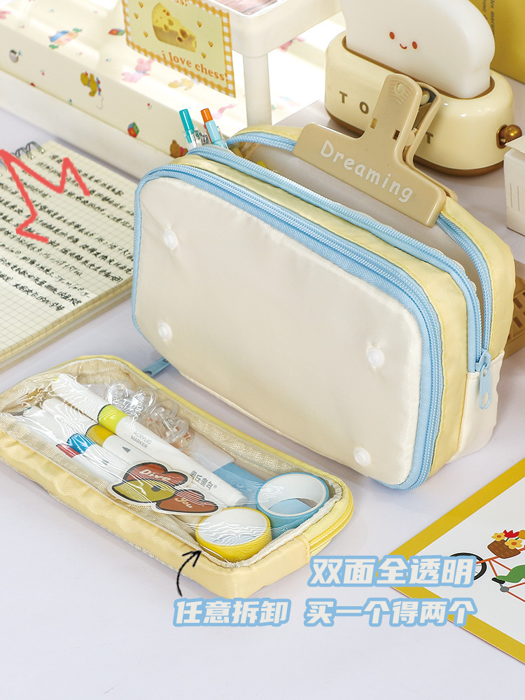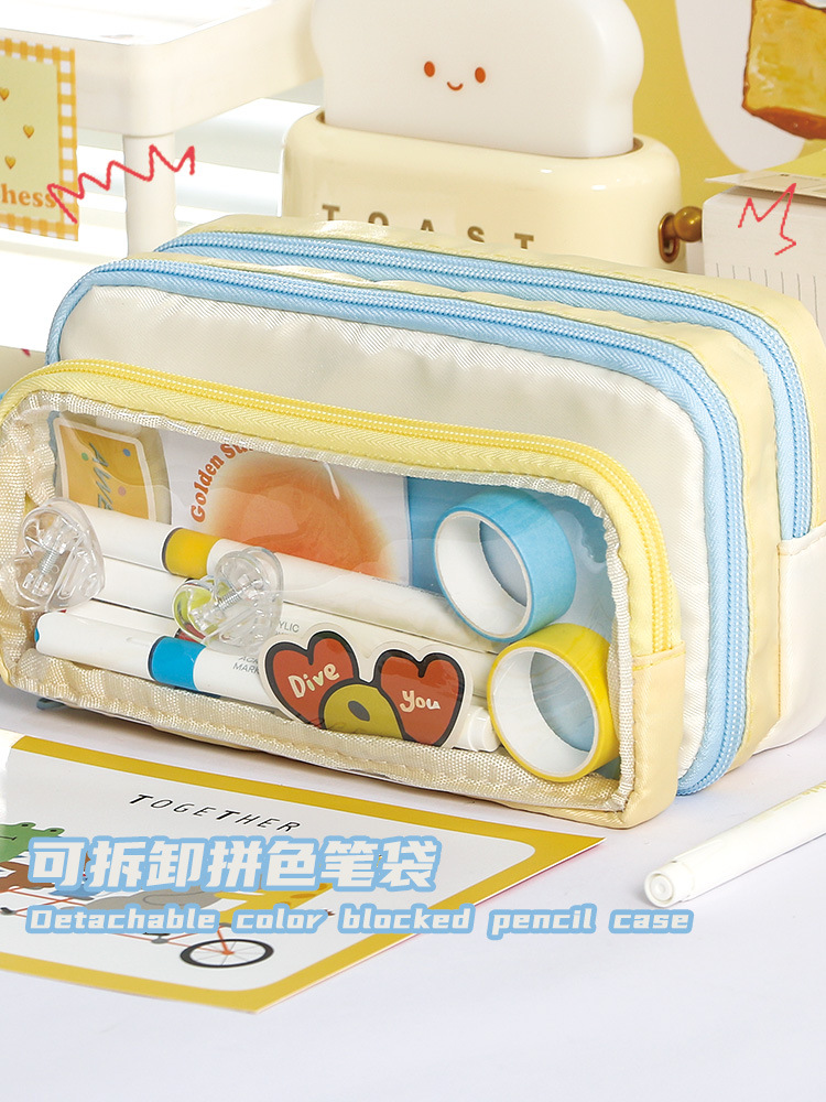 大容量透明多巴胺可拆卸撞色笔袋简约新款高颜值痛包文具袋