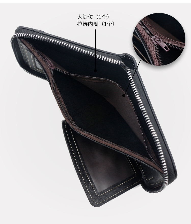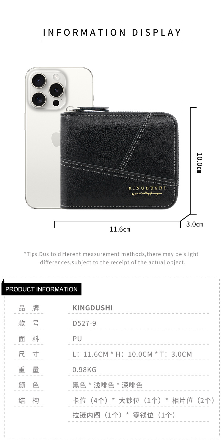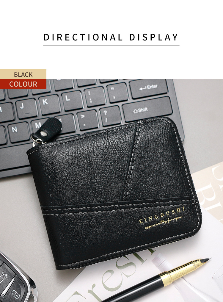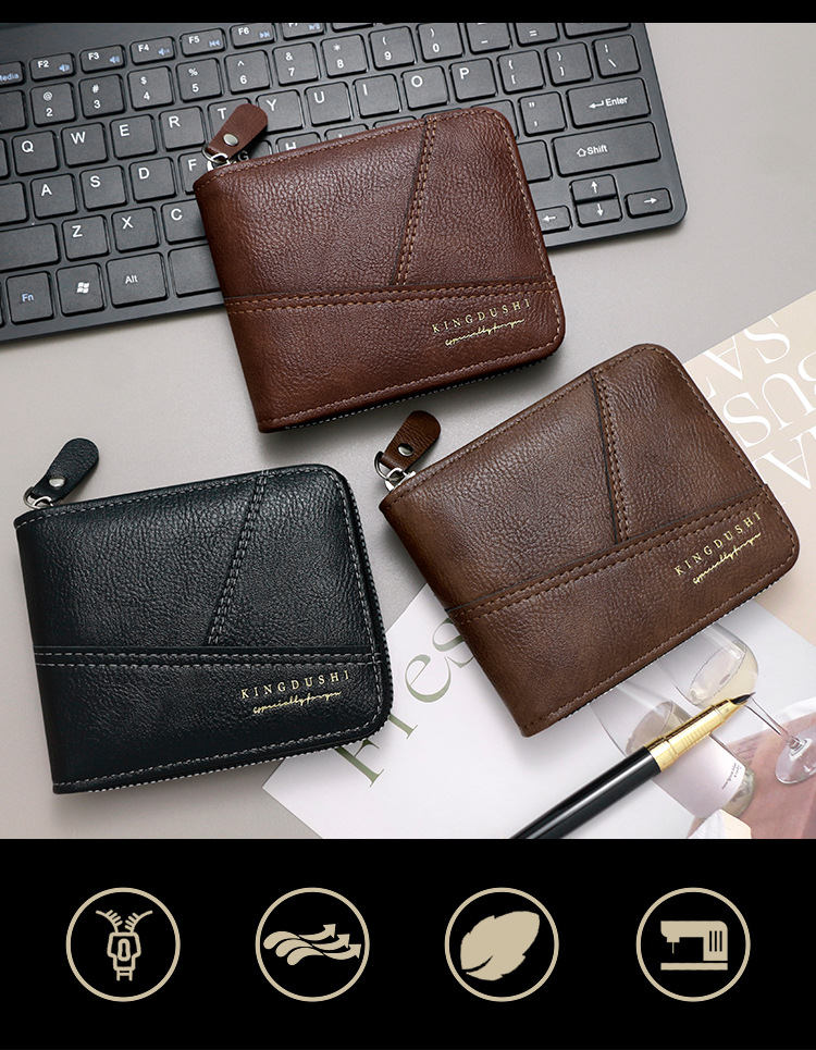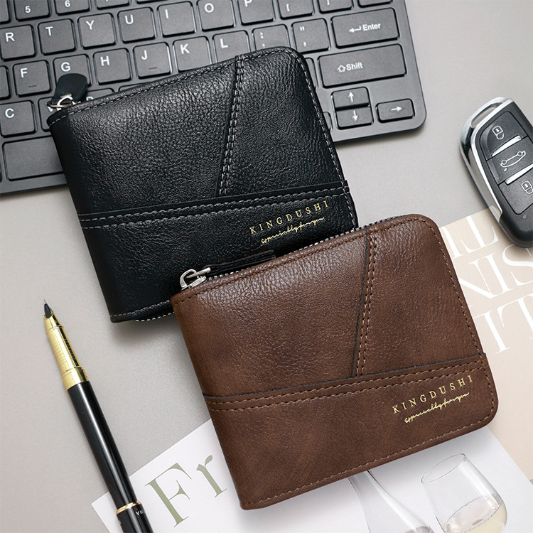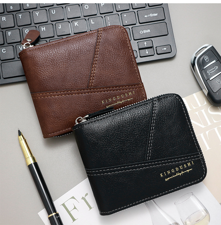 跨境时尚拼接荔枝纹男士短款围链钱包三折合页包碎银袋零钱包批发