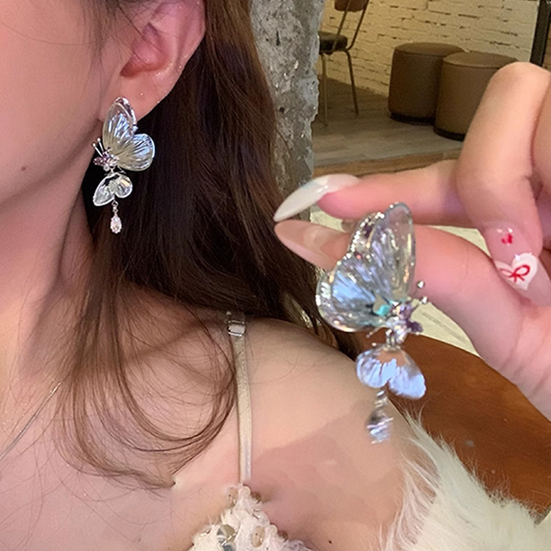 耳环小众超仙气质镂空耳钉S925银针高级感灵动立体蝴蝶锆石耳环女