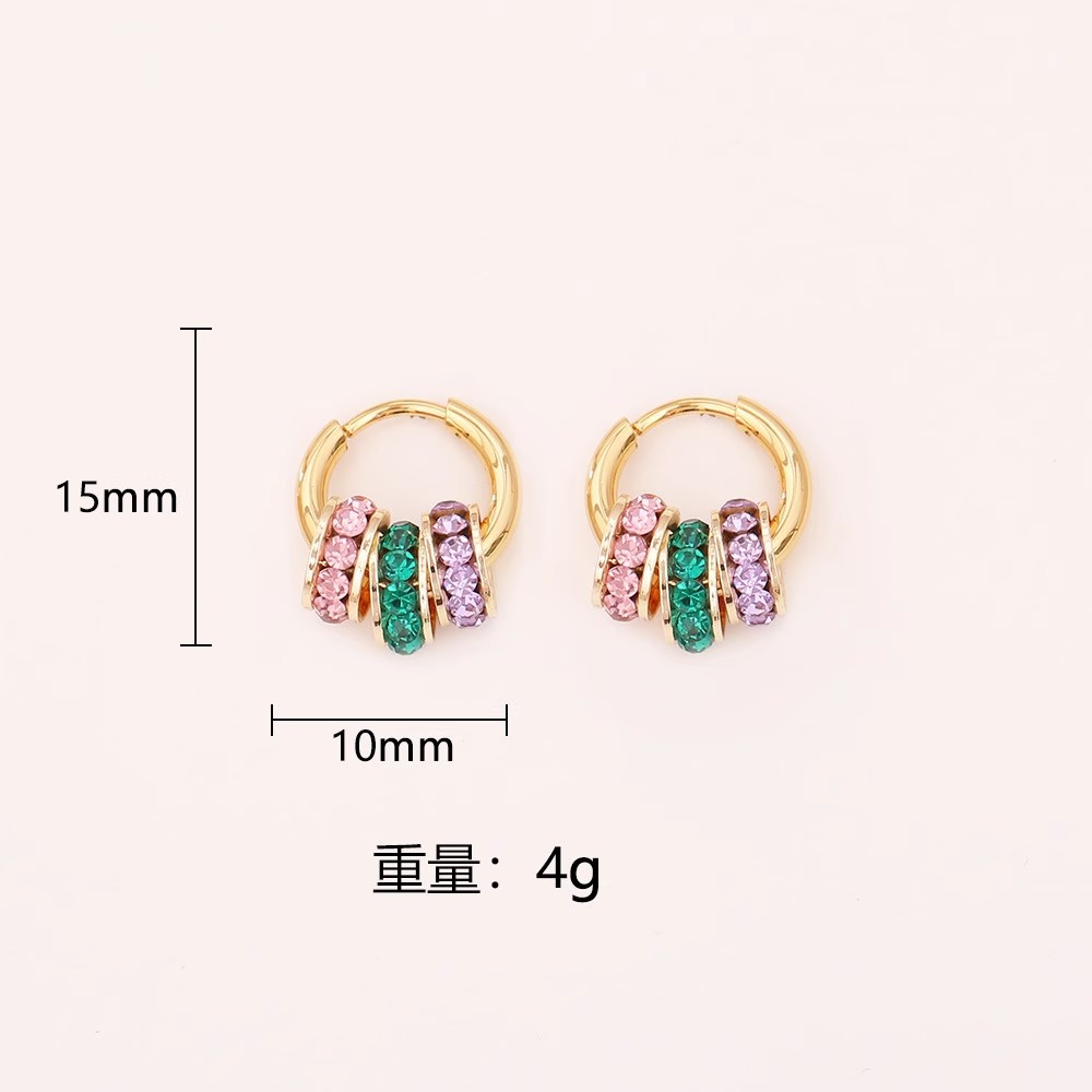 耳环百搭气质耳钉真金电镀高级感精致彩色锆石圆圈吊坠耳扣耳环女