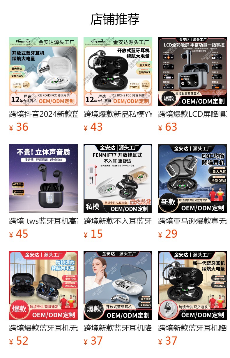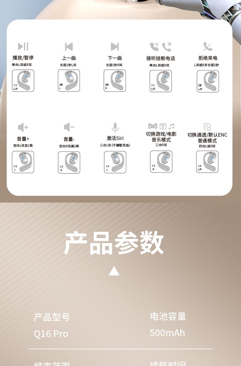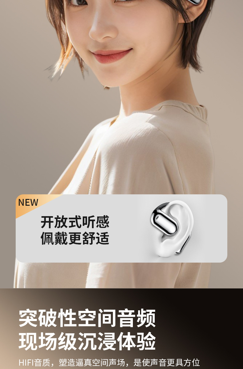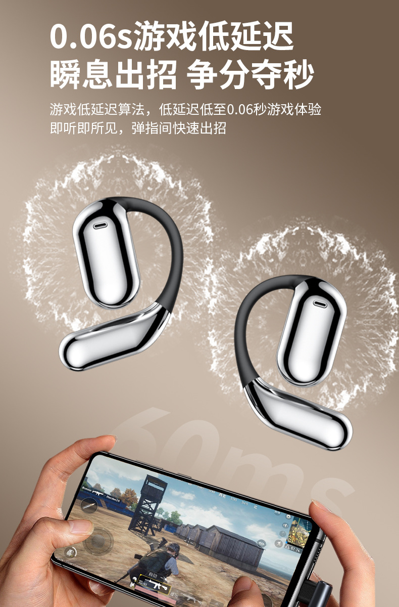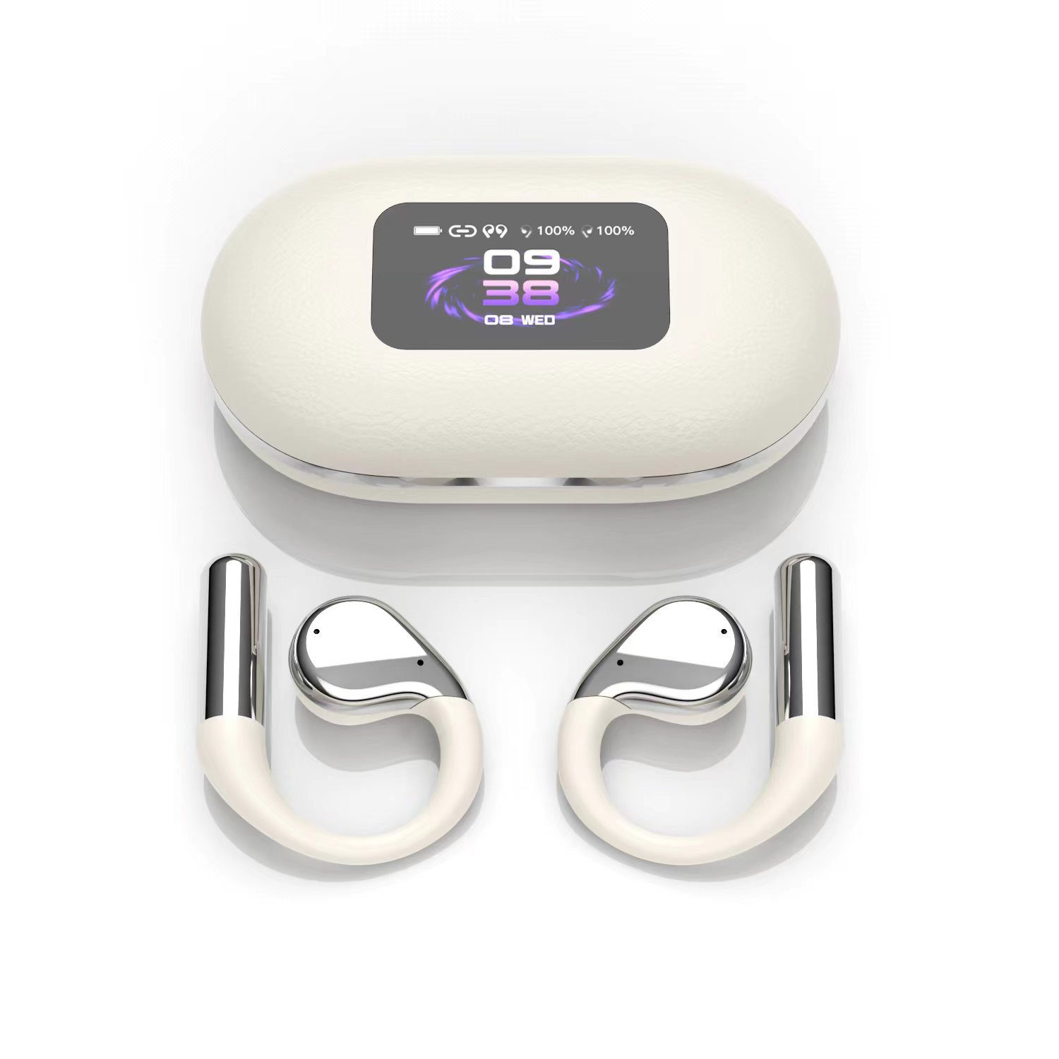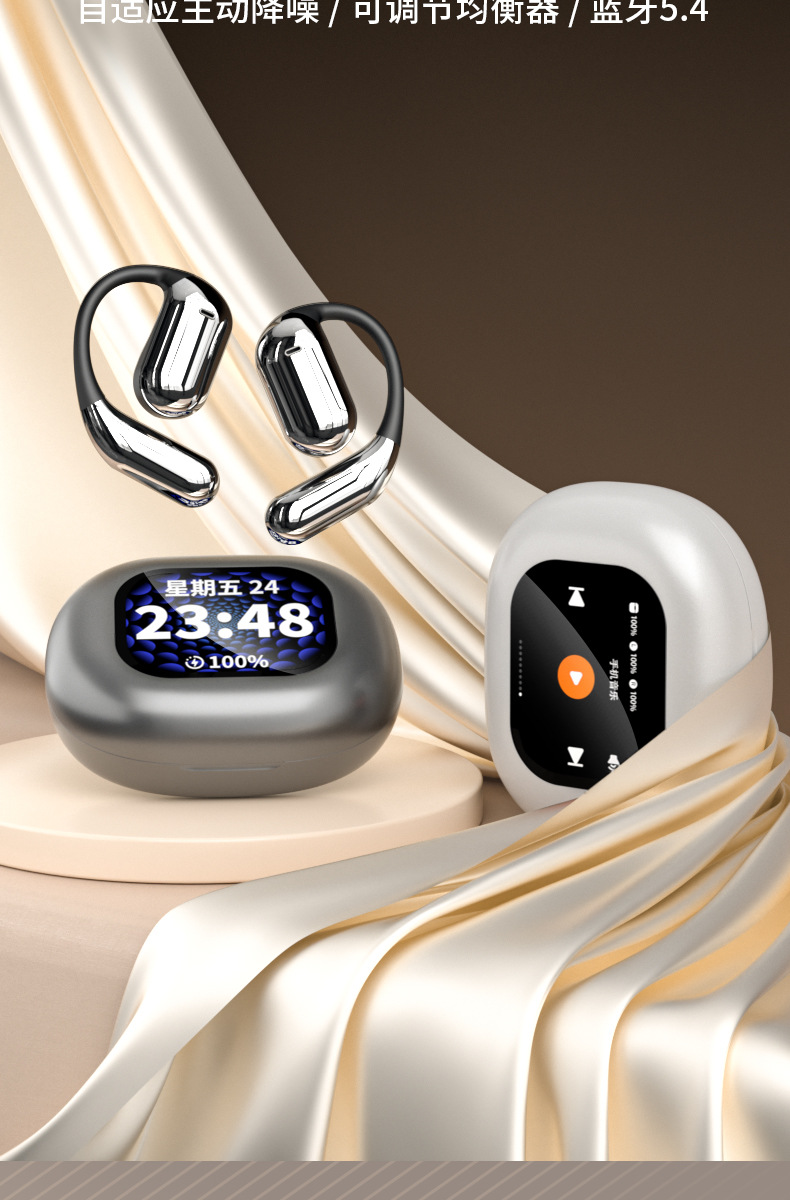 跨境新款开放挂耳式LCD屏运动耳机全彩触屏蓝牙耳机ANC智能AI翻译