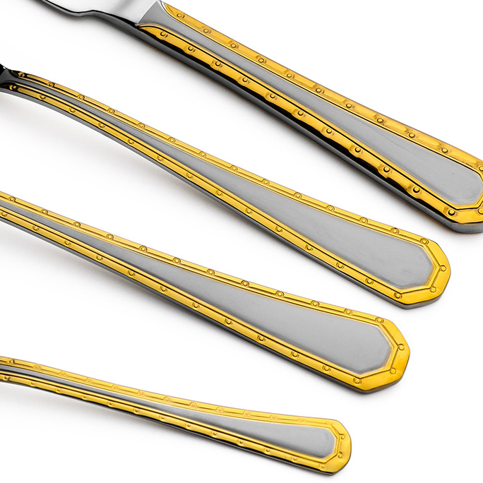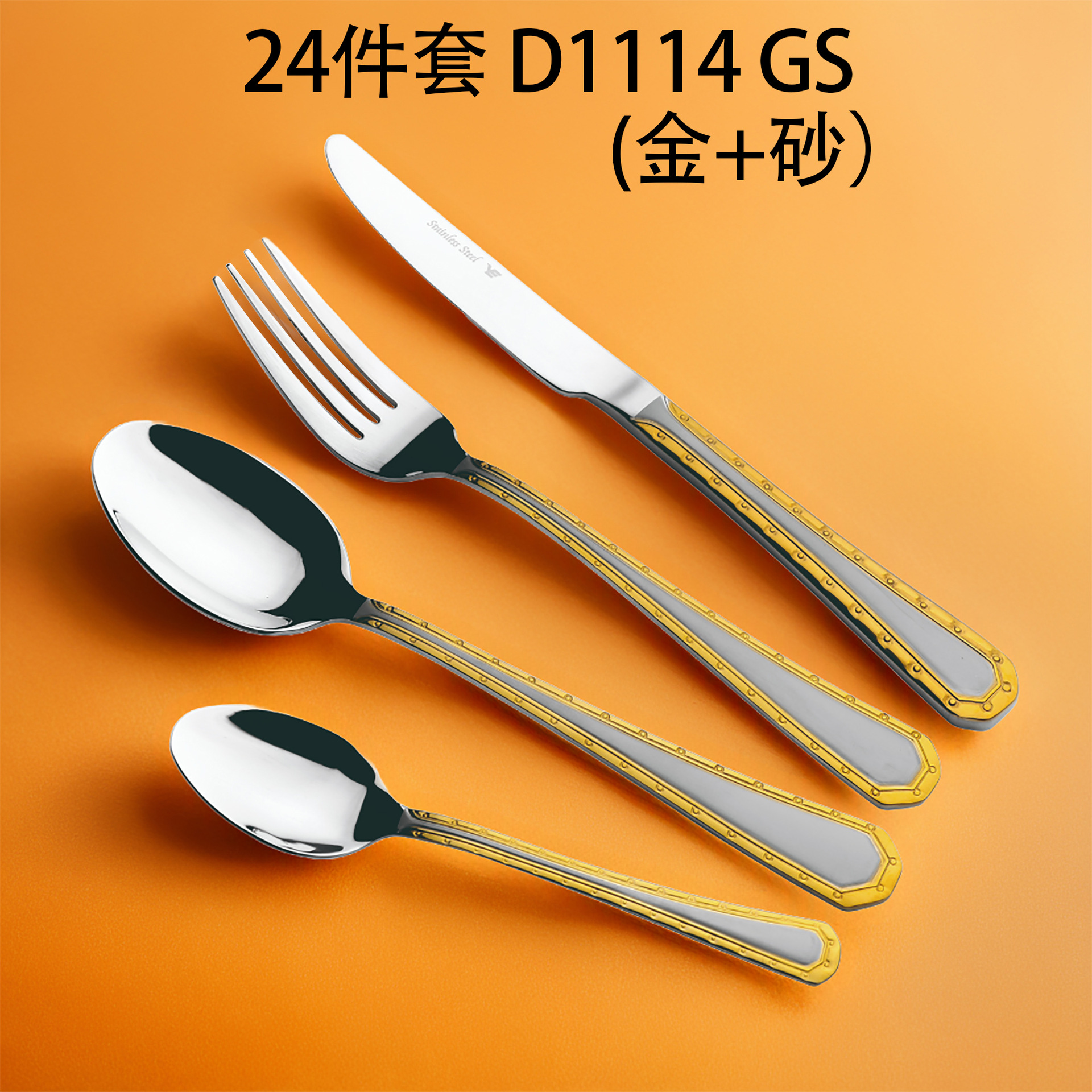 套装名称:D1114 GS 金+砂 24件不锈钢餐具套装