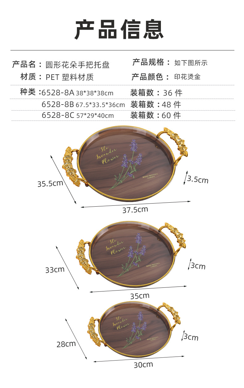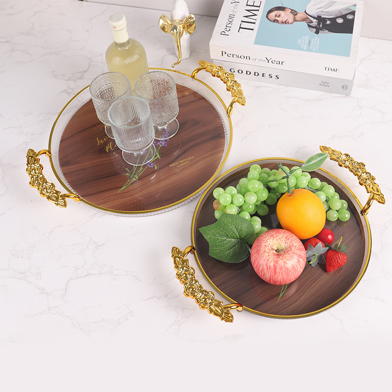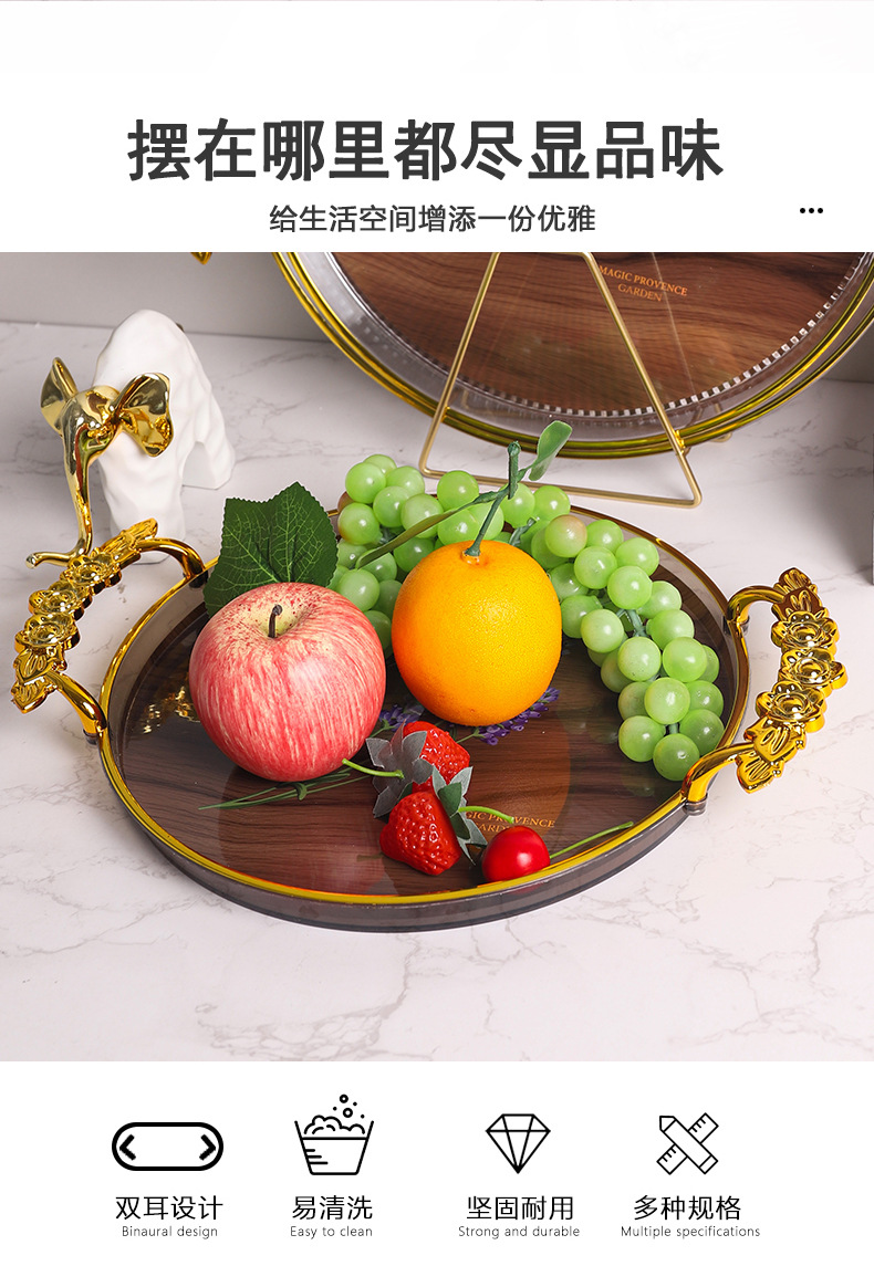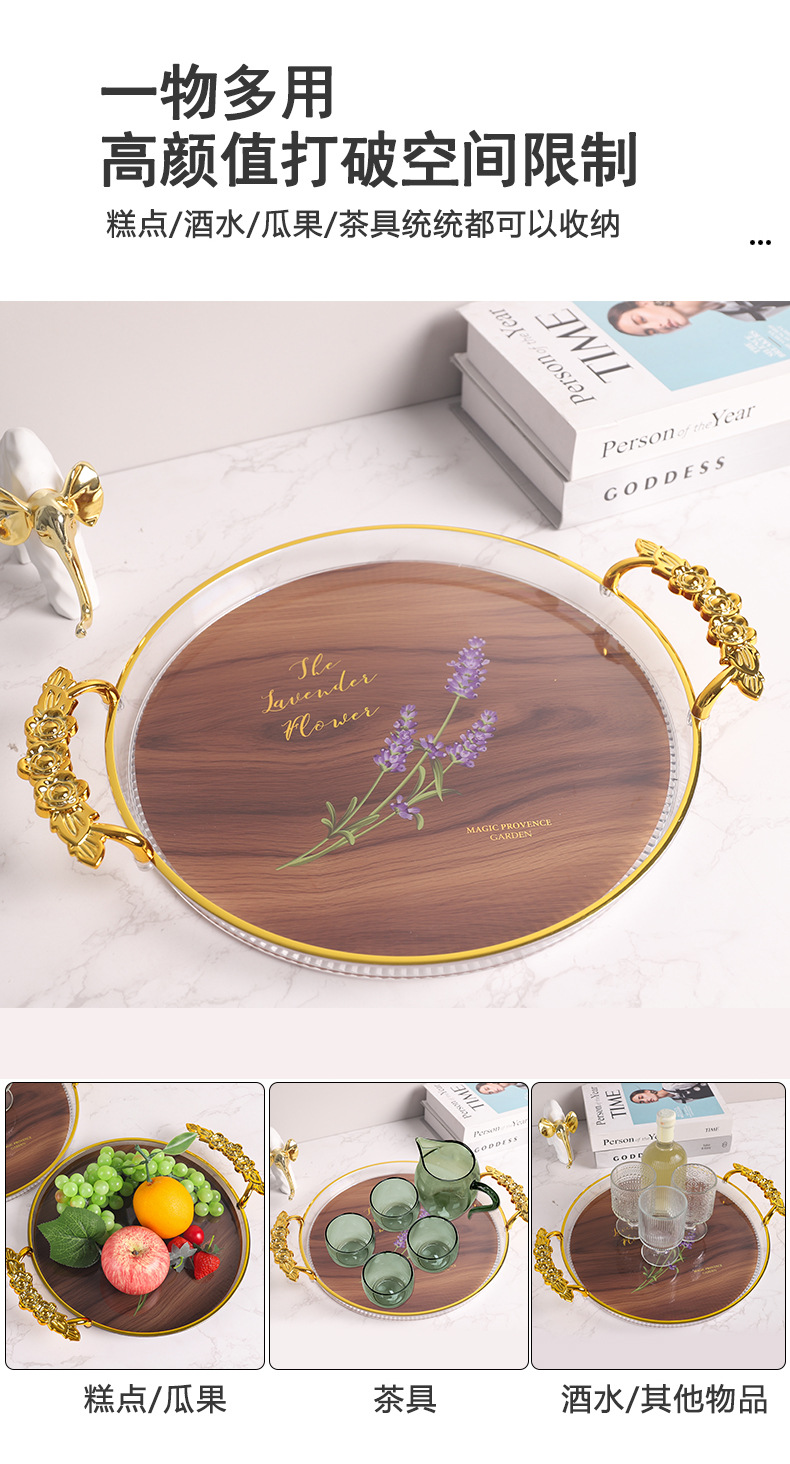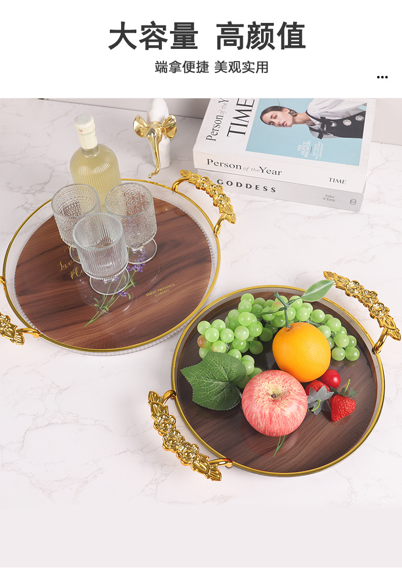 轻奢托盘ins风高颜值圆形餐厅茶盘茶几杯子放茶杯水杯家用塑料盘