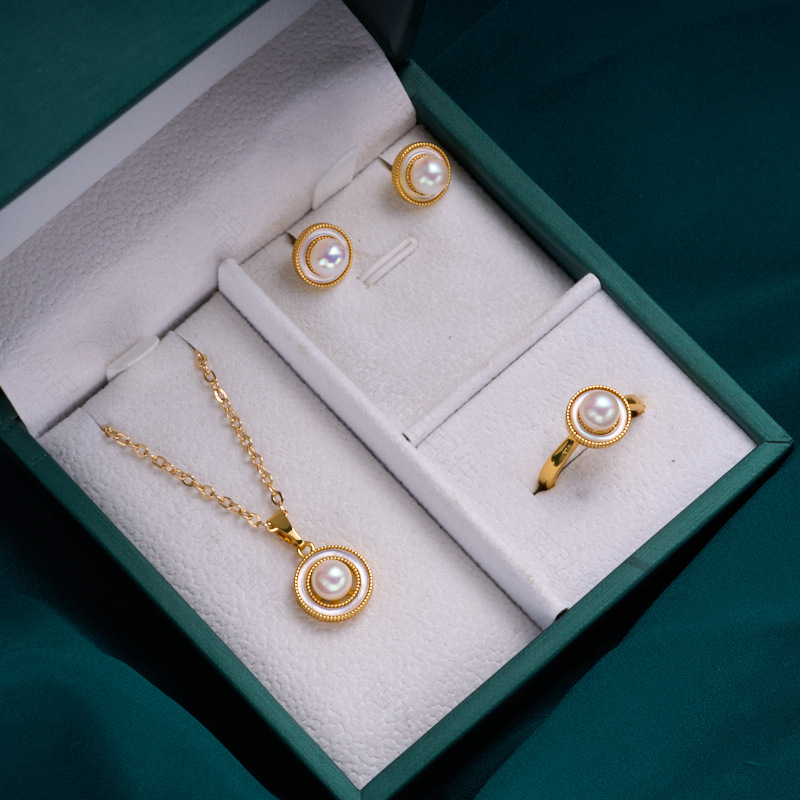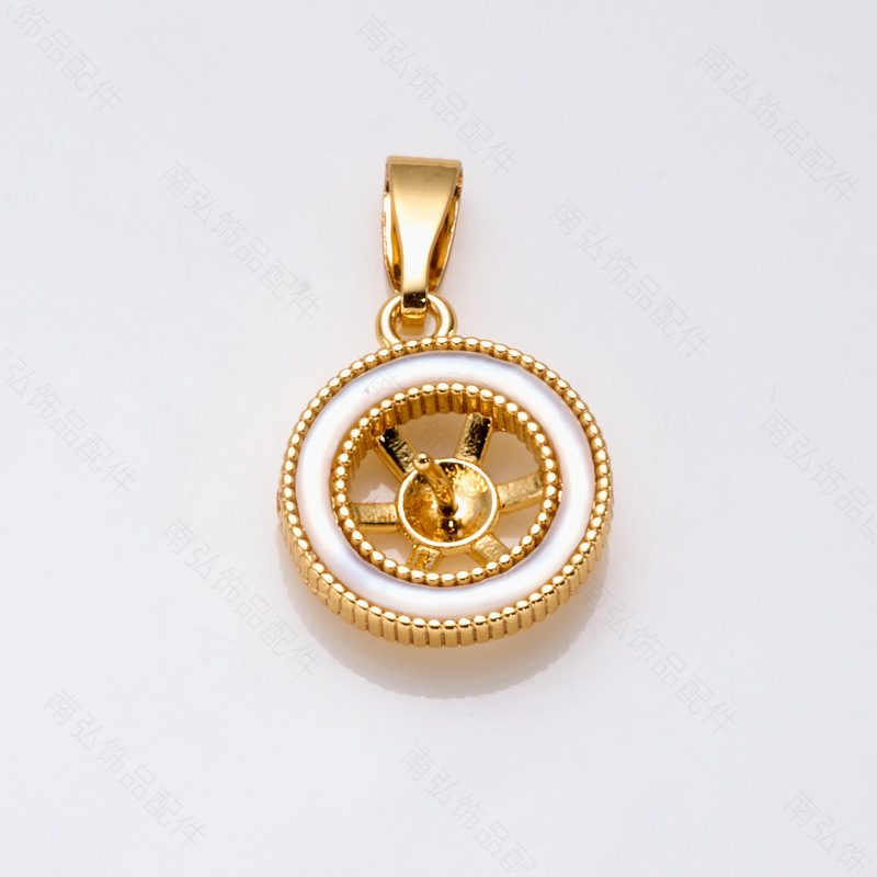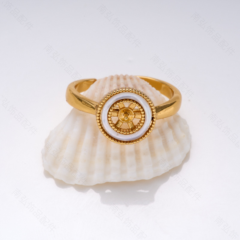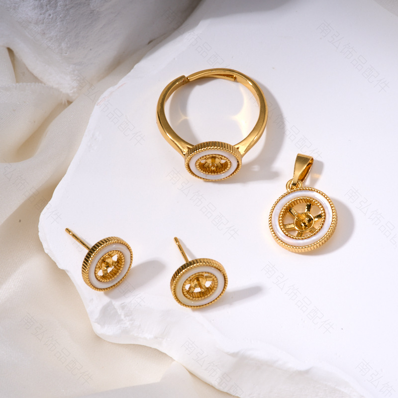 珍珠戒指耳针吊坠三件套空托圆形镶天然贝母高级感DIY轻奢高级感