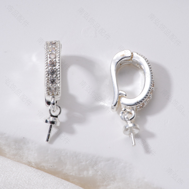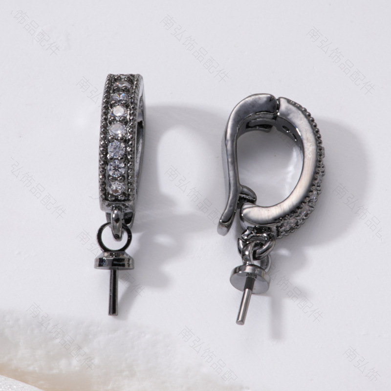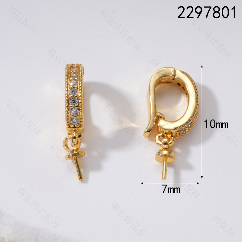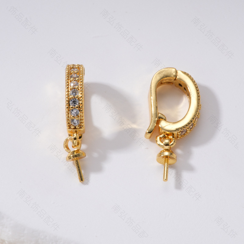 18K包金保色珍珠项链吊坠扣微镶万能扣带羊眼针空托配件diy配件