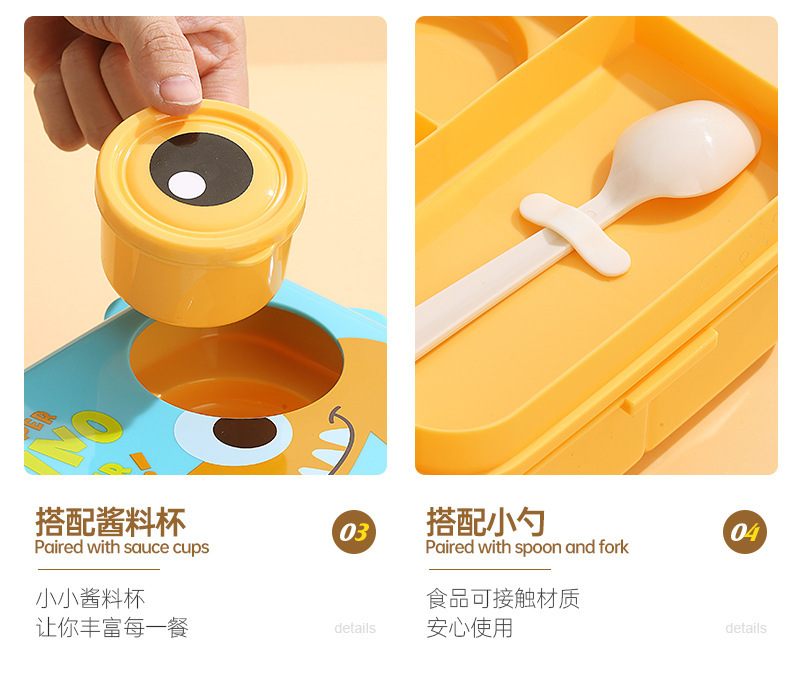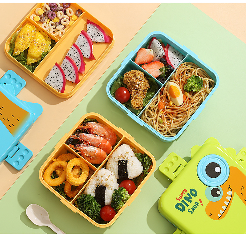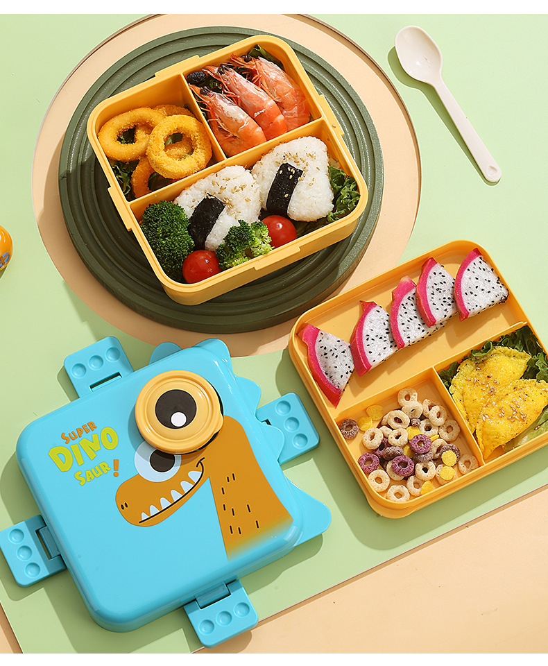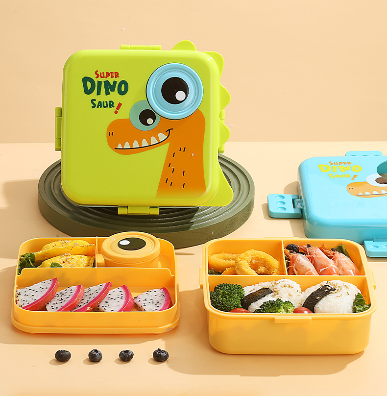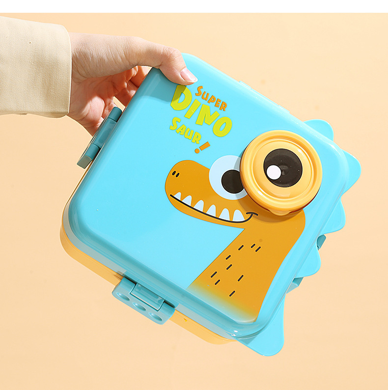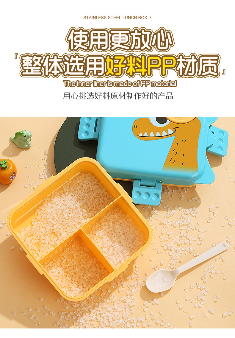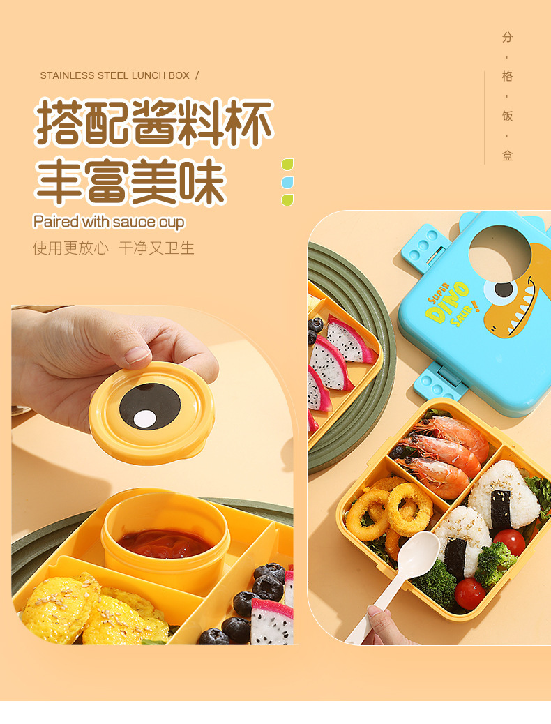 双层分隔午餐盒外带三格卡通恐龙餐盒塑胶可微波加热密封饭盒
