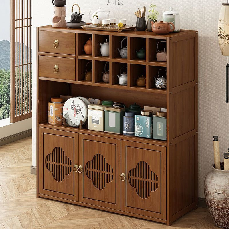 茶水柜家用茶室茶叶架博古架茶柜置物架中式茶台桌边柜茶具收纳架