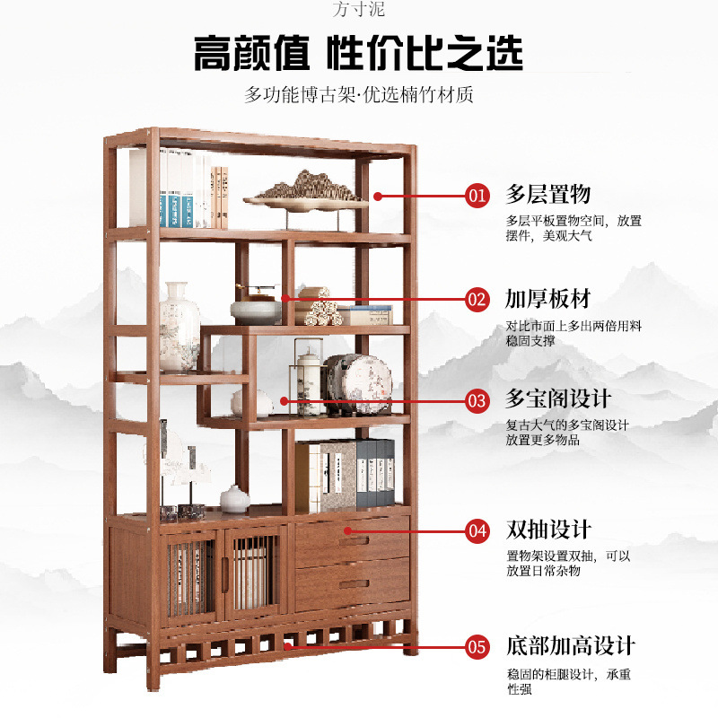 博古架多宝阁茶叶展示柜客厅新中式置物架古摆件柜书架收纳厂批发