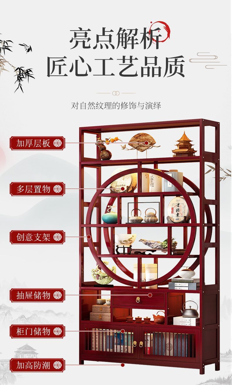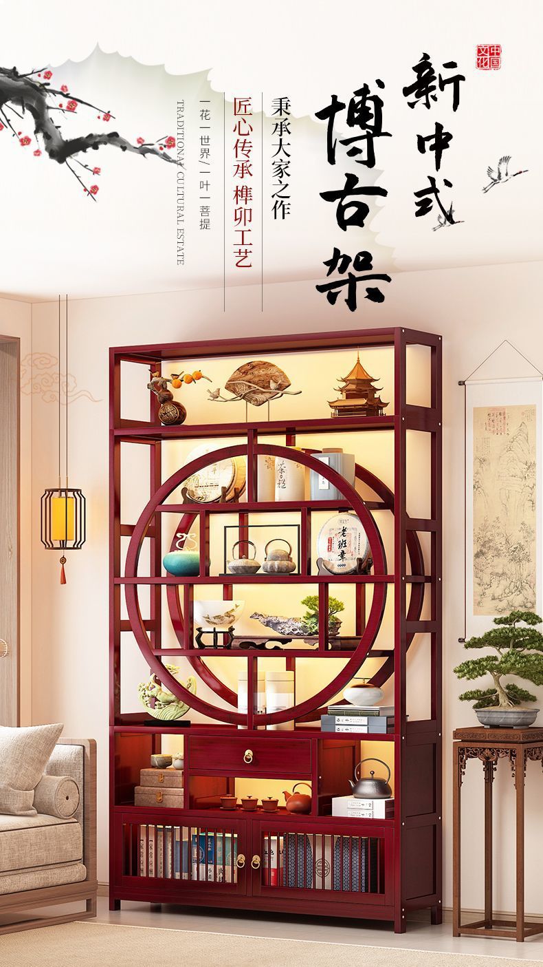 博古架非实木新中式茶叶展示柜茶架茶柜置物架茶室茶具摆件收纳架