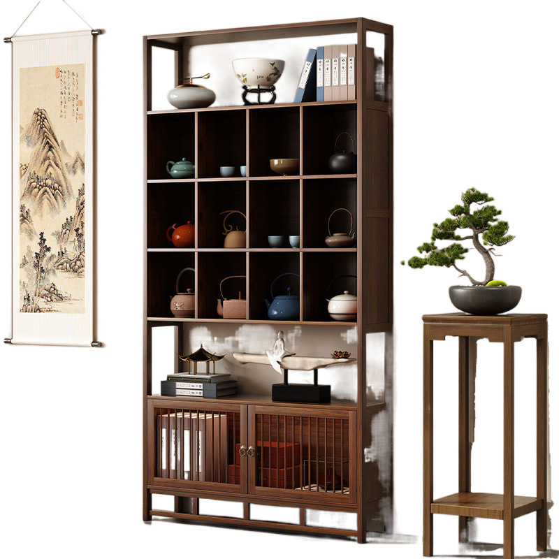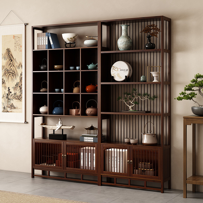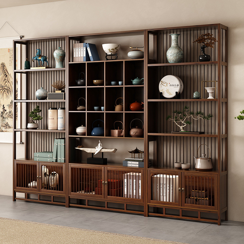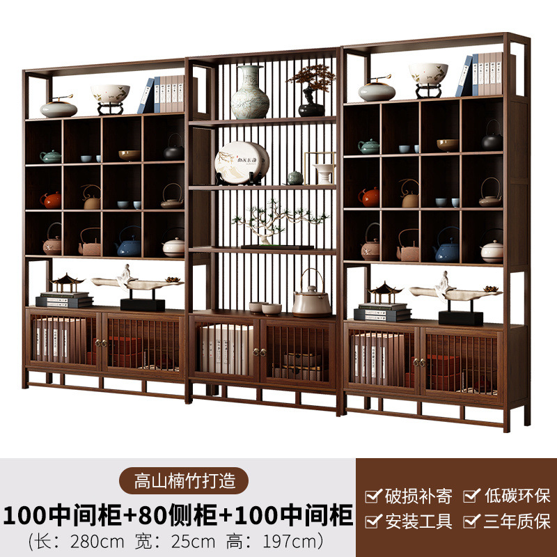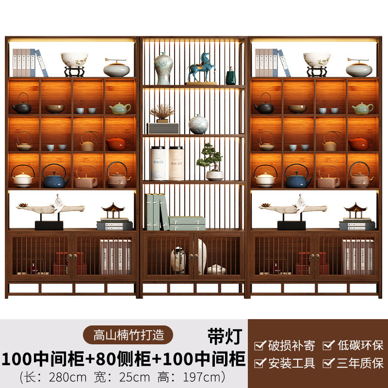 新中式博古架带灯带实木茶具架办公室展示柜茶室茶柜茶架工艺品架
