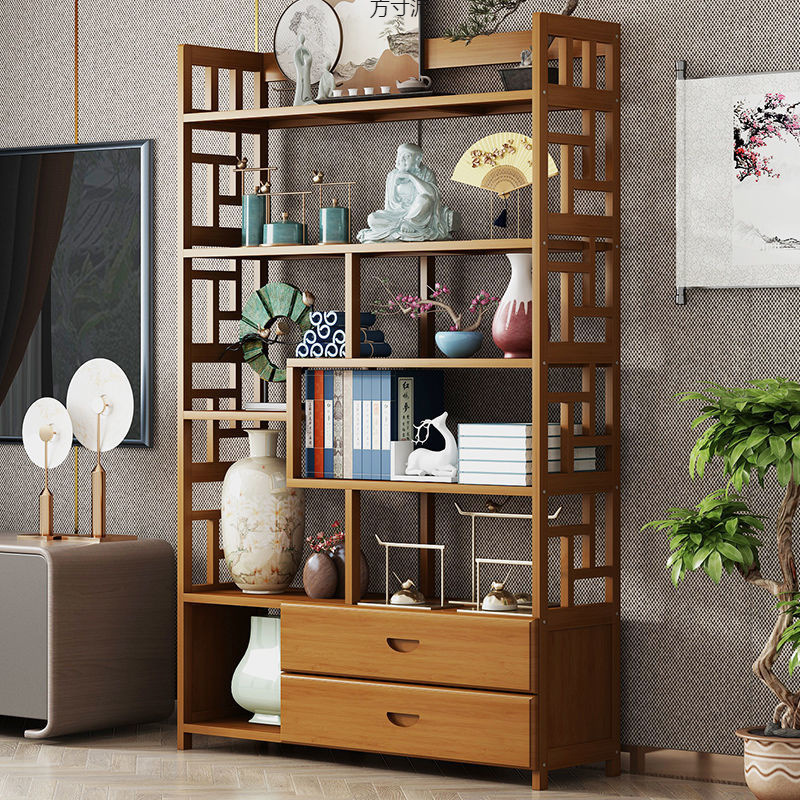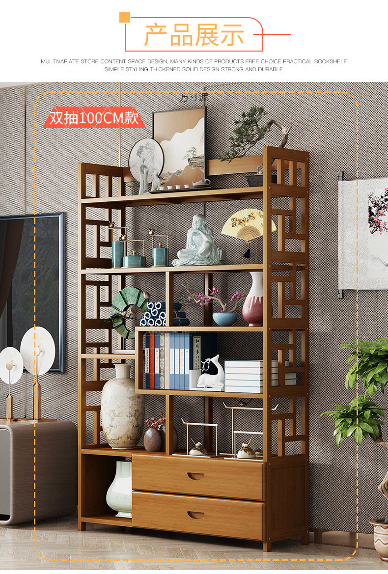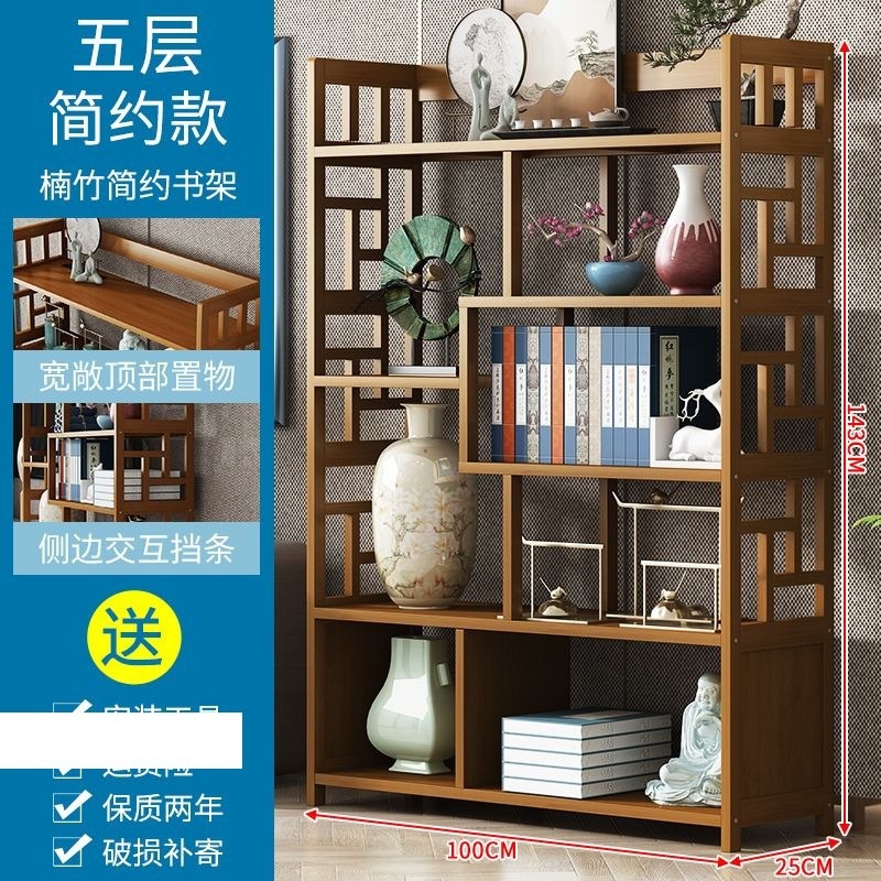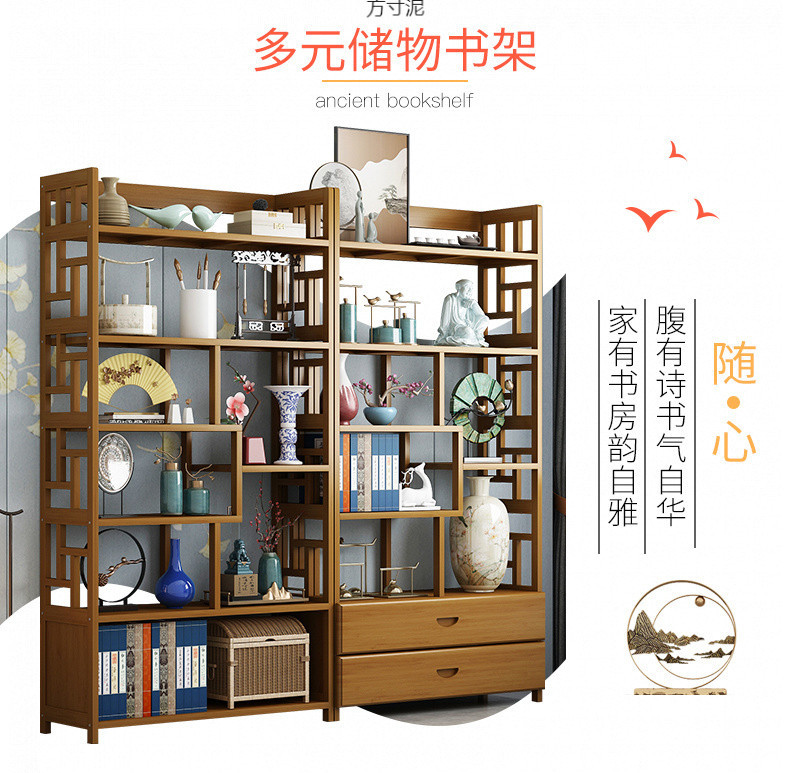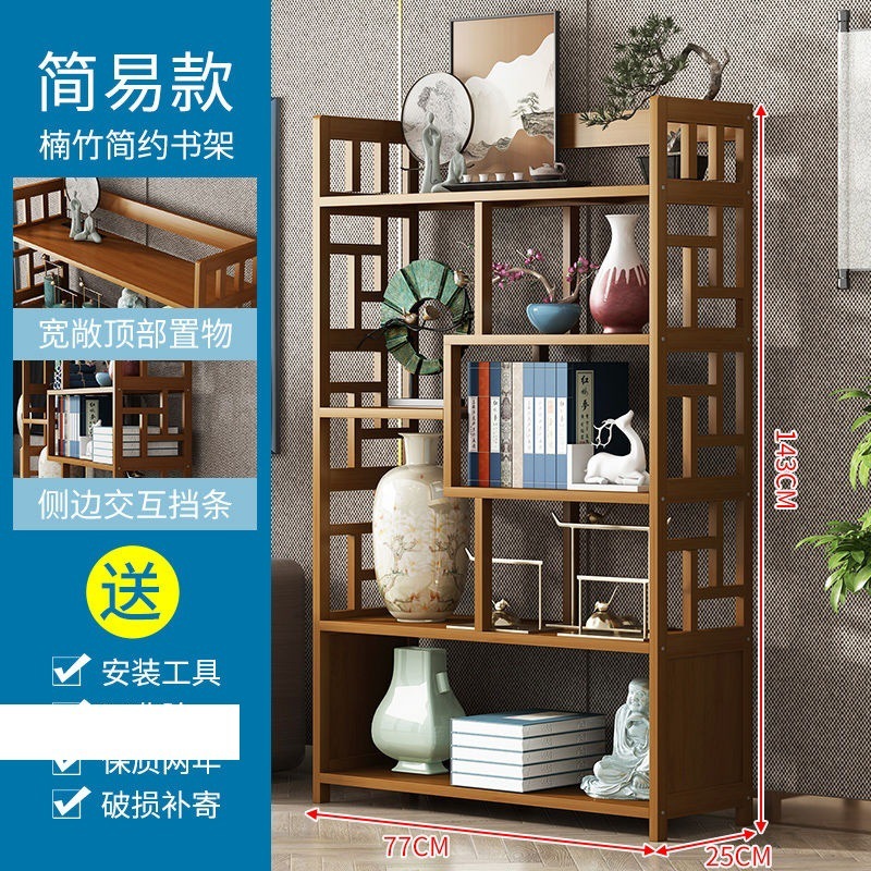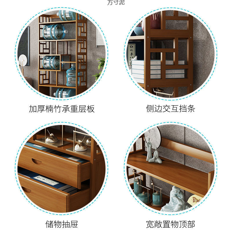 博古架楠竹新中式隔断简约现代小展示摆件架子实木茶室客厅置物架