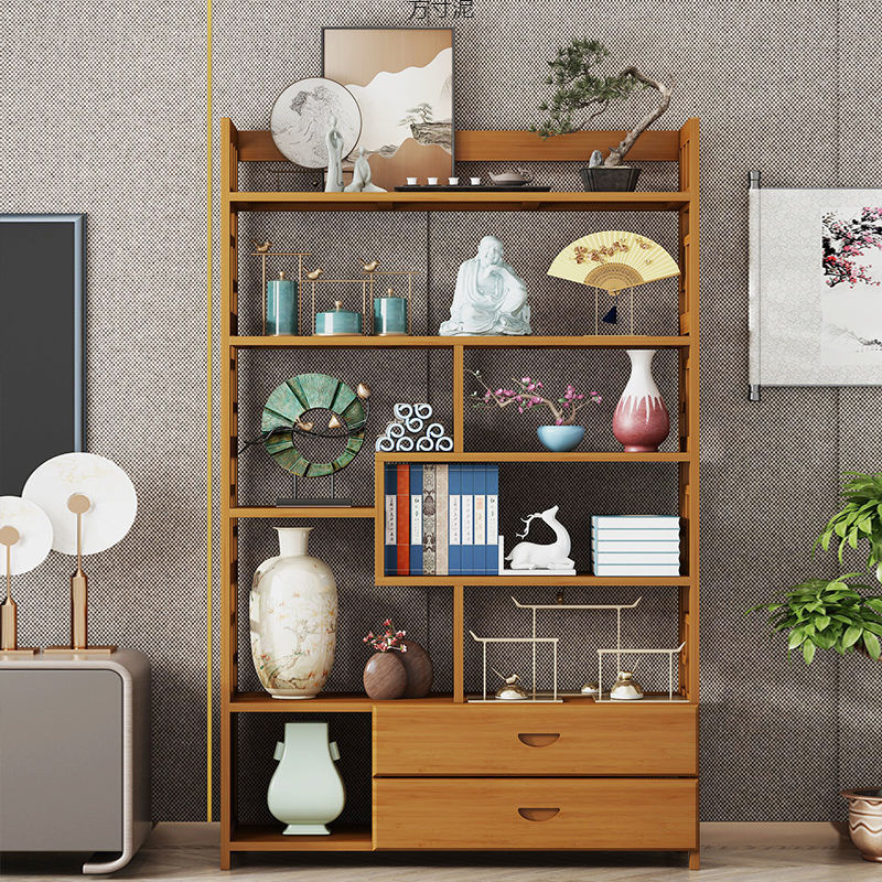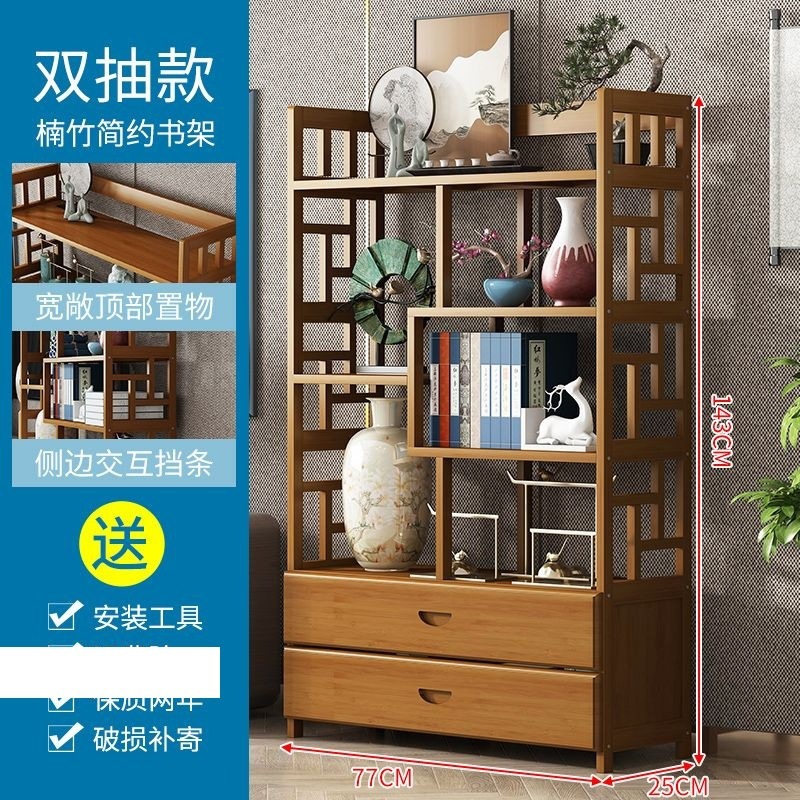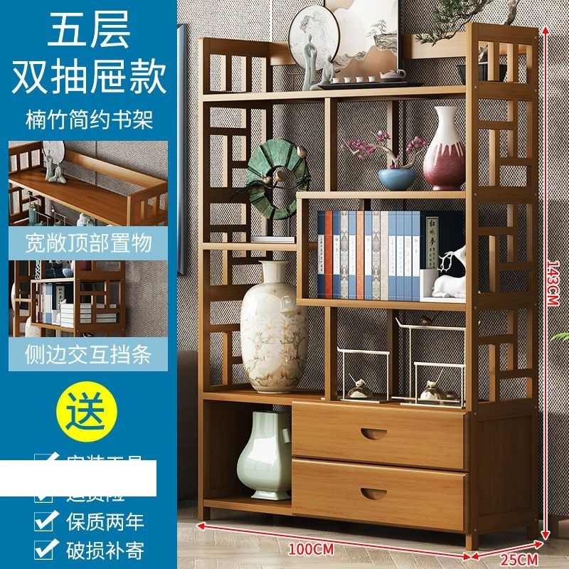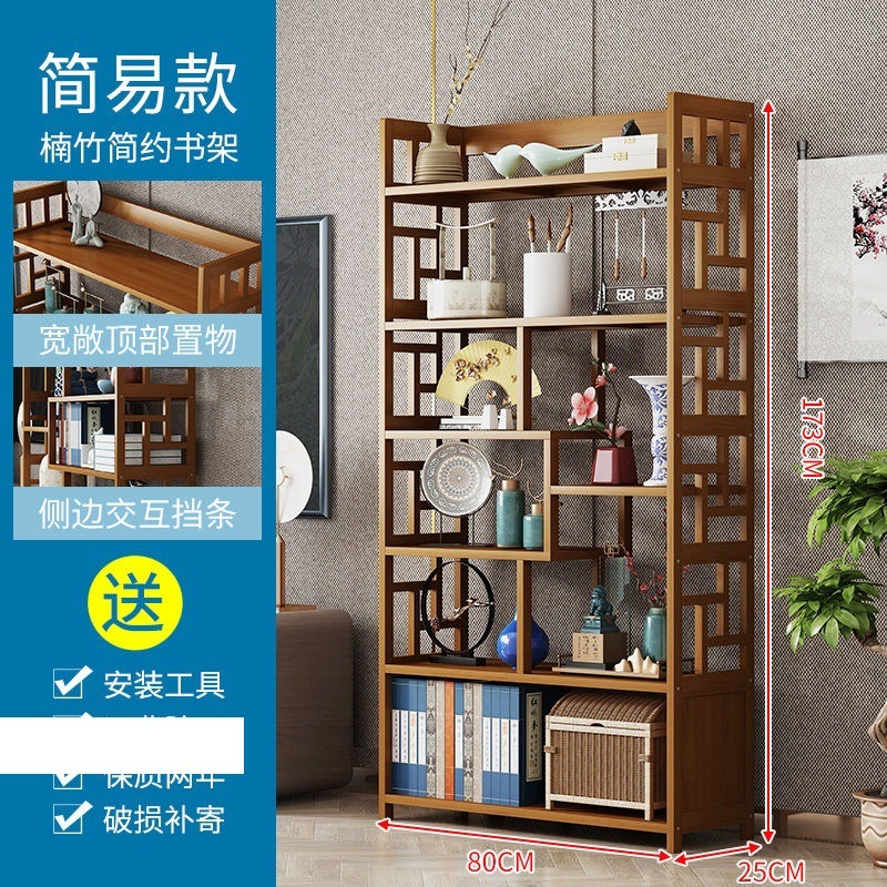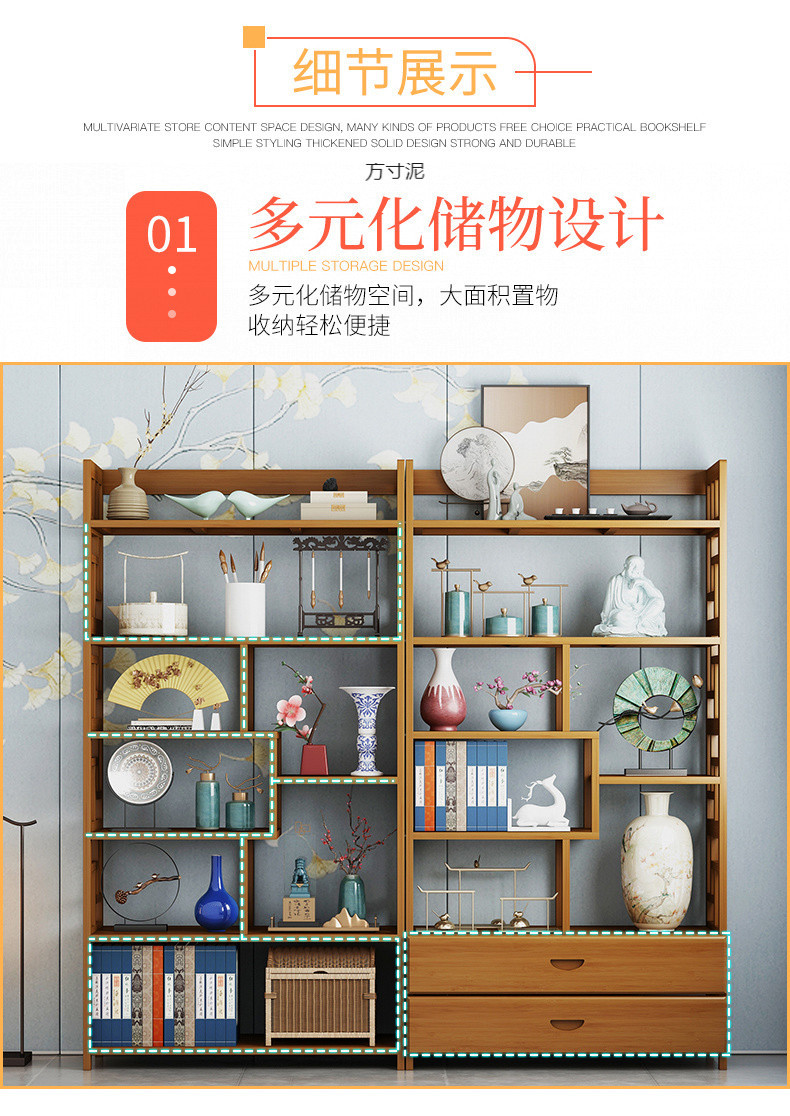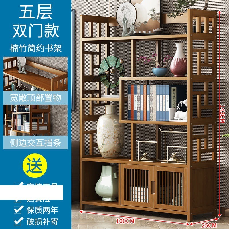 博古架楠竹新中式隔断简约现代小展示摆件架子实木茶室客厅置物架