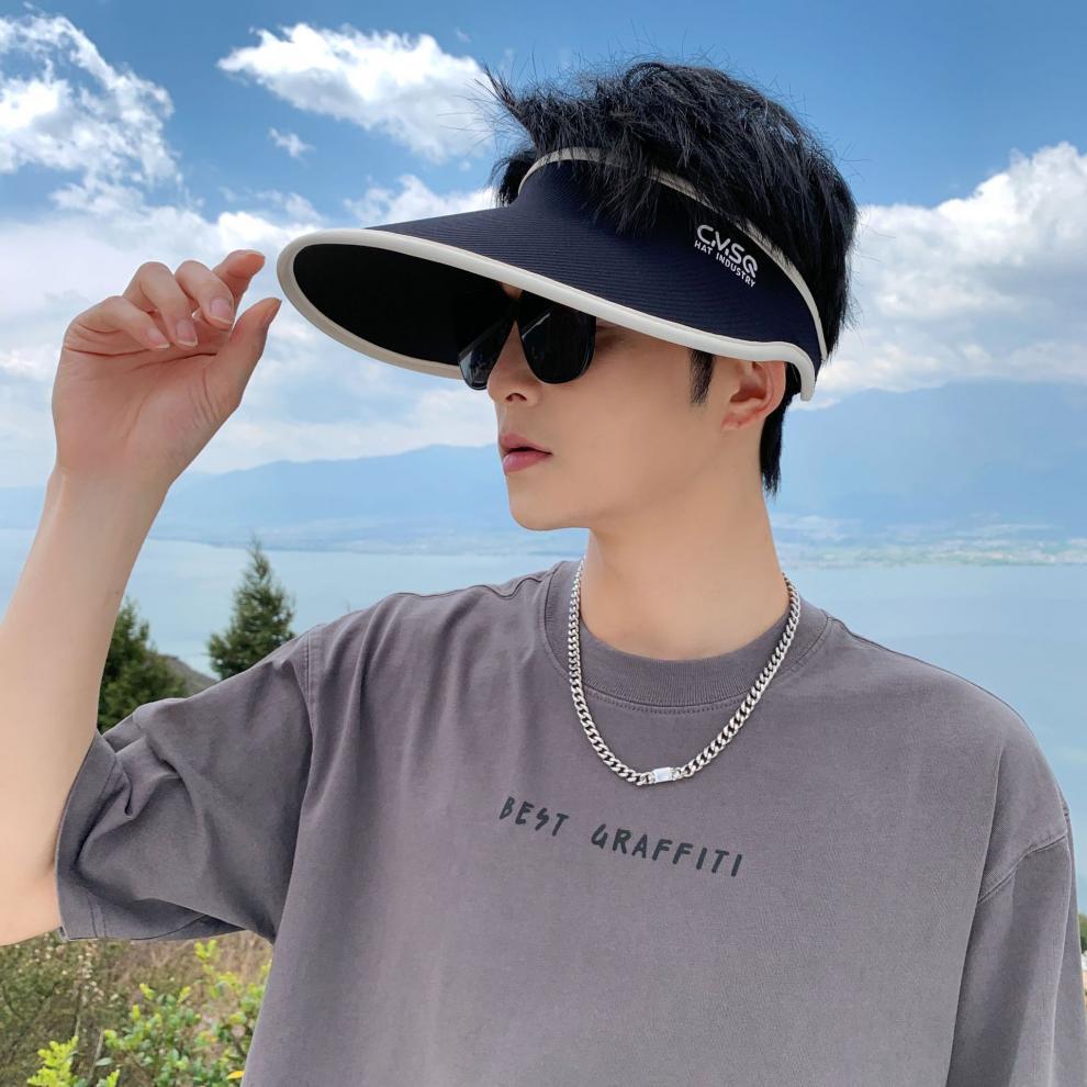大帽檐空顶帽男夏季防紫外线韩版新款字母百搭夹边防晒遮阳帽批发