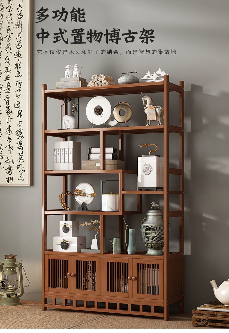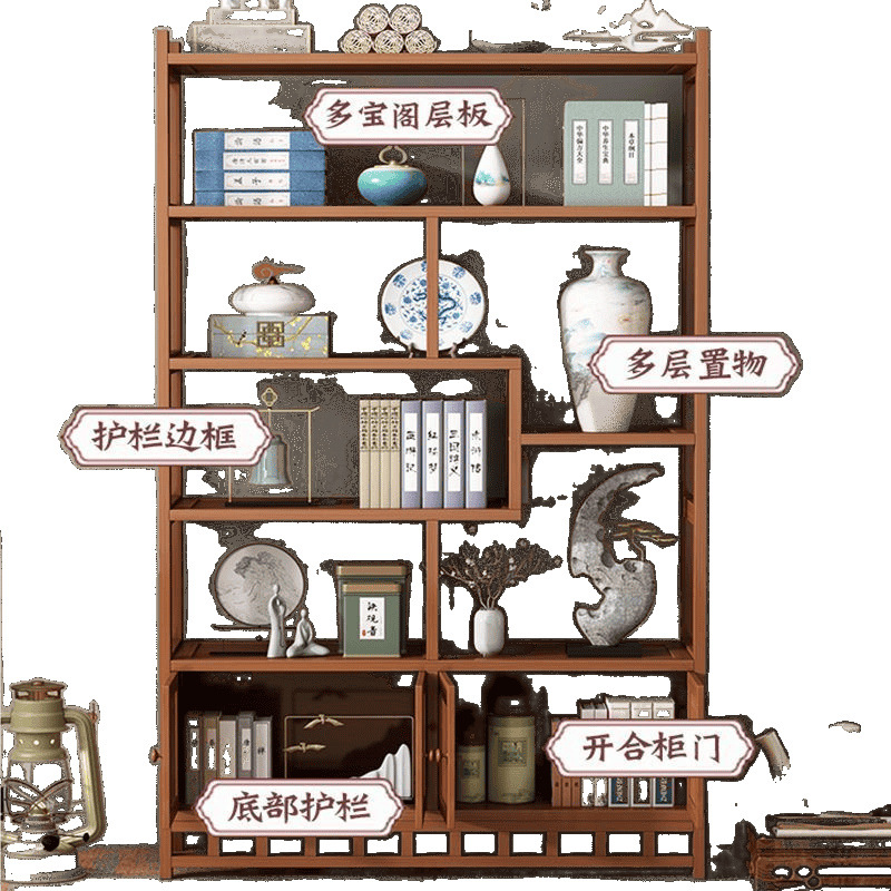 博古架多宝阁茶叶展示柜包邮客厅新中式置物架古摆件柜书架收纳