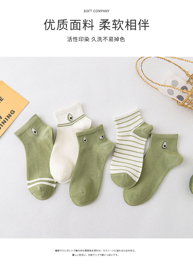 牛油果绿袜子女学院风短筒袜春夏薄款浅口短袜学生可爱运动袜诸暨