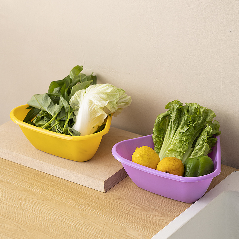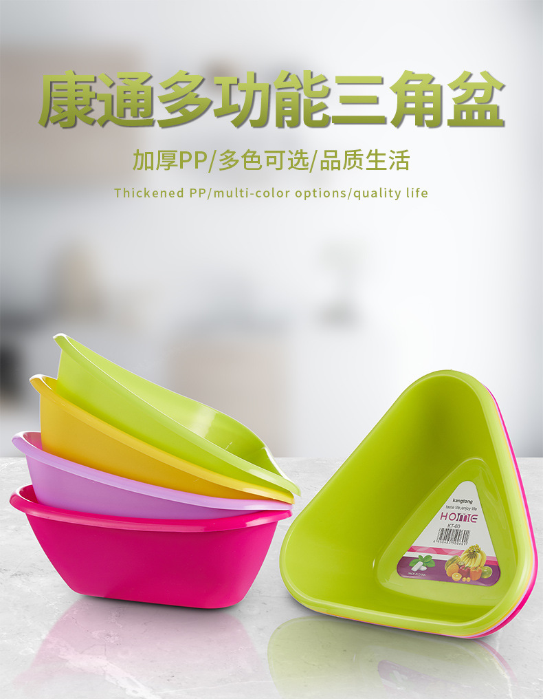 四色水果盆蔬菜盆洗手盆多功能洗护盆家用三角盆加厚塑料小脸盆