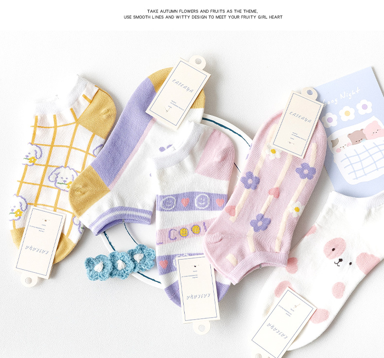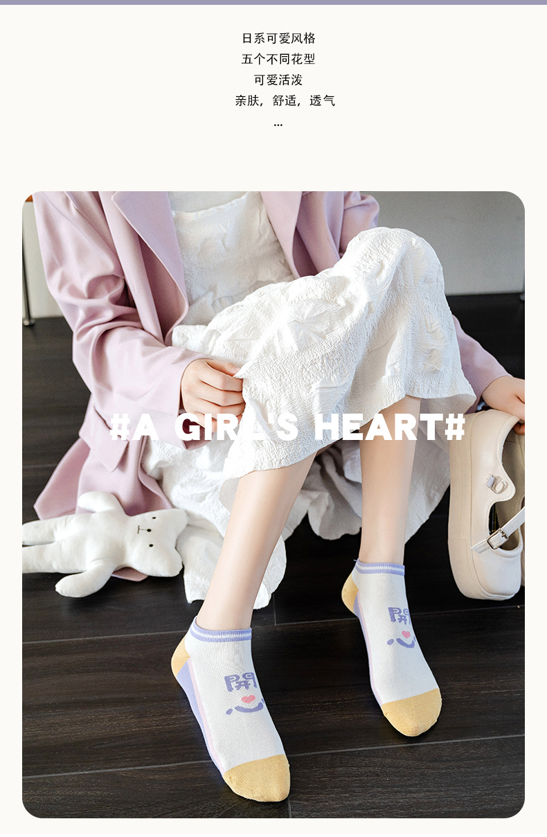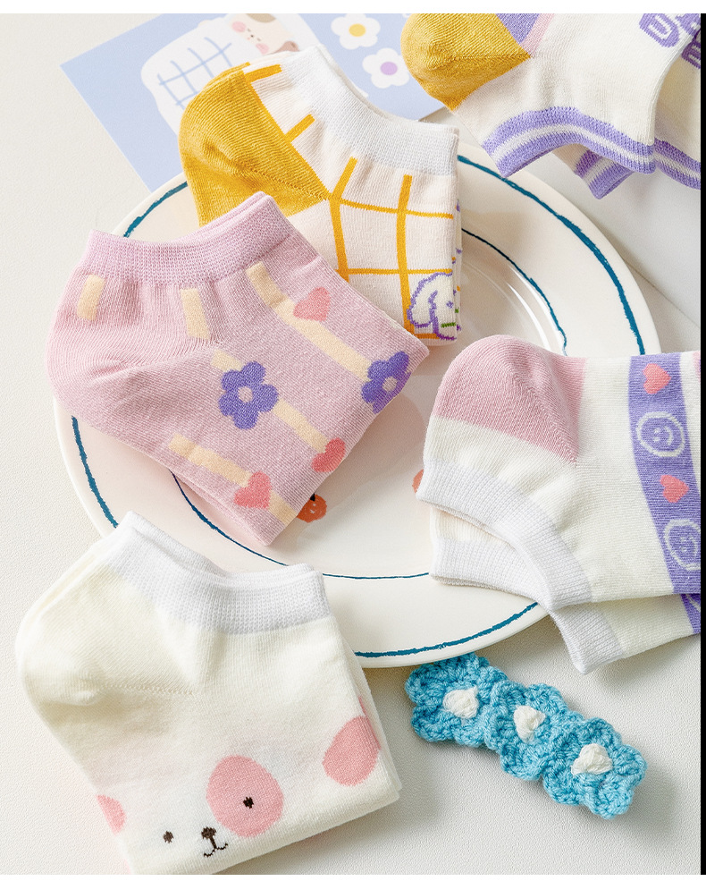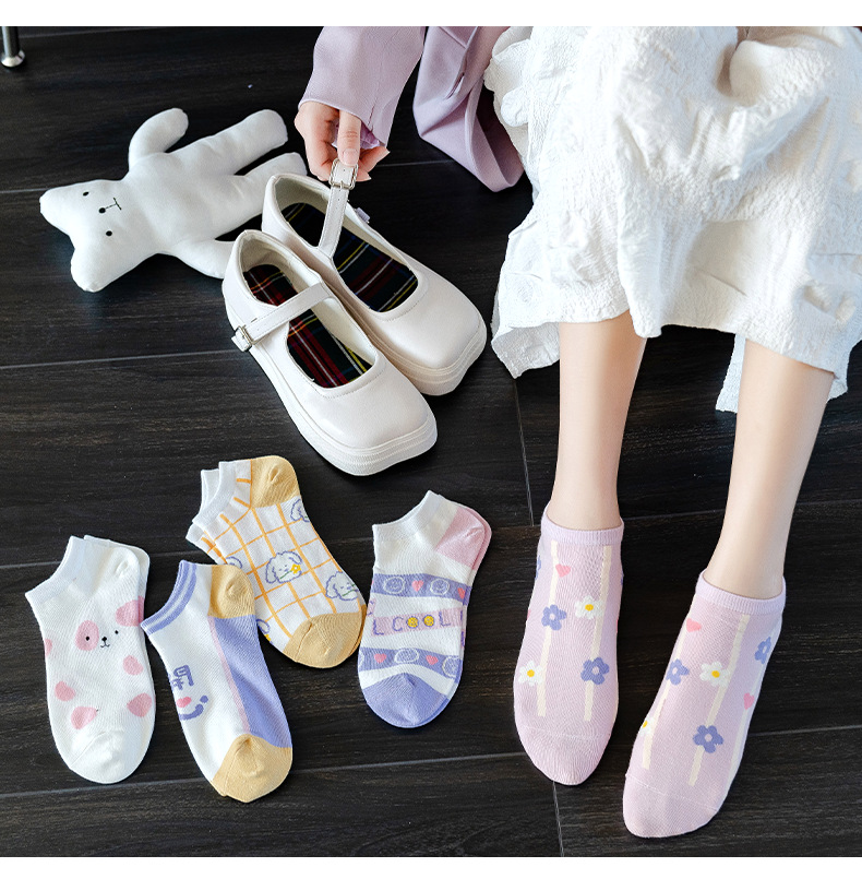 袜子女春夏薄款短袜卡通可爱女士船袜浅口隐形袜诸暨袜子一件代发