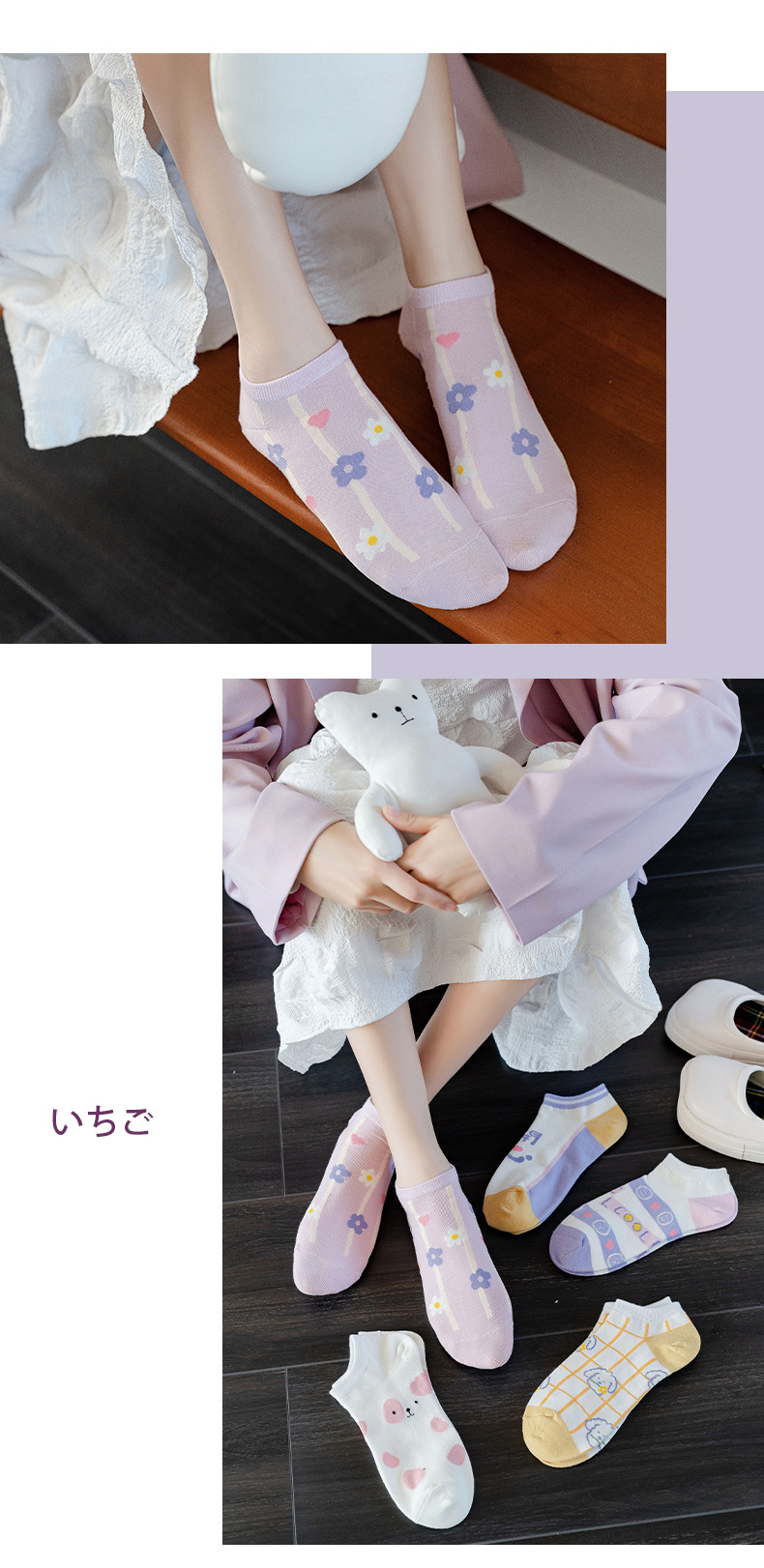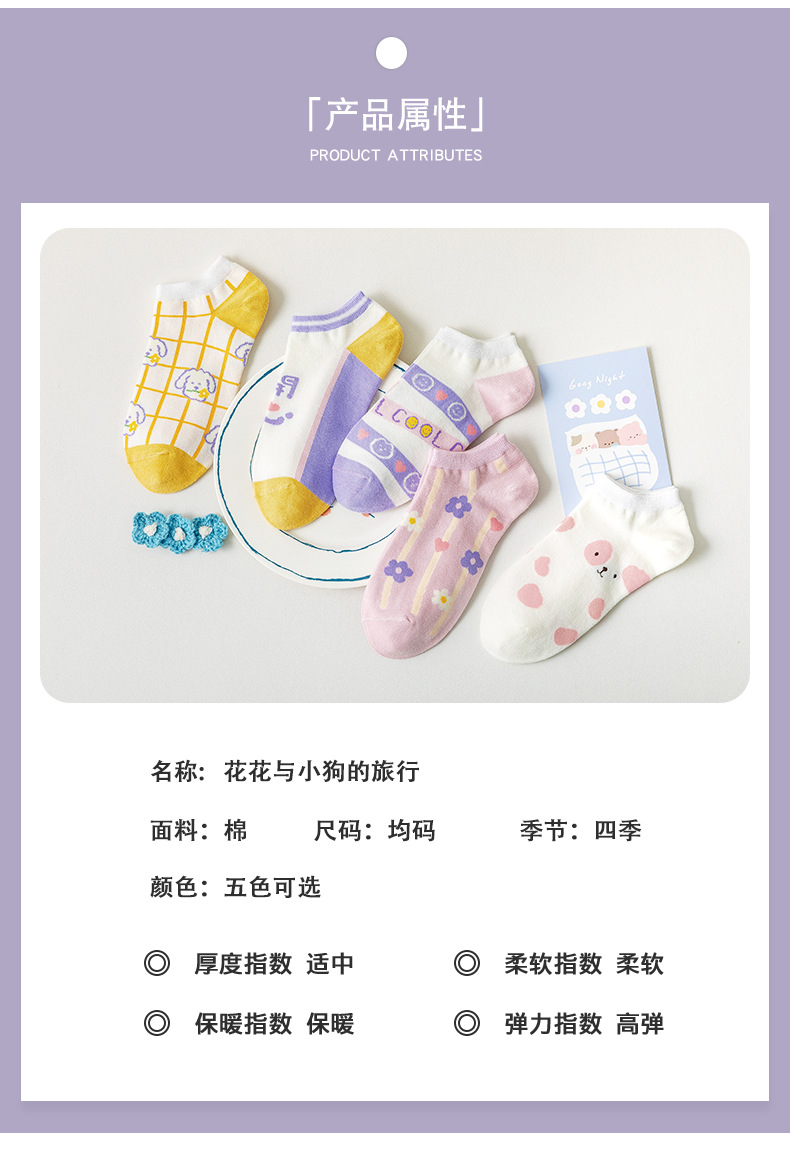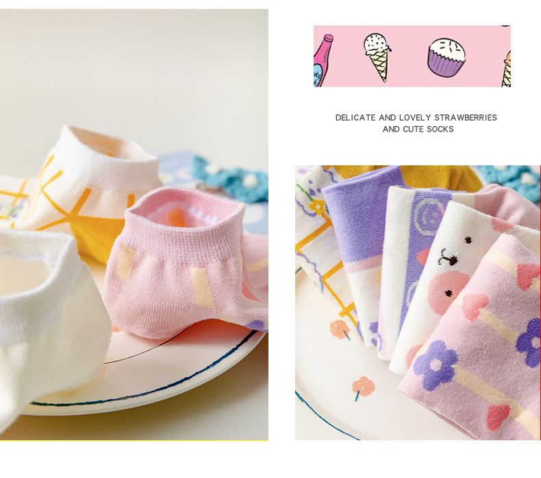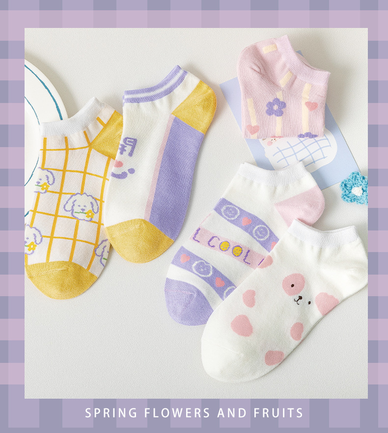 袜子女春夏薄款短袜卡通可爱女士船袜浅口隐形袜诸暨袜子一件代发