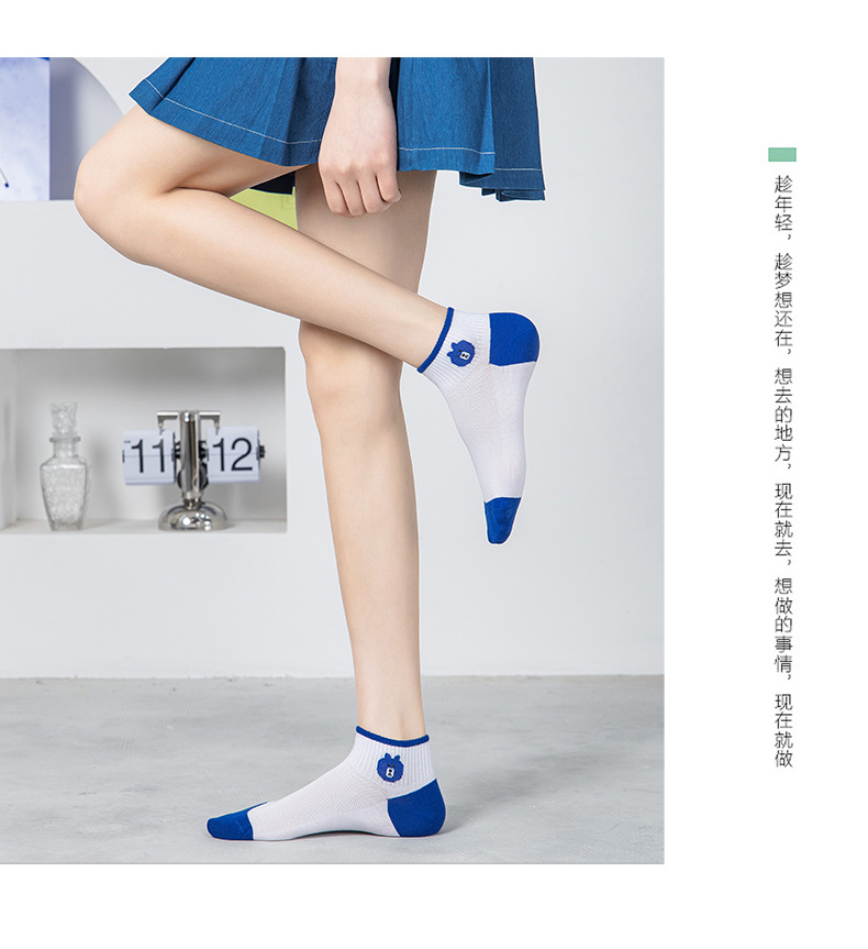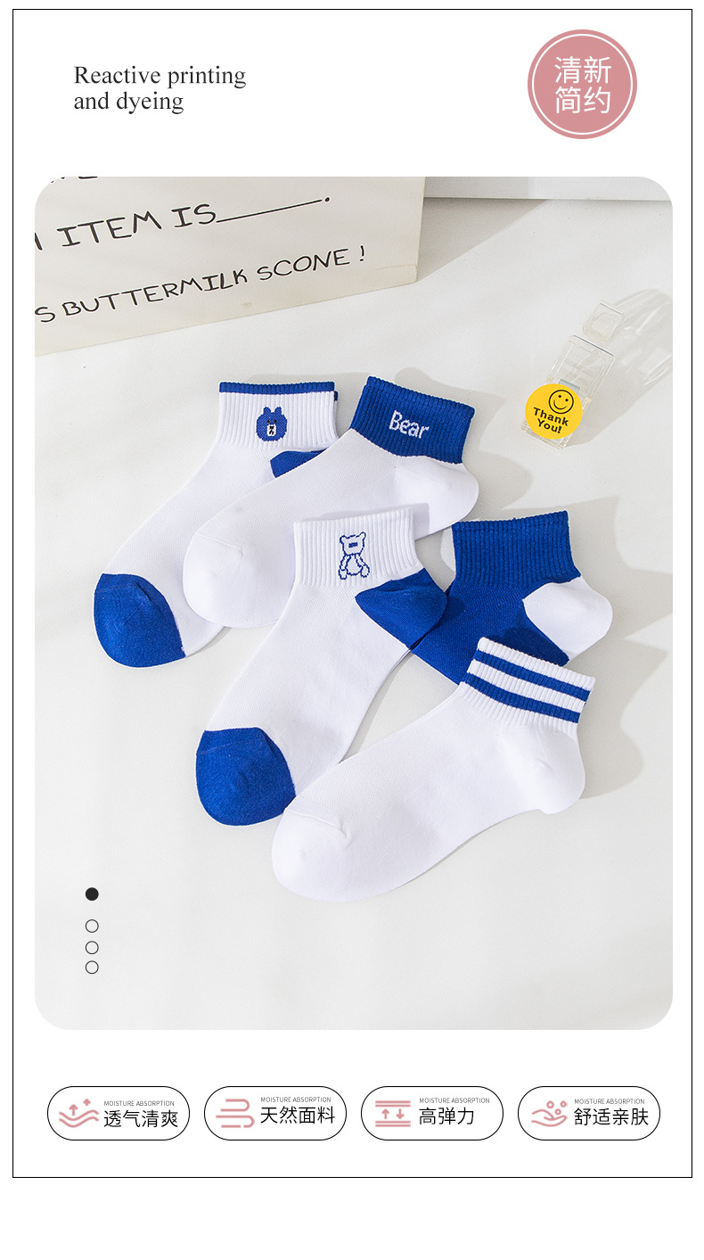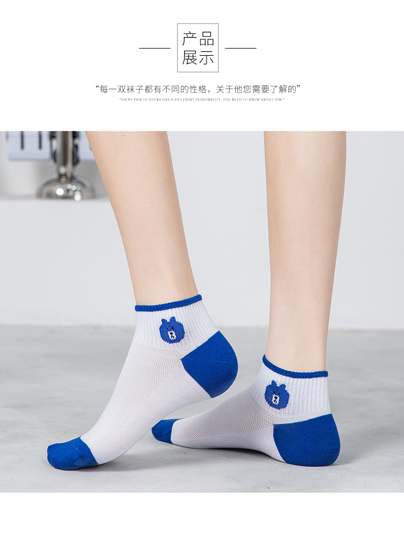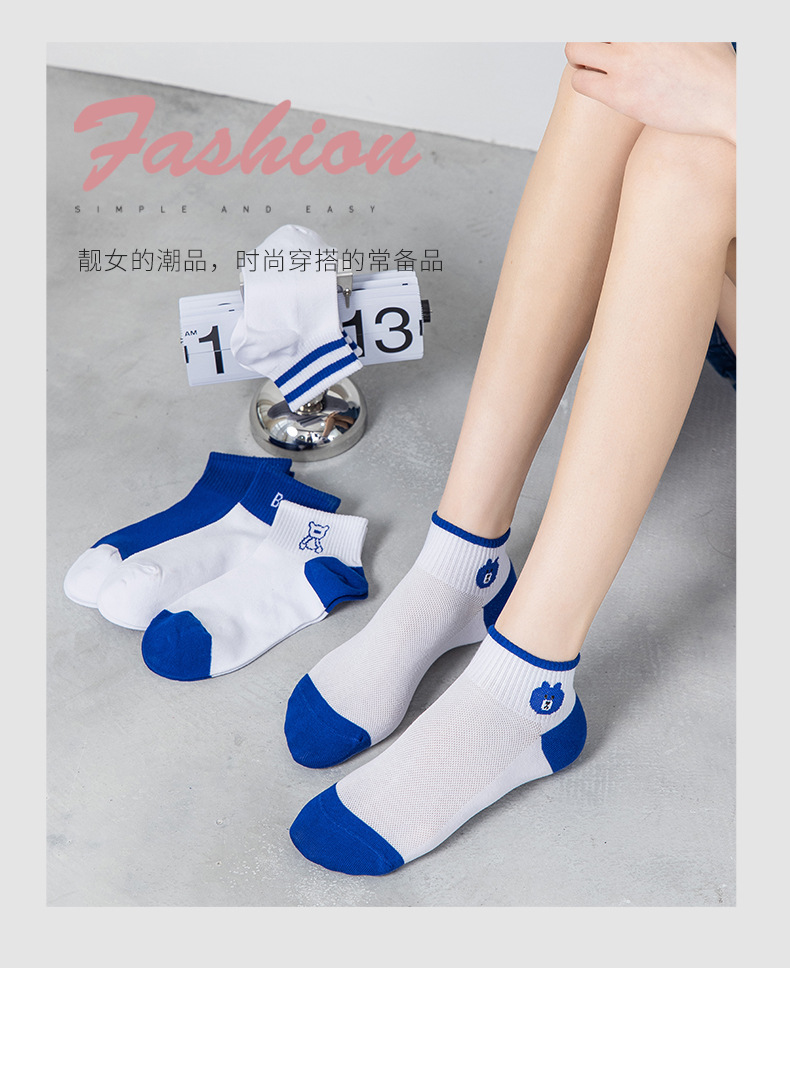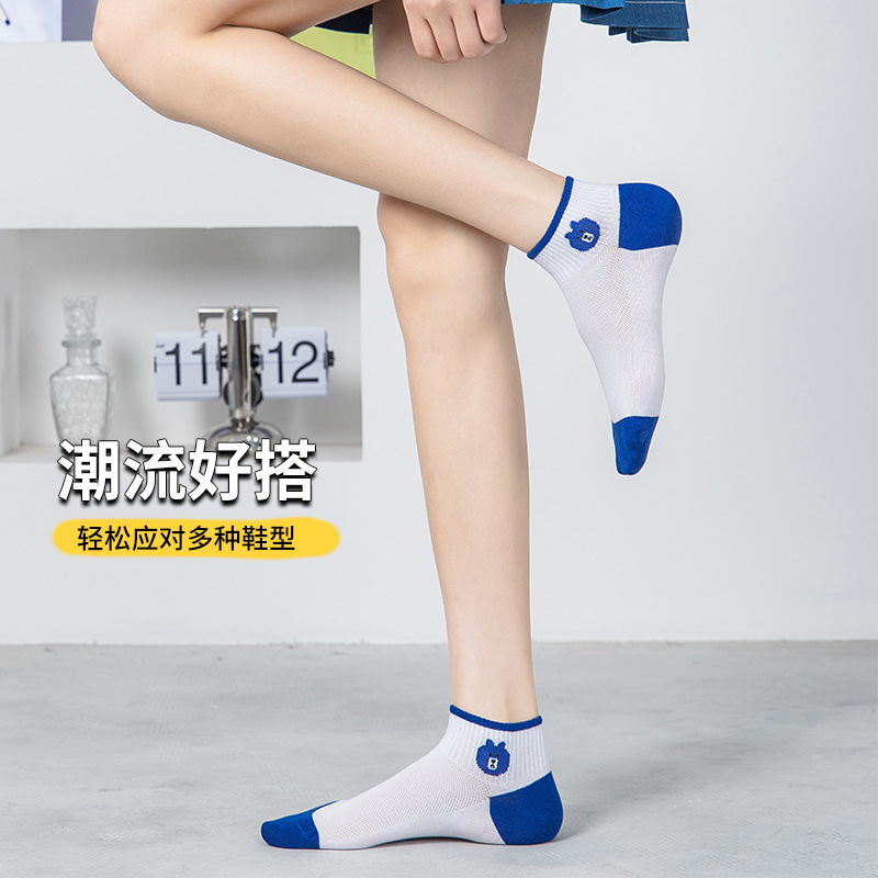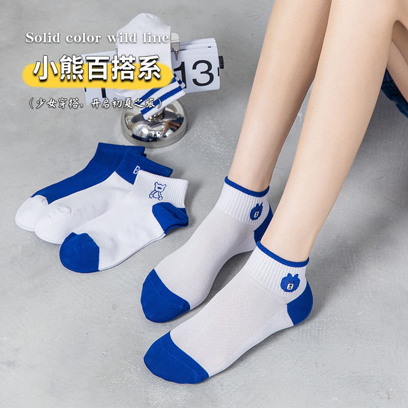 小熊袜子女蓝色系短袜夏季网眼浅口袜子船袜透气低帮短袜一件代发