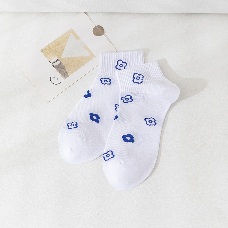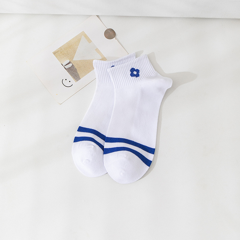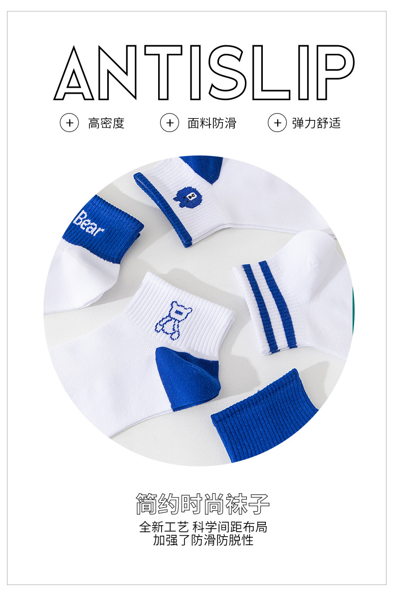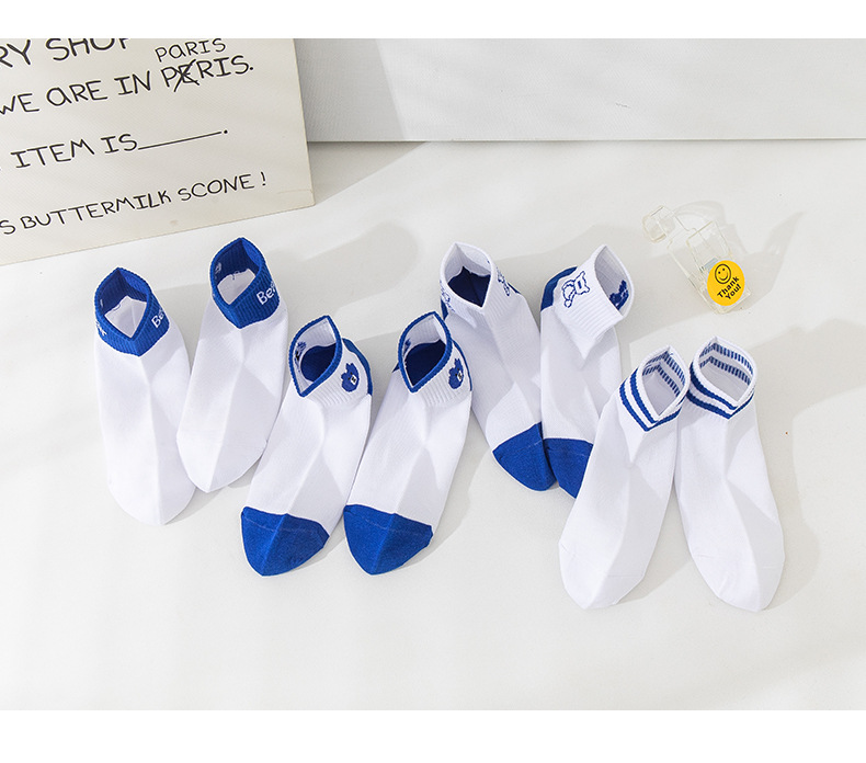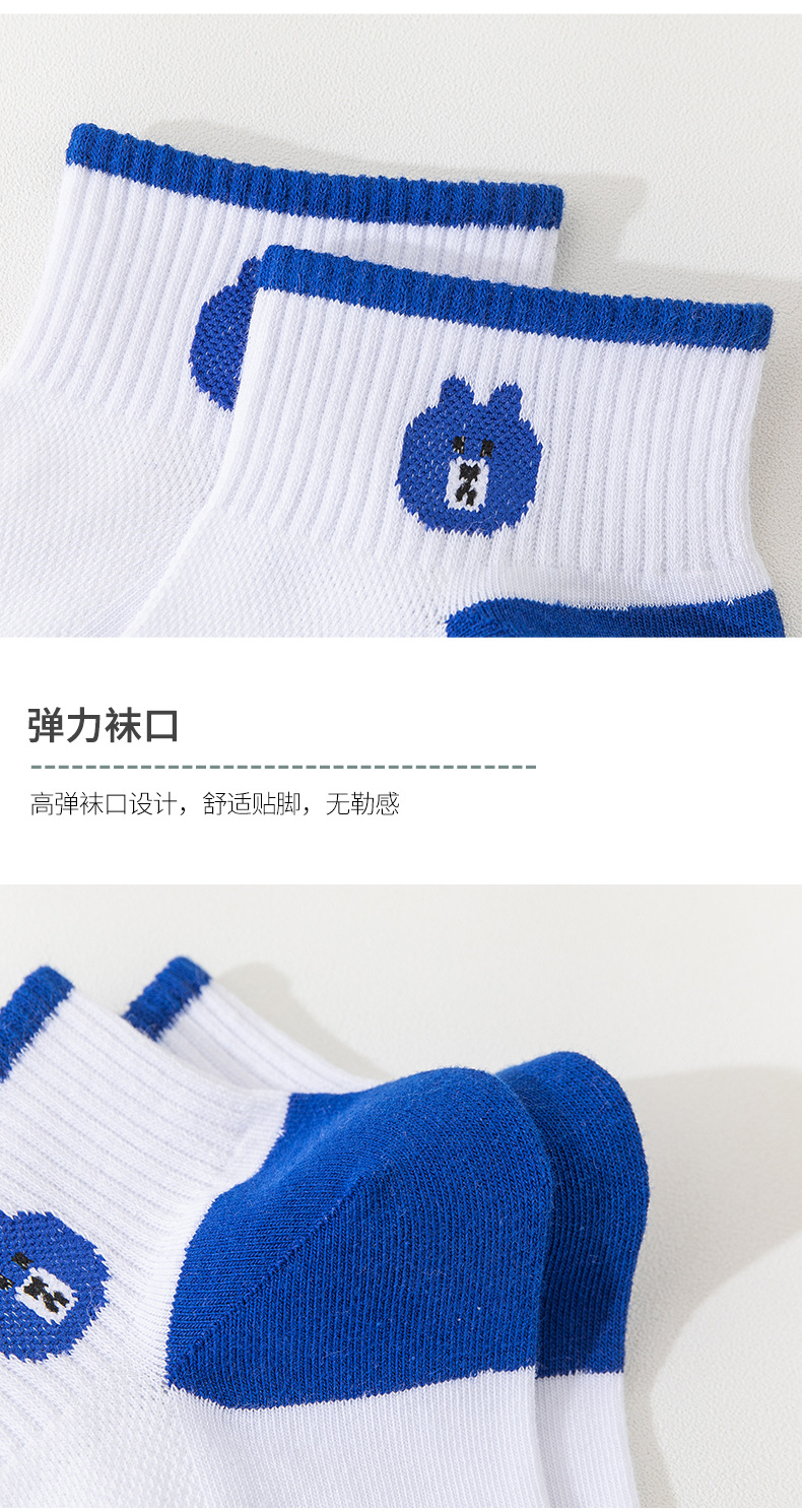 小熊袜子女蓝色系短袜夏季网眼浅口袜子船袜透气低帮短袜一件代发