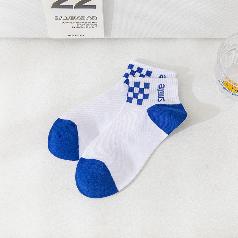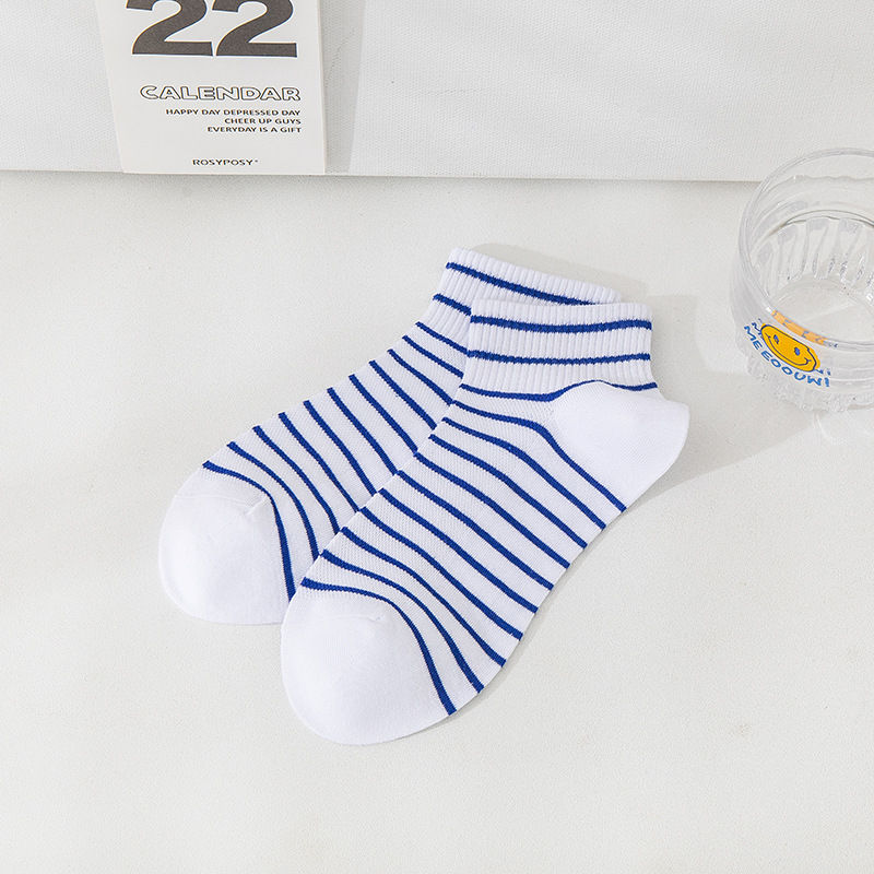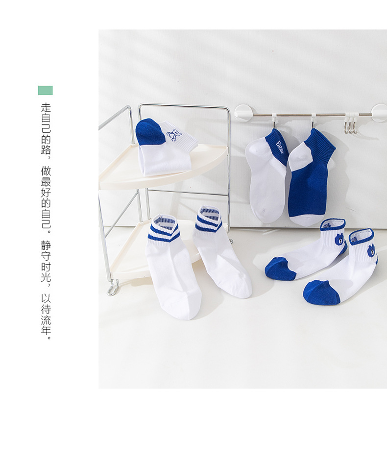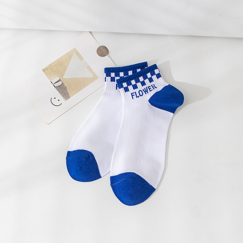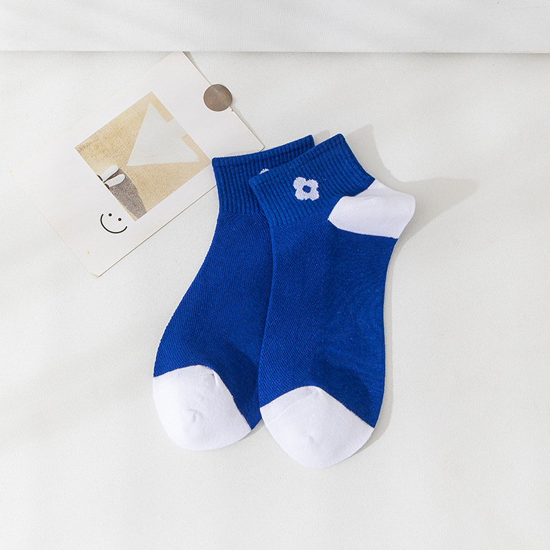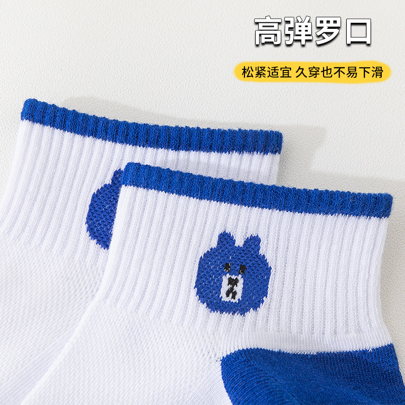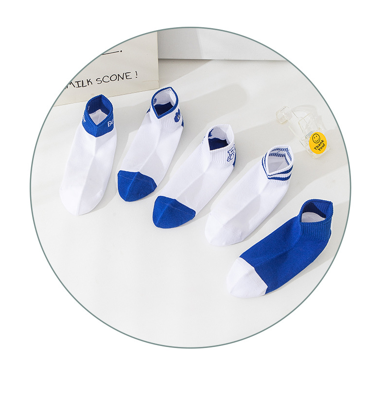 小熊袜子女蓝色系短袜夏季网眼浅口袜子船袜透气低帮短袜一件代发