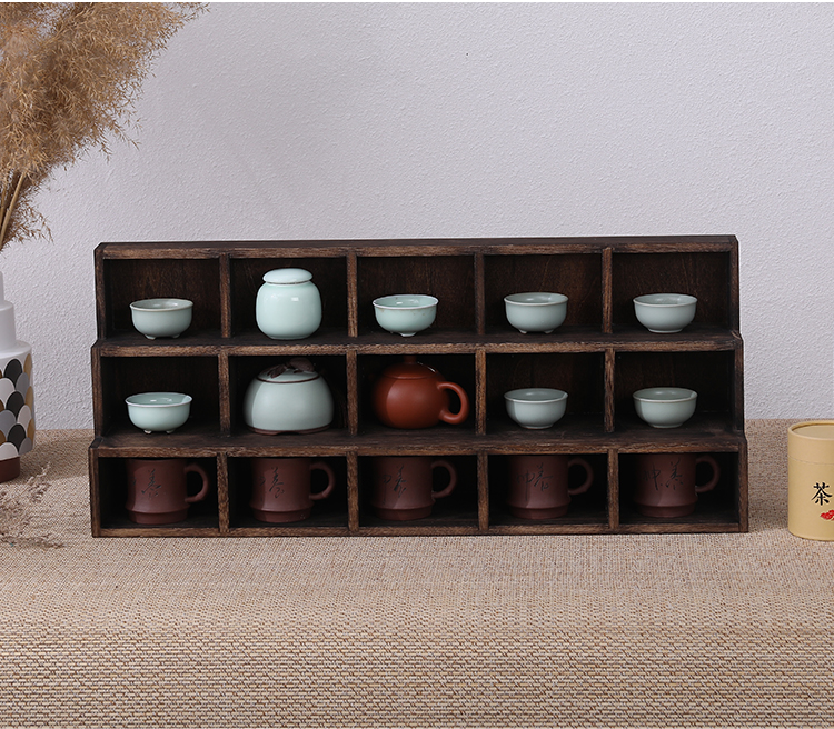 W6实木博古架壁挂茶架多宝阁中式茶具紫砂壶茶杯收纳展示摆件置物